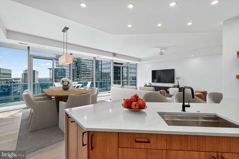 A rare opportunity to own a highly covetable residence perched on the 21st floor in one of the Washington area's most prestigious addresses, this extraordinary three-bedroom, three-and-a-half bath residence includes a private elevator landing and showcases over $300,000 in meticulously curated finishes. The reimagined gourmet kitchen dazzles with custom cabinetry and countertops that are tastefully paired with a Miele six-burner gas cooktop and integrated Miele refrigeration. Designer lighting and exquisite custom millwork elevate the interiors, while a generous laundry room with extensive storage adds practicality. A true retreat, the primary suite boasts a magazine-worthy spa bathroom featuring an elegant freestanding soaking tub-while a serene private terrace frames sweeping views of the D.C. skyline, the Kennedy Center, and sunlit morning horizons. Additional highlights include soaring 11-foot ceilings, refined hardwood and marble flooring, multi-zone HVAC, and a private garage with parking for two vehicles with additional storage. Renowned for its signature curvilinear design, Turnberry Tower offers residents an unparalleled lifestyle with five-star amenities including 24-hour concierge with valet and security, a heated indoor pool with attendants, a state-of-the-art fitness and yoga studio, a private screening room, and an elegantly redesigned social lounge with catering kitchen. The epitome of modern luxury, this residence embodies the perfect blend of sophistication, comfort, and world-class amenities.