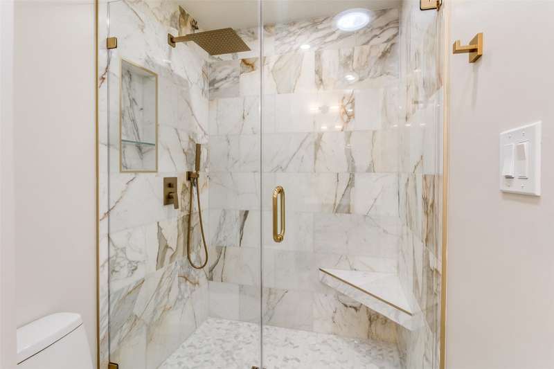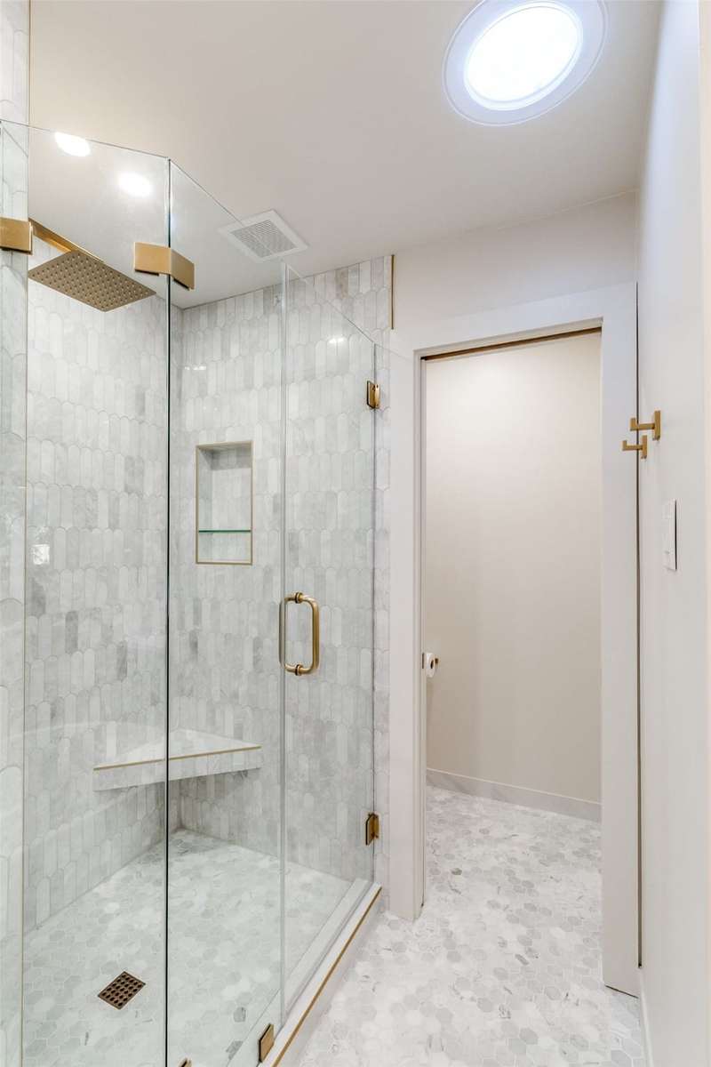 Newly remodeled home with extraordinary quality and high end finishes. Move in ready. Sophisticated and designed for comfort and an effortless lifestyle. Stylish and significant updates include: freshly refinished oak hardwood floors, new kitchen with stainless appliances, sink includes multiple modern features, quartz counters, sleek tile flooring, custom cabinetry. Oversized laundry and mud room with sink. Convenient half bath. Kitchen opens to den with custom stone fireplace. Special lighting treatment and skylights flank the fireplace. All new double pane windows and screens. New bathrooms with double sink vanities, oversized glass enclosed marble showers, new lighting. Marble floors and counters in Jack and Jill bath and quartz countertops in primary ensuite bath. Gorgeous soaking tub. Walk-in closet. Recessed lighting throughout. Inviting covered patio with tile flooring overlooking large treed yard with privacy fence . Sprinkler system. New electric panel. New HVAC. New 50 gallon hot water heater. Eye catching gold hardware throughout. No details overlooked in this major 2025 renovation. Easy access to White Rock Lake and the Arboretum. Yes, it has it all. Dont miss the opportunity to make this property your own.