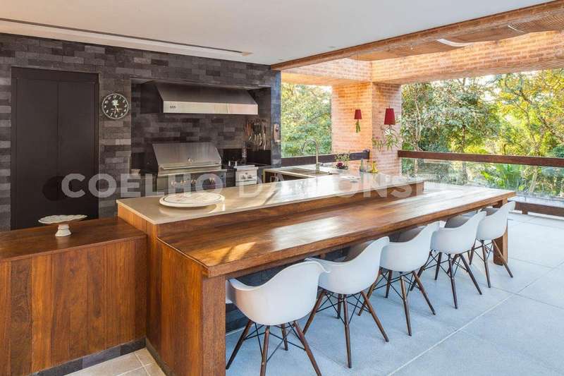 A cozinha é um verdadeiro espetáculo de design, está equipada com eletrodomésticos de última geração da VIKING, garantindo funcionalidade e estilo incomparáveis. Sua conexão fluida com a área externa proporciona uma experiência gastronômica única, enquanto a vista deslumbrante para a vasta área verde cria um cenário de serenidade.