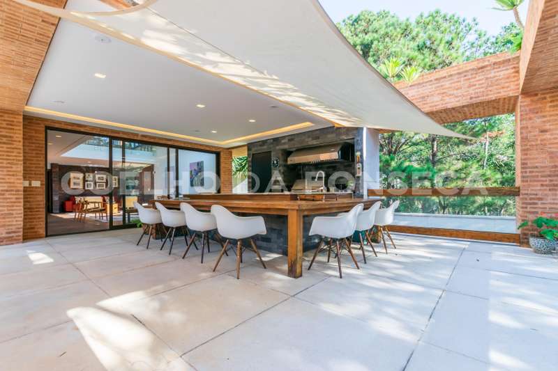 Casa em Condomínio no bairro Aldeia da Serra com 1100m² área construída, 4 dormitório(s), 4 suíte(s), 8 vaga(s), 8 banheiro(s), piscina, gerador, escritório, sauna, depósito, mobiliado (a), ar condicionado, dep. de empregados, reformado (a), varanda, aquecedor solar.