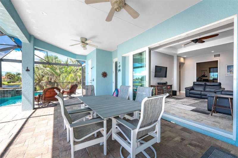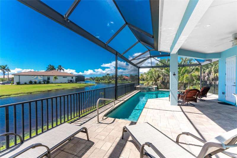 Stunning 2016 Key West–style 4BR home in Burnt Store Lakes with breathtaking Eagle Lake views. ENERGY SMART DESIGN featuring 18 solar panels, Snap Lock metal roof, and low power bills. Outdoor living shines with 105’ of waterfront, heated saltwater pool, 3-tier waterfall spa, and panoramic screening. Inside boasts 10’ ceilings, split floor plan, chef’s kitchen with Samsung appliances, custom cabinetry, double oven, and surround sound. Primary suite offers spa-inspired bath and custom walk-in closet. Hurricane impact windows/doors and Tesla-compatible energy tracking system add peace of mind. Community amenities include park, kayak launch, and close access to Burnt Store Marina and downtown Punta Gorda.