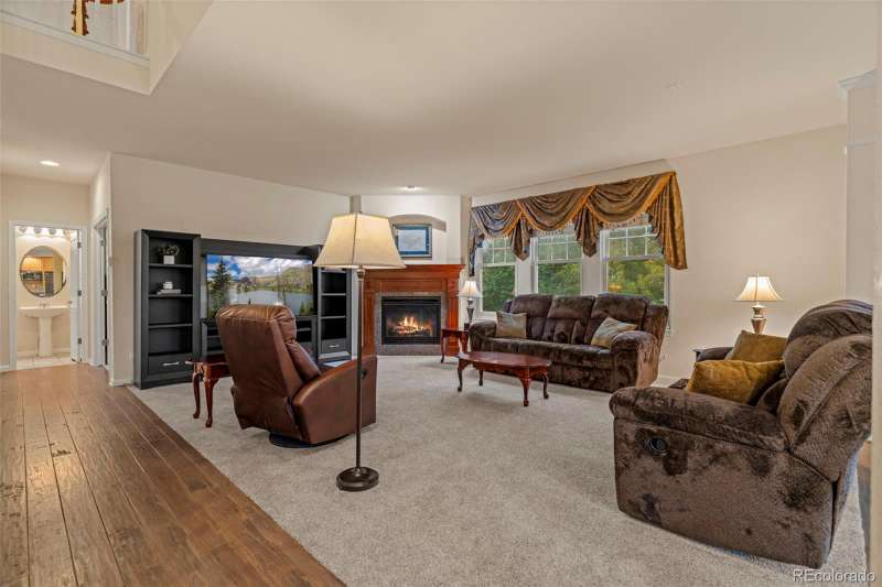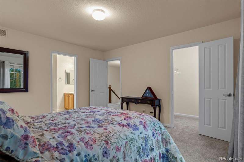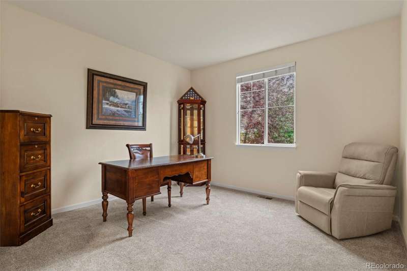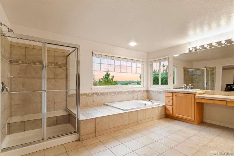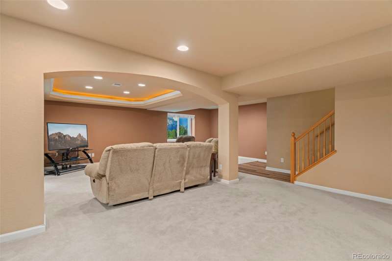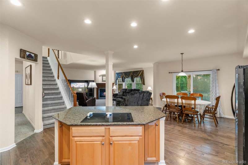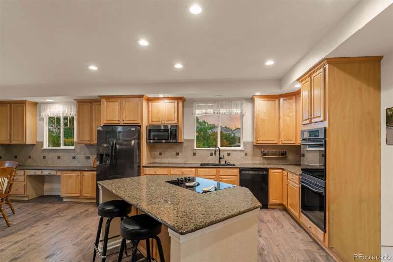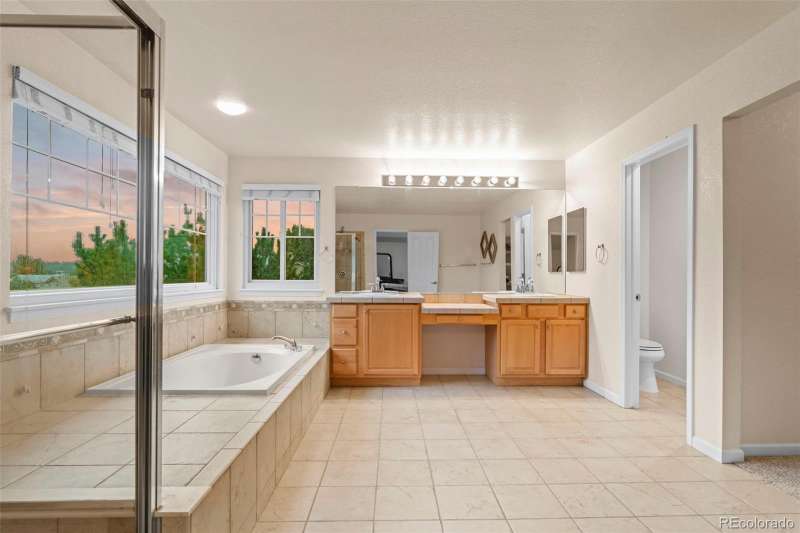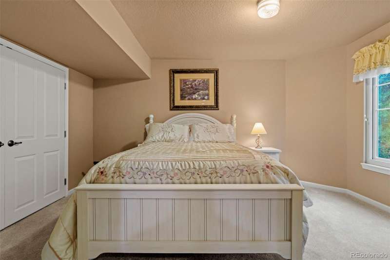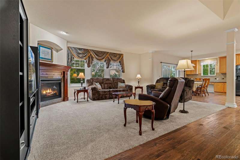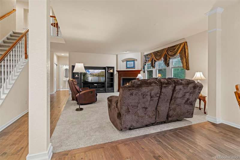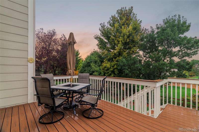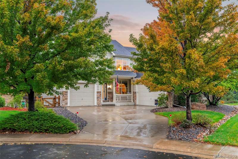 Huge 20K Price Improvement! Nestled at the end of a peaceful cul-de-sac on nearly a quarter-acre lot with mountain views, this meticulously maintained 5-bedroom, 5-bathroom home (plus main floor study) checks all the boxes-with a fully finished walk-out basement and highly functional floorplan designed for both everyday comfort and effortless entertaining. The main level features a grand entryway, gleaming hardwood floors, a spacious formal dining room, and an open-concept living area anchored by a cozy gas fireplace. The gourmet kitchen is a chef's dream-offering ample granite counter space, a large center island with breakfast bar seating, a sunny nook, 42? honey oak cabinets, and black appliances-all with direct access to the expansive outdoor deck. The main floor also includes a private home office with French doors, an oversized 8' x 12.5' mudroom, and a unique split 3-car garage setup with an oversized 2-car plus a separate carriage garage. Upstairs, you'll find a massive 15' x 21' primary retreat with a spa-inspired 5-piece bath, soaking tub, glass shower, dual vanities, and a jaw-dropping 13' x 15' walk-in closet. A generously sized secondary bedroom features its own ensuite and walk-in closet, while two additional bedrooms share a full Jack-and-Jill bath. The walk-out basement offers bonus living space galore-including a large rec room, dedicated game area, wet bar with fridge and microwave, a private guest suite with adjacent ¾ bath, and a 14.5' x 35' storage room. Step outside to a covered patio and fully landscaped backyard with mature trees and shrubs-perfect for relaxing or entertaining year-round. Big-ticket updates include newer Andersen double pane windows, furnace, A/C, and tankless water heater (2021), plus a new Class 4 impact-resistant roof installed in 2022. Located within top-rated Cherry Creek Schools and minutes from shopping, dining, parks, trails, and everything you need-this is a rock-solid home in a truly exceptional location!