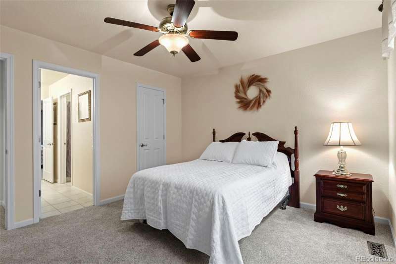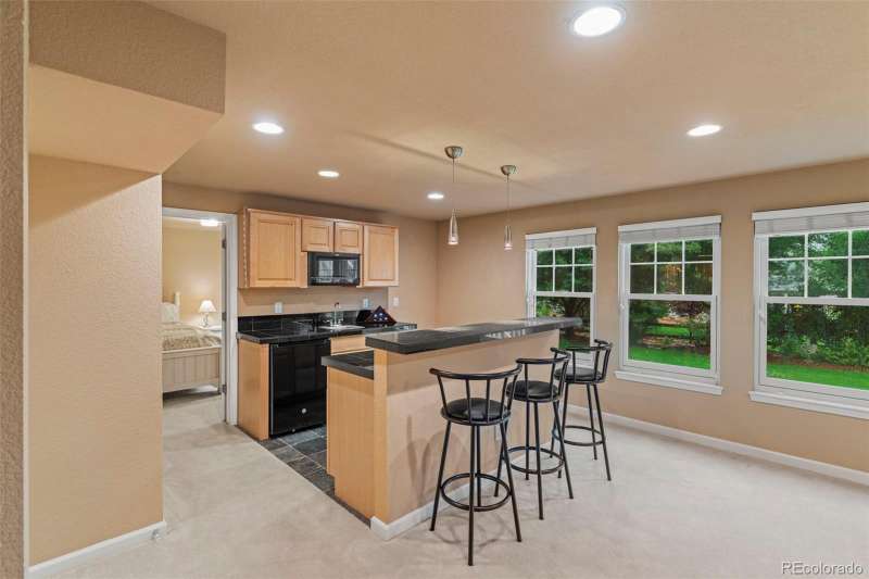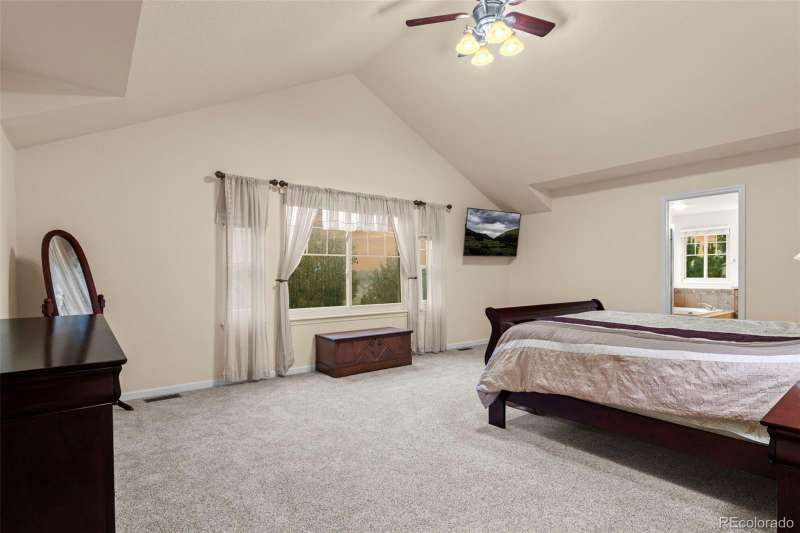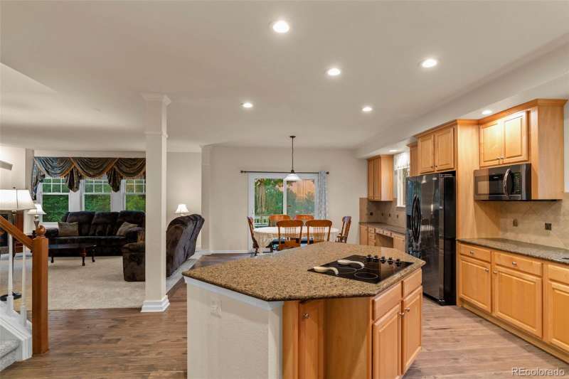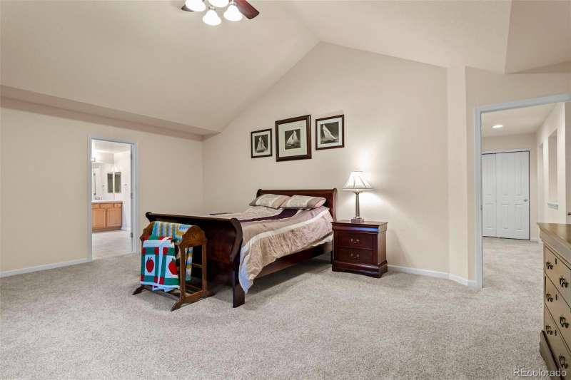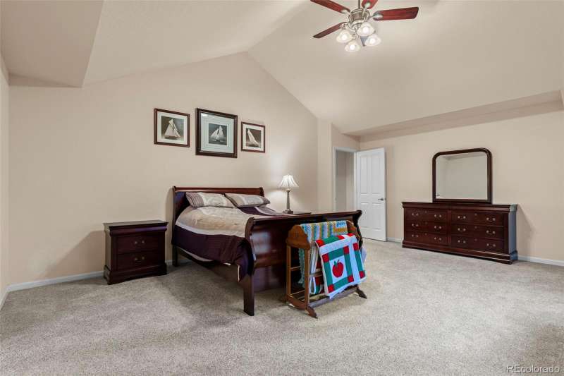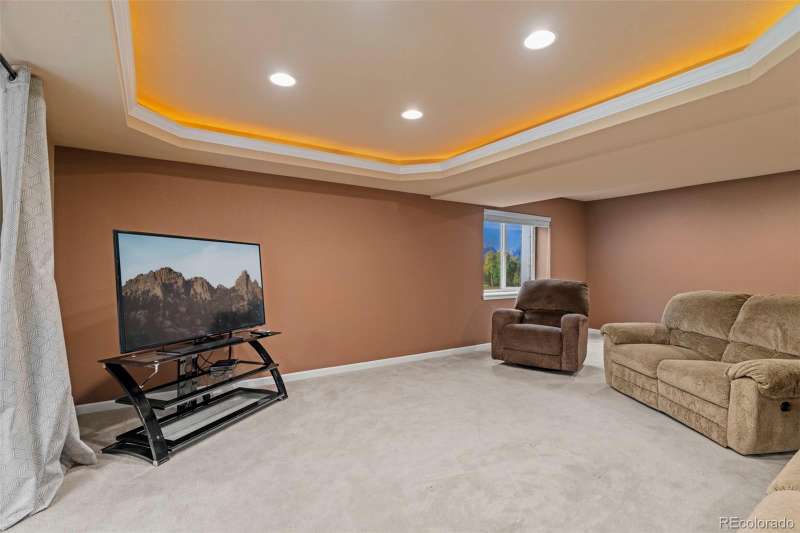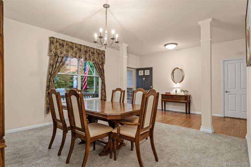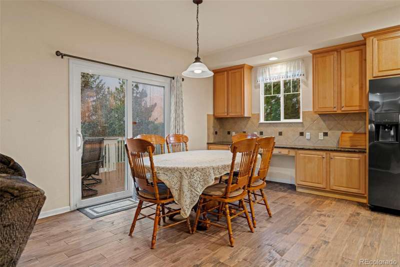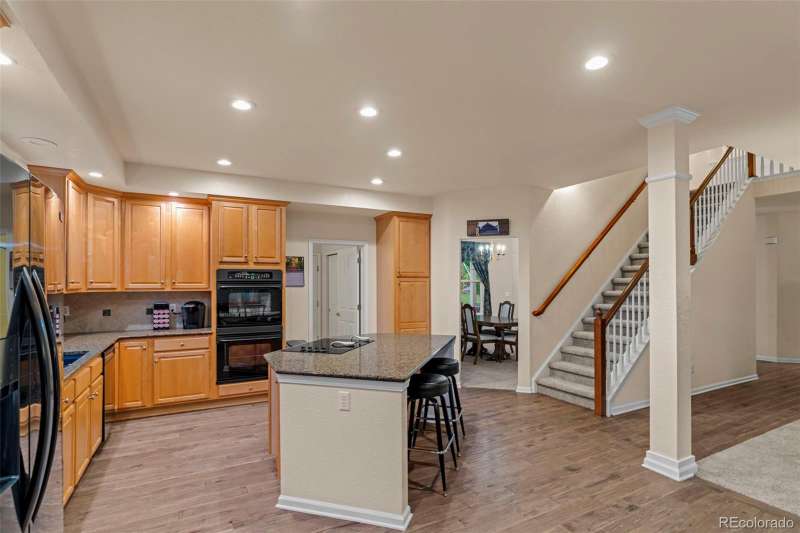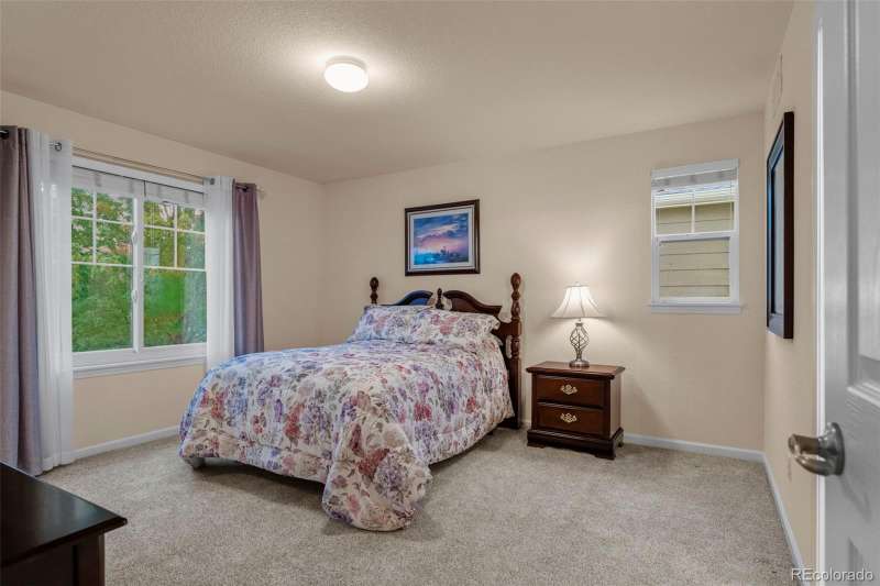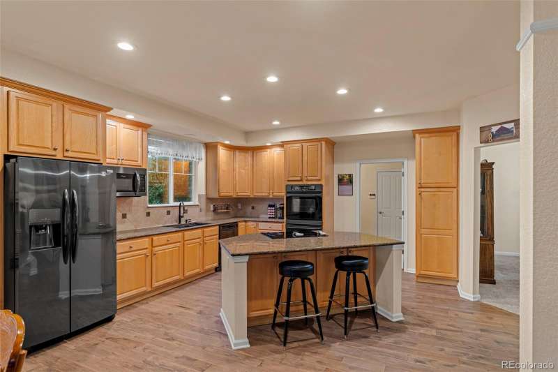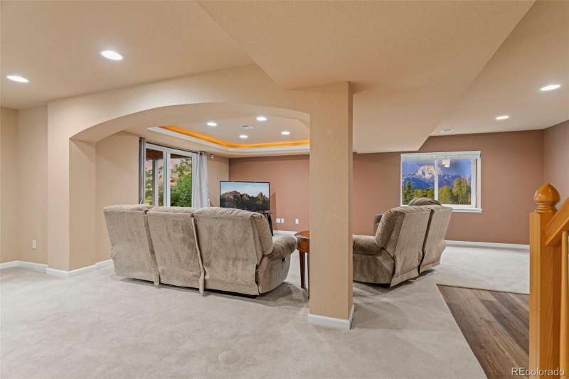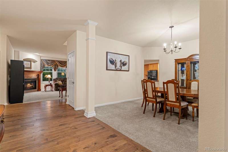 Huge 20K Price Improvement! Nestled at the end of a peaceful cul-de-sac on nearly a quarter-acre lot with mountain views, this meticulously maintained 5-bedroom, 5-bathroom home (plus main floor study) checks all the boxes-with a fully finished walk-out basement and highly functional floorplan designed for both everyday comfort and effortless entertaining. The main level features a grand entryway, gleaming hardwood floors, a spacious formal dining room, and an open-concept living area anchored by a cozy gas fireplace. The gourmet kitchen is a chef's dream-offering ample granite counter space, a large center island with breakfast bar seating, a sunny nook, 42? honey oak cabinets, and black appliances-all with direct access to the expansive outdoor deck. The main floor also includes a private home office with French doors, an oversized 8' x 12.5' mudroom, and a unique split 3-car garage setup with an oversized 2-car plus a separate carriage garage. Upstairs, you'll find a massive 15' x 21' primary retreat with a spa-inspired 5-piece bath, soaking tub, glass shower, dual vanities, and a jaw-dropping 13' x 15' walk-in closet. A generously sized secondary bedroom features its own ensuite and walk-in closet, while two additional bedrooms share a full Jack-and-Jill bath. The walk-out basement offers bonus living space galore-including a large rec room, dedicated game area, wet bar with fridge and microwave, a private guest suite with adjacent ¾ bath, and a 14.5' x 35' storage room. Step outside to a covered patio and fully landscaped backyard with mature trees and shrubs-perfect for relaxing or entertaining year-round. Big-ticket updates include newer Andersen double pane windows, furnace, A/C, and tankless water heater (2021), plus a new Class 4 impact-resistant roof installed in 2022. Located within top-rated Cherry Creek Schools and minutes from shopping, dining, parks, trails, and everything you need-this is a rock-solid home in a truly exceptional location!