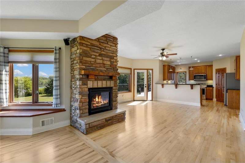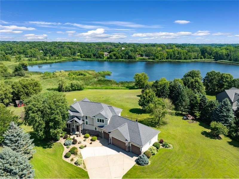 Breathtaking pond and nature views surround this 3+ bedroom walkout 2-story on 2.83 acres. Nearly all-new flooring flows through a bright, open layout designed for both relaxation and entertaining. Enjoy stainless steel appliances, granite counters, and multiple flex spaces for an office, gym, or guest room. The upper level features 3 bedrooms, including a private owner’s suite, while the finished lower level offers a game room space, fireplace, with a walkout, and a non-conforming bedroom with bath. A spacious deck and patio invite you to soak in sunsets, and the heated 4-car garage with insulated doors is perfect for vehicles, hobbies, or storage. A rare blend of space, privacy, and stunning views—welcome home.