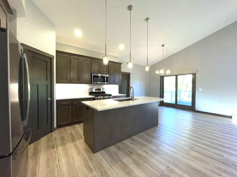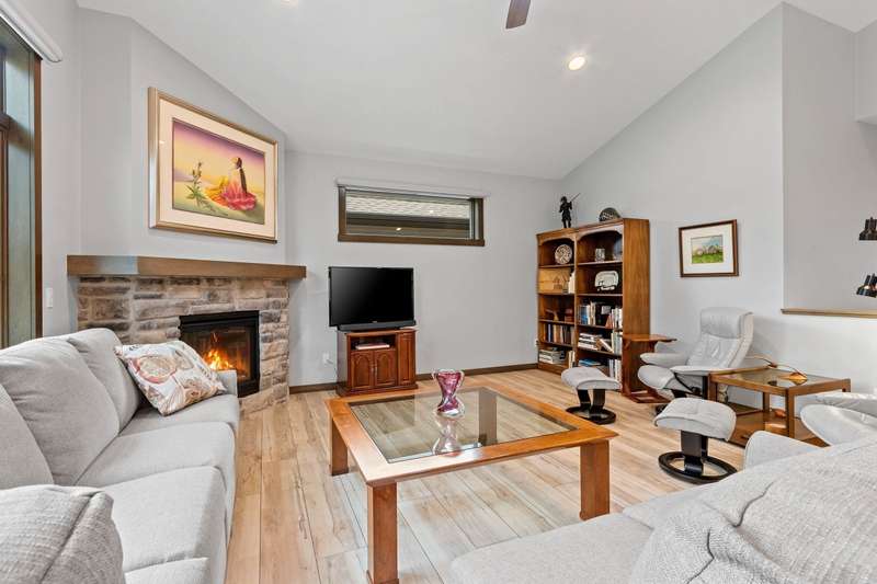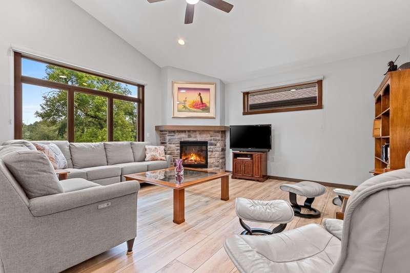 Wow, Look at Me! Whether you leave for weeks, months ... this 3-year-young condo offers it all with an open concept & popular split bedroom design. The ease of zero entry access, a generous foyer, 1st fl laundry & a front bedroom which also makes a nice office. Well equipped kitchen w/center island, pantry & stainless appliances. Primary suite caters to your needs with a generous tile walk-in shower & walk-in closet. Generous 2nd bedroom. The rear of the home faces a wooded backdrop which is throughly enjoyed from the primary bedroom, dinette & great rm. Cozy gas fireplace provides warmth & comfort in the great room. A composite deck, the perfect place to bird watch or sip your favorite drink. All while enjoying the luxury of condo living with lawn care & snow removal.