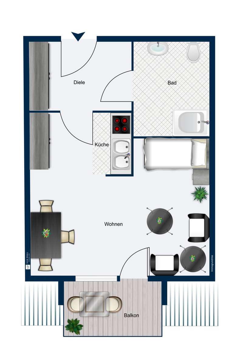 Well-maintained 1-room top-floor apartment with elevator & balcony - barrier-free and ready to move into This well-kept apartment is located on the top floor of a residential building built in 1994. With a living space of approx. 27.78 m², the property offers a compact but functional room layout that is perfect for single people. An elevator provides barrier-free access to the apartment as well as to the cellar and laundry room. The apartment has a spacious room that can be cleverly used as both a living and sleeping area and offers enough space for your personal living concept. Thanks to the thoughtful layout of the room, the space can be individually and flexibly designed to suit your needs and lifestyle. A cute balcony/loggia complements the living room and provides plenty of light in the living and dining area. The separate kitchen area, although small, allows for efficient use with all the essentials to ensure convenient everyday living. Here you can prepare your everyday meals and set up a small dining area if required. A bathroom with shower completes the apartment's facilities. The sanitary facilities are in good condition. The compact design of the bathroom makes optimum use of the available space and ensures that it is pleasant to use without feeling cramped. The apartment is located in a building with 12 parties, which overall makes a very well-kept impression. The condition of the entire property is kept to a high standard through regular maintenance, which has a positive effect on the general feeling of living. The location of the property is convenient, with good public transport connections (extra bus line right outside the front door) as well as various shopping facilities and services nearby. It is possible to move into the property yourself if you have reached retirement age or have limited mobility. If you have any further questions or would like an exposé, please do not hesitate to contact us. Thank you for your interest.