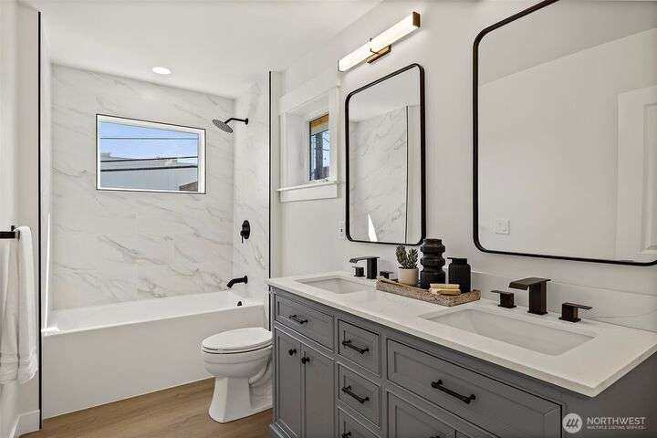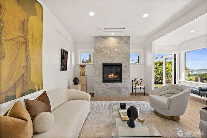 Enjoy the beautiful views of Elliot Bay, Downtown Seattle and Mt. Rainier during the day and the stunning city lights at night. In the morning, take your coffee on the primary bedroom's private deck, soaking in the morning sun and the incredible sights. The home has been remodeled and expanded from the studs out. Everything is new and updated. The cook in you will enjoy the Chef's Kitchen complete with a huge island and walk-in pantry. Oh, yeah... the kitchen and dining area are both positioned to take in the view as well. The main level also has a bedroom and full bath; perfect for guests. The primary w/ en-suite and massive walk-in closet and 2 more beds and 2 baths up. This one-of-a-kind home is one you need to see to believe!!