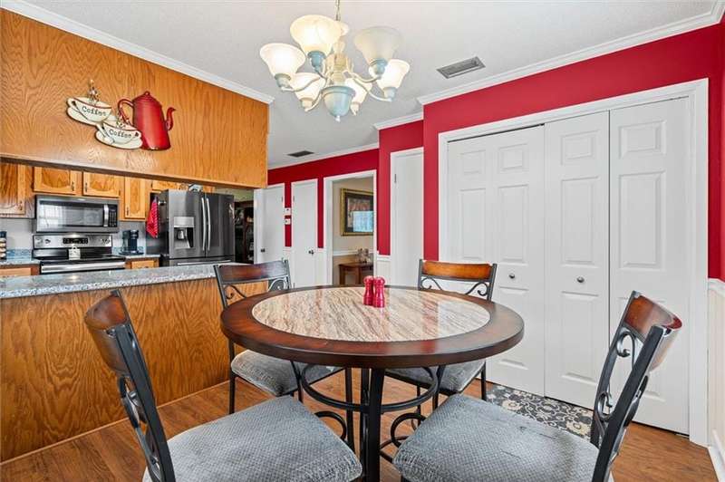 Discover your perfect retreat in this charming 3-bedroom, 2-bathroom brick home spanning 1,949 square feet. This well-designed layout offers both a cozy family room and a separate living room, giving everyone their own space to unwind. The formal dining room flows seamlessly into a convenient breakfast room, making entertaining a breeze.The kitchen features beautiful granite countertops that'll make your morning coffee routine feel a little more luxurious. Throughout the home, you'll find gleaming wood floors complemented by comfortable carpet in the bedrooms for that perfect barefoot-friendly landing.The generous primary bedroom comes with its own private bathroom featuring a refreshing shower perfect for those wake-me-up morning routines. With all-electric utilities and a practical metal roof overhead, maintenance stays simple and efficient.Outside, you'll appreciate the one-car carport that currently serves as handy storage space because let's face it, we all need somewhere to stash life's extras. The solid brick construction means this home is built to last.This home combines comfort, practicality, and that relaxed coastal lifestyle you've been dreaming about. Call your favorite realtor today and don't miss out on this coastal gem. Shed and refrigerator do not convey.