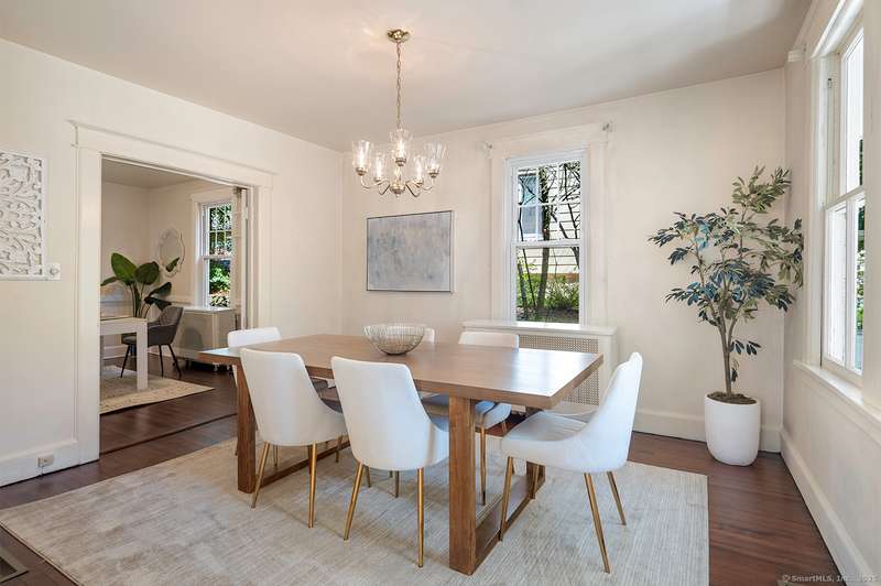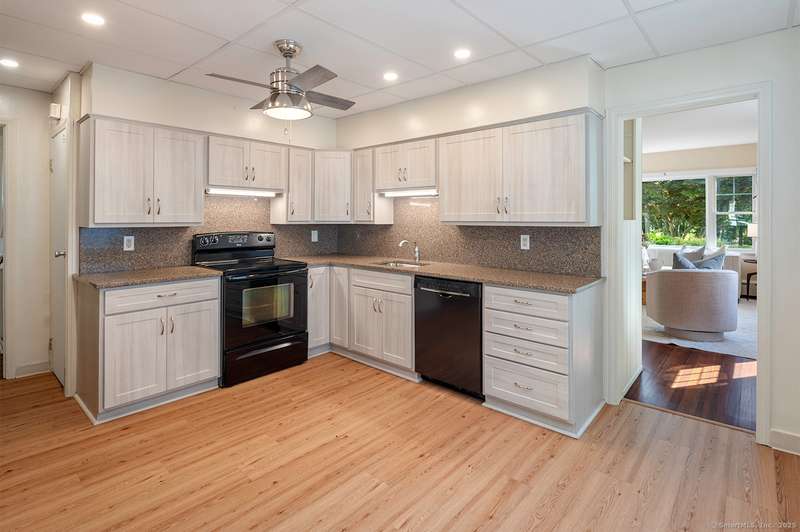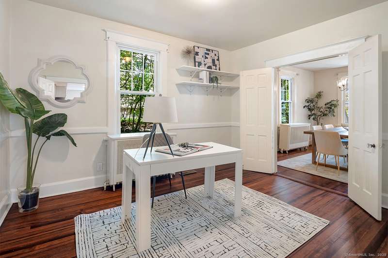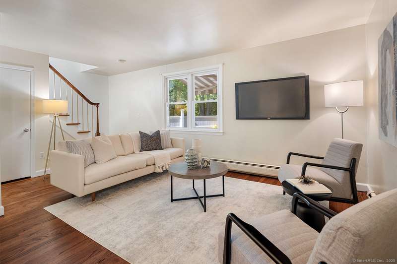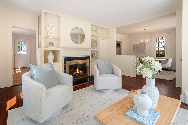 In one of Darien's most convenient locations, this move-in-ready home is just a short distance to Noroton Train Station, Corbin District, Darien Commons, and nationally recognized Darien Library. The renovated kitchen features new cabinetry, quartz countertops and high-end vinyl floors. A new full bath with step-in shower, quartz counters, and a new washer/dryer sits off the hallway. The first floor formal dining room and living room has a wood burning fireplace, an office/flex room, and a spacious family room with newly refinished hardwood floors. Upstairs offers four bedrooms-two with hardwood floors and two with new carpeting-all with skylights for natural light. The renovated bath includes a Jacuzzi tub, skylight, walk-in shower, and dual quartz vanities. Beautifully maintained and thoughtfully updated with $100K+ in updates-including central air, lifetime roof shingles, generator-ready wiring. This home will not last!