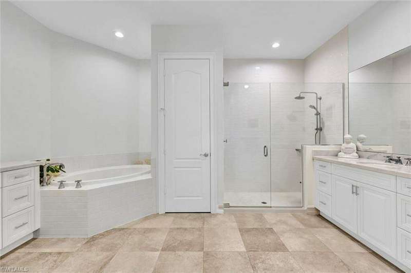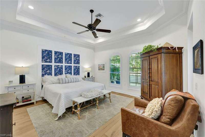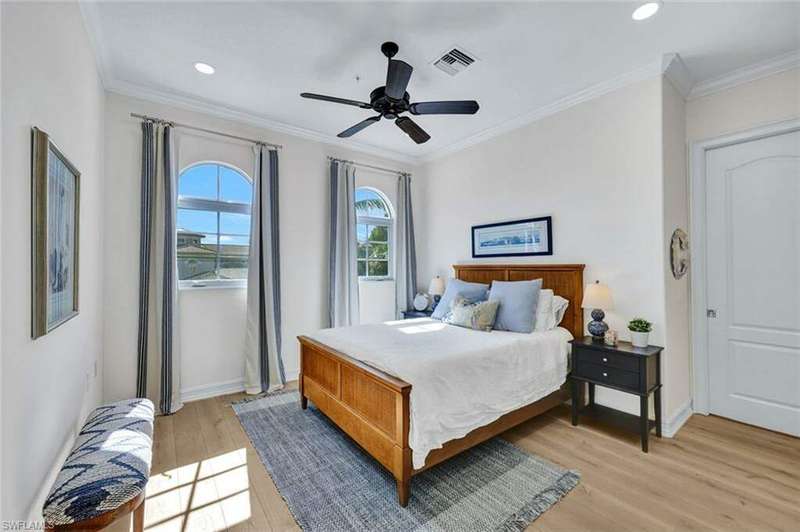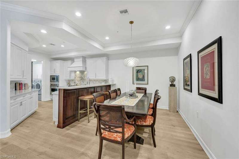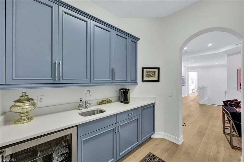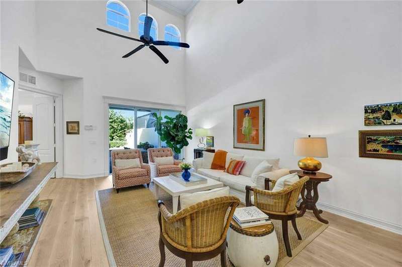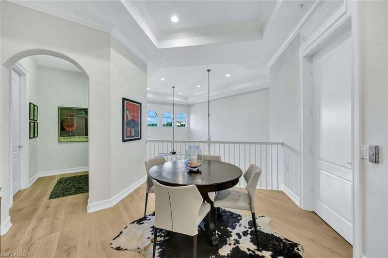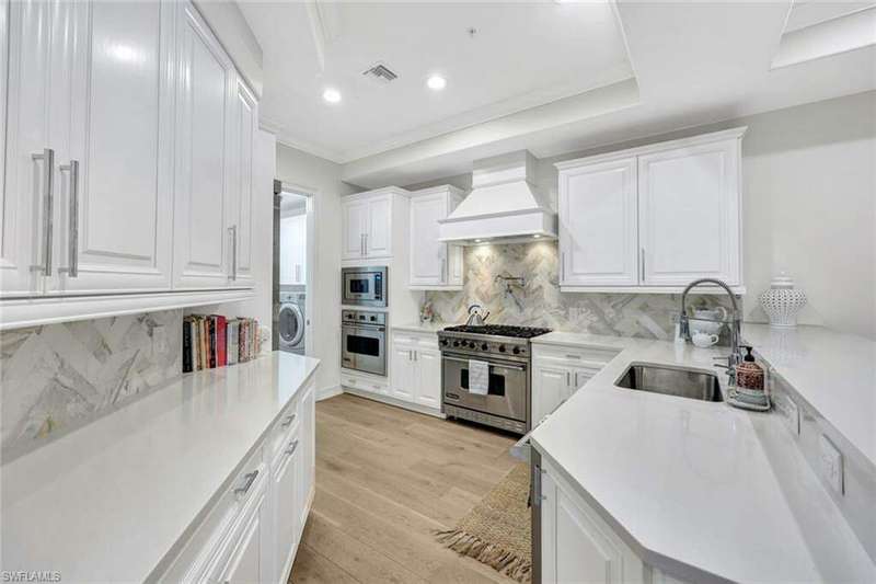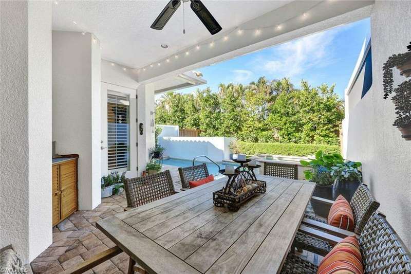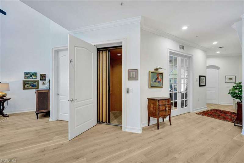 Exceptional location, living space size, elevation... and price! Luxurious Park Shore townhome with over 3200 SQUARE FEET of living space, this stunning 3 bedroom plus den residence combines the ease of villa living with the privacy & space of a single-family home. Perfectly situated and recently renovated on a serene private cul-de-sac, it is just moments to the beach, as well as upscale shopping and dining. The beach, Waterside Shoppes, Venetian Village, and Artis-Naples are moments away, as well as Seagate Park with its tennis courts & playing fields. The open floor plan flows seamlessly through living spaces adorned with volume tray ceilings, crown molding, solid wood doors, fresh paint, and newly installed Legno Bastone Italian wide plank wood floors throughout the home. The great room boasts 25' ceilings and expansive windows filling every corner of this home with natural light. The triple sliding impact glass doors open to a spacious, lush and private lanai, featuring a sparkling heated pool and spa, a new privacy fence, landscaping & night lighting, all perfect for relaxation or entertaining. The newly renovated gourmet kitchen is a chef's dream, featuring solid wood cabinetry, white quartz countertops with a marble backsplash, and a full suite of Viking appliances, including a 6-burner gas range with a pot filler, a wall oven, convection microwave, and built-in refrigerator. In addition to a formal dining room, this level has a spacious office perfect for the remote worker. This main floor also includes the luxurious primary suite with newly installed closet organizers and a sumptuous bathroom retreat with a separate soaking tub, his/her vanities and large shower. A private elevator provides convenient access to the spacious second level with soaring tray ceilings. Here, you'll find a media room, family room or second office complete with new built-in bookshelves and cabinets, a wet bar and wine cooler. Two large guest bedrooms with renovated en-suite bathrooms allow privacy and comfort for family and friends. There is plenty of storage throughout the home, but this level has an extra large storage closet plumbed for secondary laundry machines for added convenience. THIS VILLA IS LOCATED IN AN X ZONE ELEVATION AREA - with no water intrusion from any prior storms. Lusso Villas has a condo association of 5 townhouse units with strong reserves which allowed them to lower their quarterly fees for 2025. THESE FEES COVER PROPANE GAS, WATER, SEWER, LAWN MAINTENANCE, IRRIGATION, INTERIOR AND EXTERIOR PEST SERVICE, ROOF MAINTENANCE, EXTERIOR WINDOW WASHING, EXTERIOR PAINTING, PAVERS, INSURANCE, MANAGEMENT, & RESERVES. This exquisite home seamlessly combines refined elegance, thoughtful design, and an unbeatable location-all with the added convenience of an effortless "lock and go" lifestyle. Discover the pinnacle of luxury living in Naples.