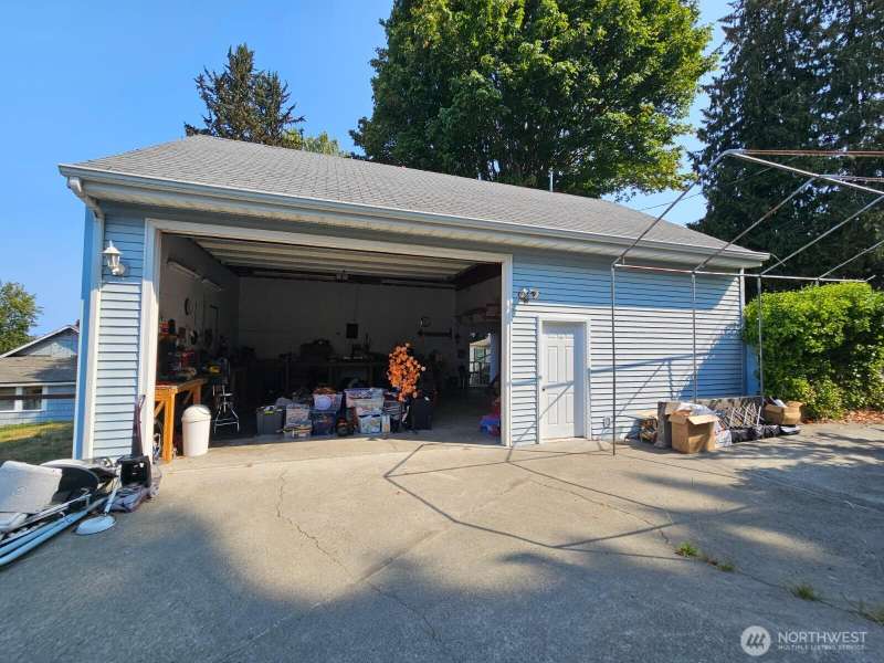 PRICE REDUCED! Don't miss this incredible value! 3 bed, 2 bath home with HUGE 850+ sq ft shop conveniently located on desirable dead-end street in the heart of the city. One level living with French doors leading out to completely fenced in back yard. Propane free standing fireplace keeps living areas super toasty! Easy care with mature landscaped yard in front and back. Garden shed, potting shed and loft area in garage all make for extra storage. RV parking by garage off of alley. Partial water views can be enhanced with a little tree trimming in front yard.