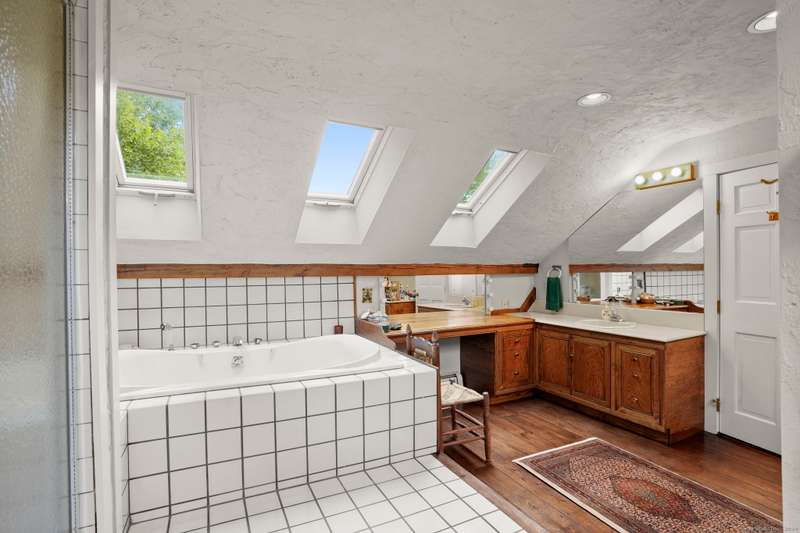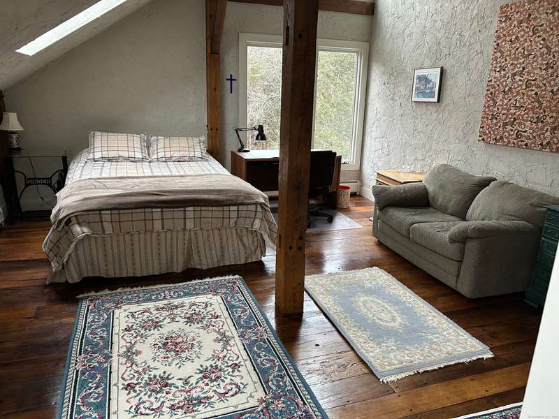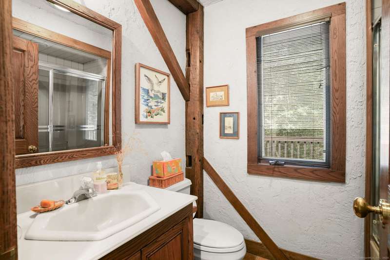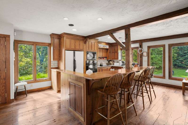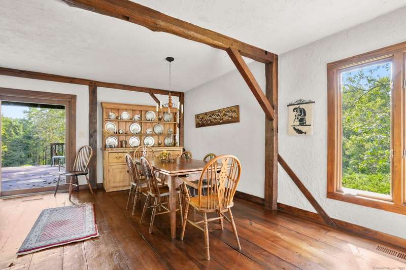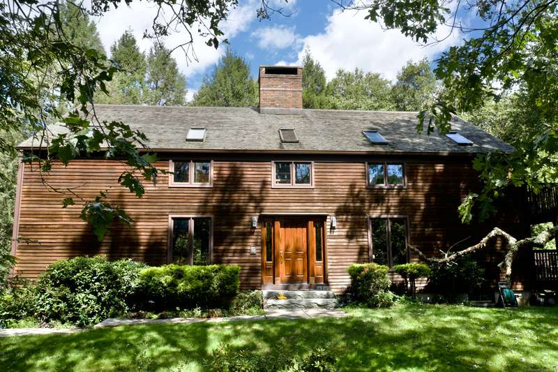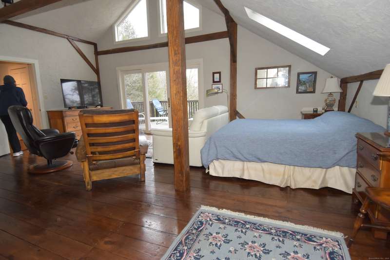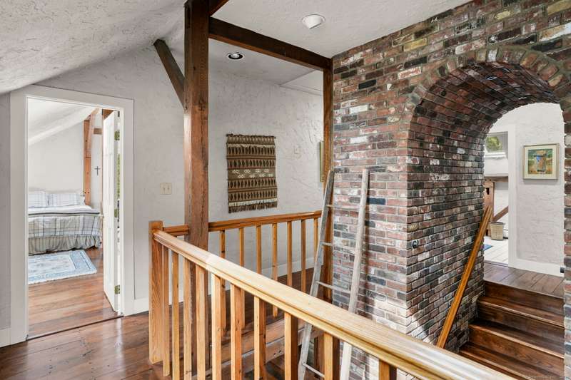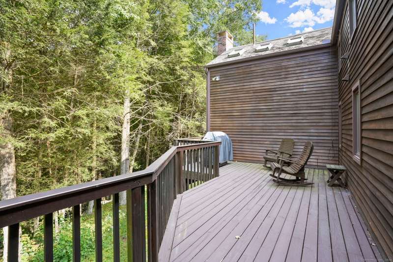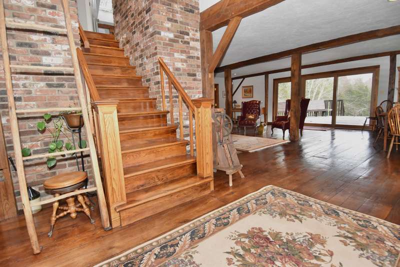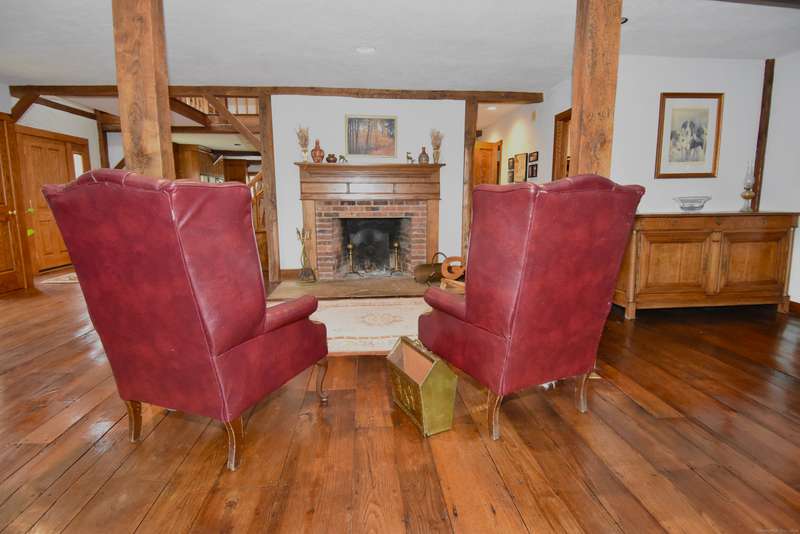 Come home to a unique 3082 sqft, one of a kind custom built Colonial home all set on 5 secluded acres. Featuring an open floor plan, beamed ceilings, oak floors, Plaster Walls, fully applianced Kitchen with breakfast bar, a spacious Family Room with brick fireplace, built-ins, & slider leading to back deck. The Living Room with fireplace is adjacent to a spacious Dining Room area & slider leading to large deck with access to side yard. At the end of the day enjoy the cozy Library with fireplace and built-ins. First floor also has an Office as well as a full Bathroom. As you ascend the stairs to the second floor you will marvel at the unique lighted brick archway. Second floor boasts of lovely Primary Bedroom Suite with brick fireplace & raised hearth, walk-in closets, Full Bath with tub, shower & vanities, and slider leading to balcony. Two other large Bedrooms with skylights, Full hallway Bathroom, and Laundry Room with utility sink. Lower level features an in-law/apartment, Storage R