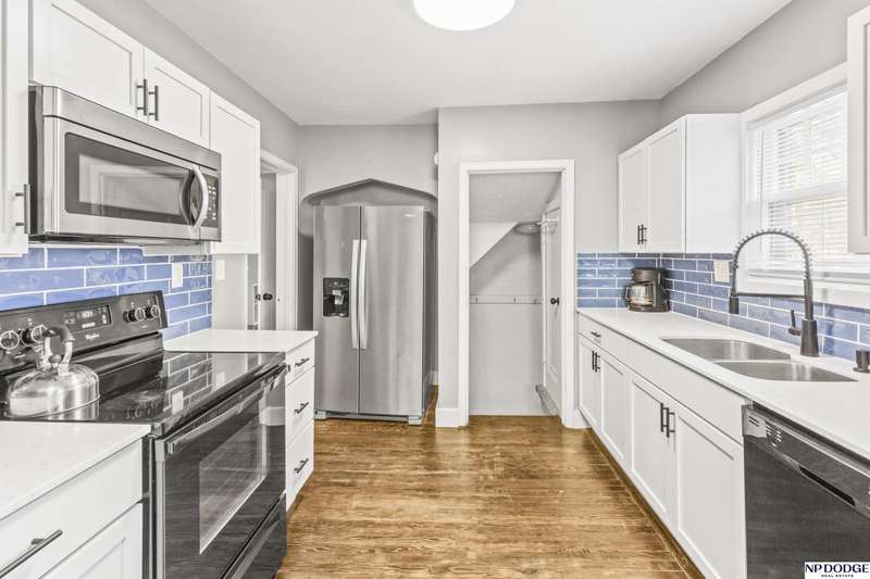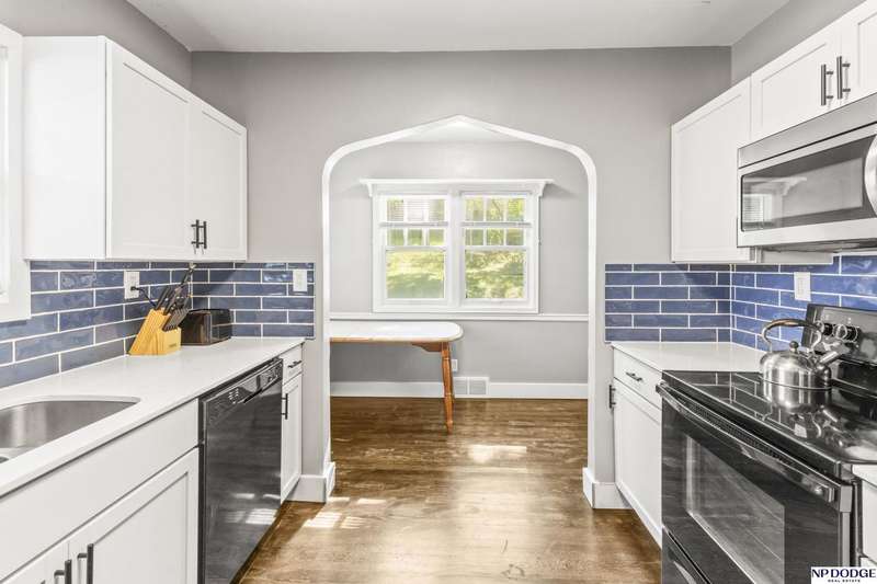 Beautifully restored east/west-facing Tudor with modern updates! Spacious living & dining rooms feature refinished hardwoods and large windows. Updated kitchen includes solid-surface counters, backsplash & new appliances. Main floor offers 2 bedrooms & full bath. Upstairs: 2 more bedrooms, full bath & flex/office. Finished lower level with 2 conforming bedrooms, 3/4 bath & 3 bonus rooms. Fully fenced backyard with patio & garden space. Recent improvements: new roof, electrical panel & dual water heaters. Convenient location near park, Fontenelle Elementary & Benson High. Stunning blend of charm, updates & space-move-in ready!