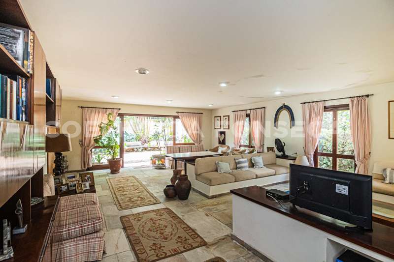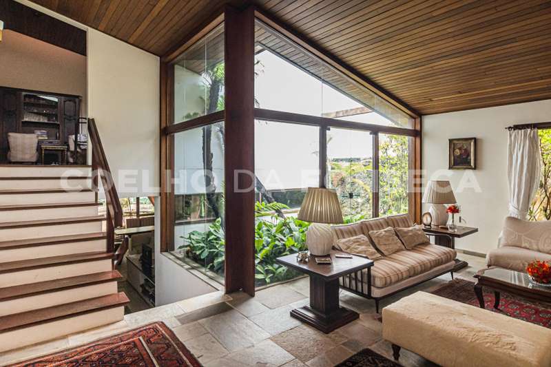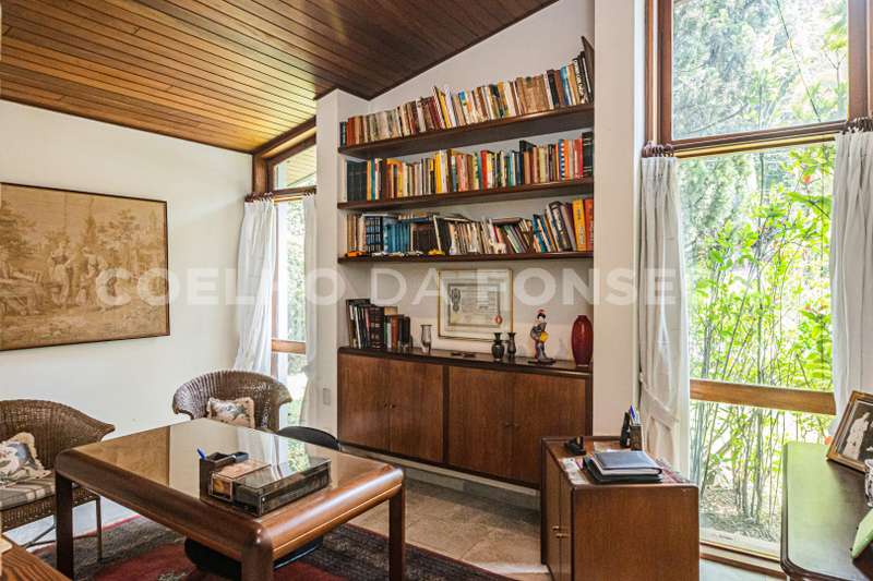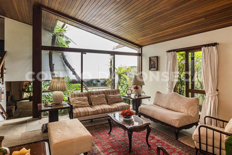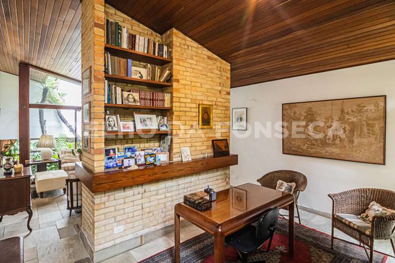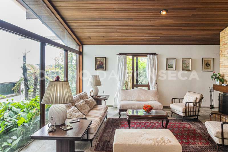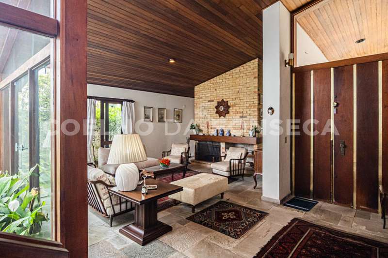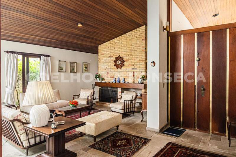 Linda casa estilo alpino com excelente planta e estrutura com forro em madeira maciça e ótimo potencial para reforma .Poucos lances de escada , quase térrea, com sala integrada a um quintal bem privativo de quase 100m² de terreno com espaço para construir piscina , área gourmet e o que mais desejar. Conta ainda com uma sala intima com lareira e lindo jardim de inverno , escritório e sala de jantar, cozinha e copa . São 4 dormitórios sendo 3 suítes. Dependencia completa de empregada e mais um outro escritório já reformado que pode ser utilizado para várias funções . Frente ampla para estacionar 4 carros lado a lado . Não deixe de visitar e se encantar !!!!