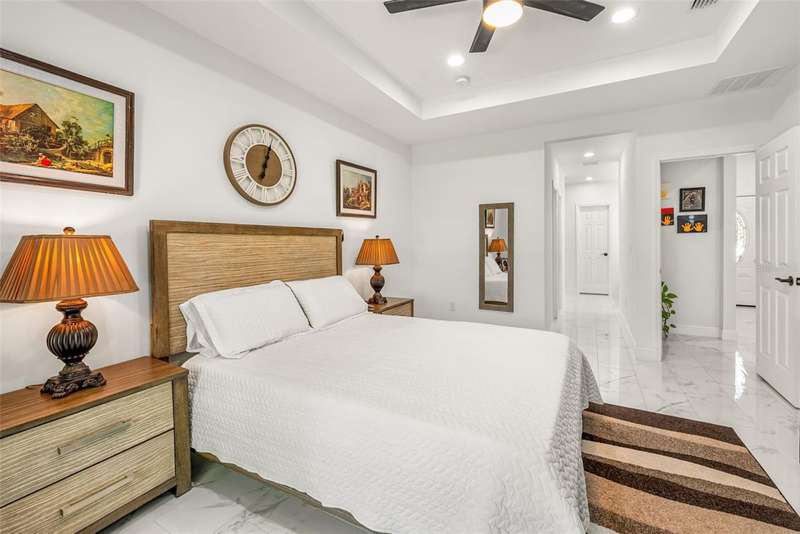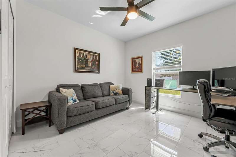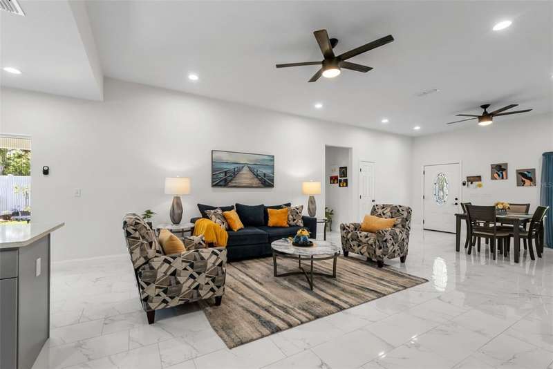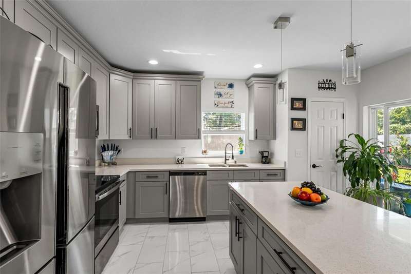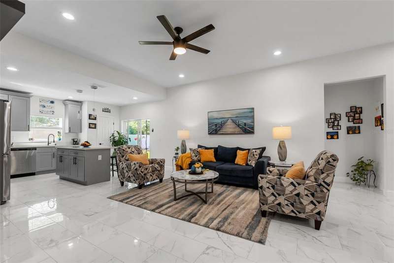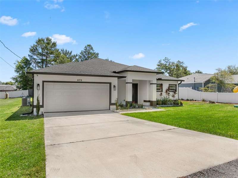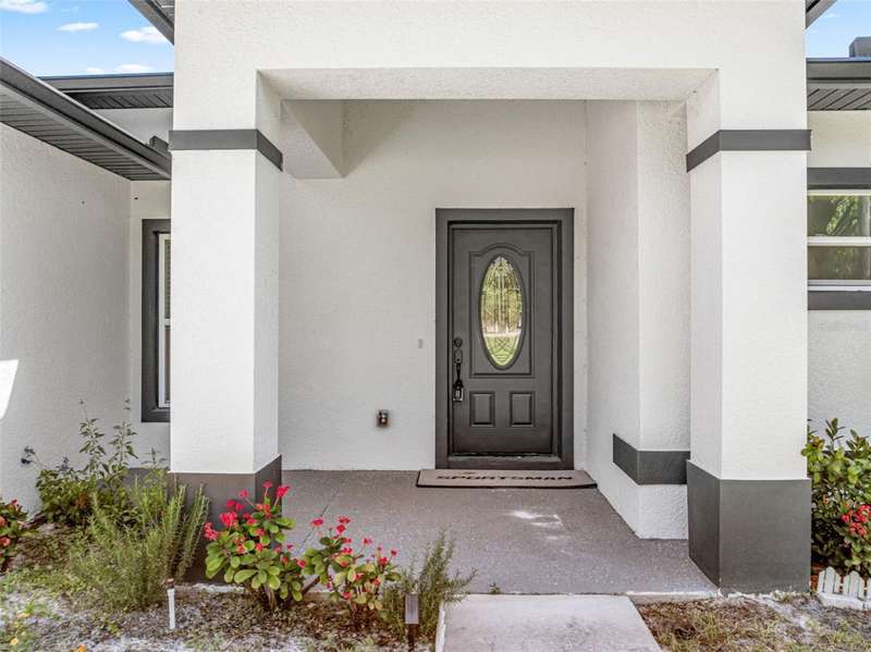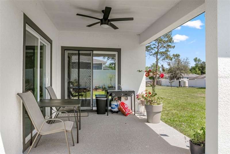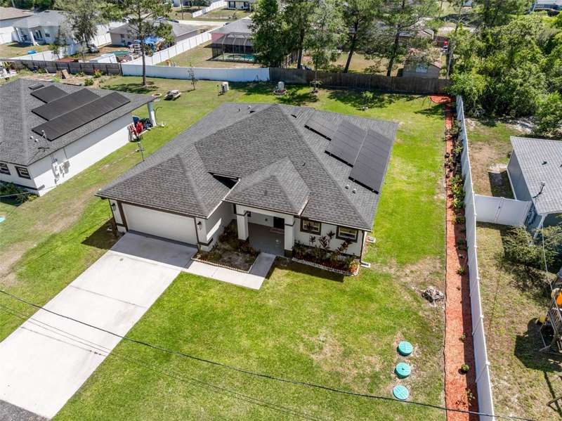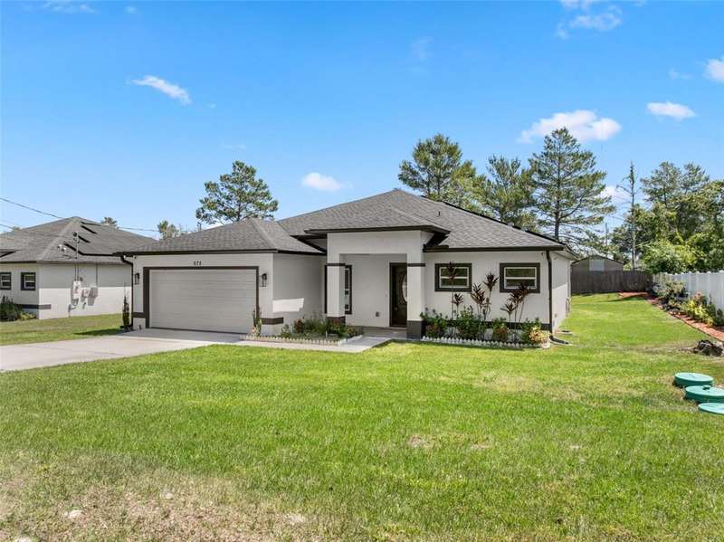 This stunning like-new single family home, built in 2022, offers 3 bedrooms and 2 bathrooms across 1,600 square feet. It has been METICULOUSLY MAINTAINED THROUGHOUT! The property sits on a 0.24-acre lot, providing ample space for lots of outdoor activities. As you approach the home, you'll notice the new lawn and flower garden, complemented by a wide sidewalk leading to a welcoming front porch Just waiting for those comfy patio chairs and fire pit. The entry features an upscale oversized front door, opening into a bright and airy open-concept living space with high ceilings and high-end ceramic tile flooring throughout. The kitchen is a chef's dream, equipped with 42-inch light shaker cabinetry, quartz countertops, stainless steel appliances, recessed lighting, and an extended island with bar top seating. The split floor plan includes a large master bedroom with an en-suite bathroom featuring dual sinks, private water closet, oversized glass frame shower and two walk-in closets not to mention a view of the huge backyard. The living room is filled with natural light from patio doors that lead to a spacious under-roof back porch, perfect for relaxing at the end of the day or entertaining. The backyard is ideal for those family BBQs and gatherings! Located on a quiet street, this home offers tranquility while still being close to local amenities like schools, shopping, dining and entertainment. Plus, there's no HOA, giving you more freedom to enjoy your property! Two car garage with a water filtration system and a complete solar system that has almost cut the owner's bills in half! This is a beauty and ready to go! Don't miss the opportunity to have a Newer custom built home without having to wait!