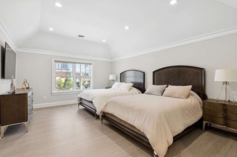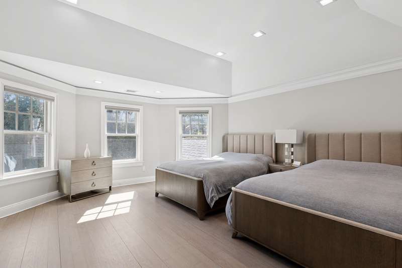 Experience luxury and functionality in this stunning, Bridgehampton rental, on the market for the first time ever. The 6,643 +/- sf home, built in 2025, features 5 bedrooms, 6.5 bathrooms and beautifully designed, open interior spaces. Every inch is simply immaculate. The 1.00+/- acre grounds are private, on a cul-de-sac, and showcase a heated gunite pool as well as an expansive mahogany deck well-suited for entertaining or relaxing, overlooking the professionally manicured landscape. The foyer leads into a light-filled great room that offers double-height ceilings, fireplace and oversized windows drenching the space in light. The gourmet kitchen is stunning, offers a breakfast nook, and is open to a second living room, and adjacent to a screened porch. Harwood floors can be found all throughout. Completing the first floor is the first of two primary bedroom suites, a second bedroom, and laundry room. The second floor includes the other primary suite, two other bedroom suites as well as a family room. Located in a serene neighborhood, this rental home provides privacy and tranquility in a luxurious and new package. Only minutes away from Bridgehampton's attractions, including Main Street, vineyards, equestrian farms, and famed ocean beaches. New 5-bedroom rental in Bridgehampton.