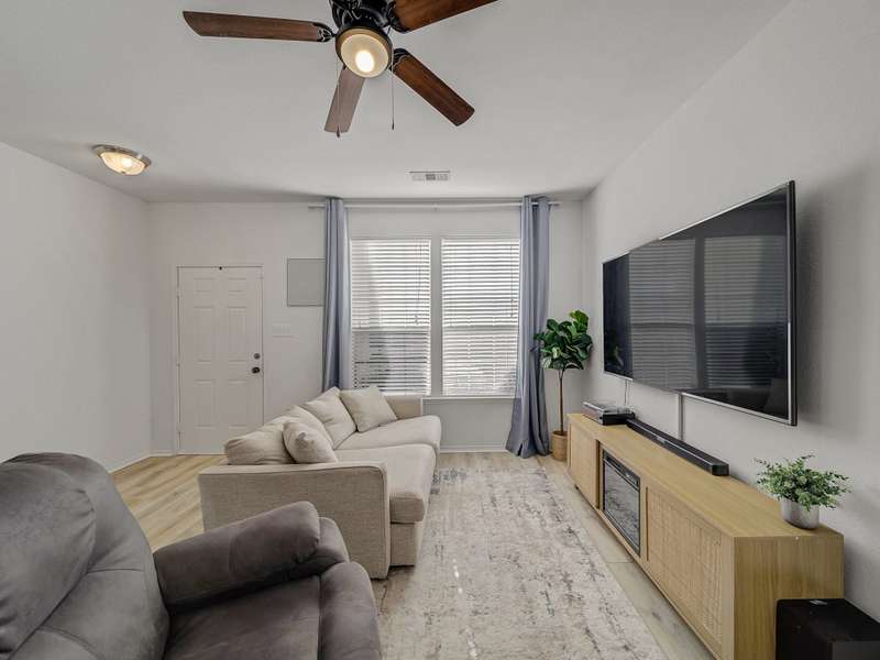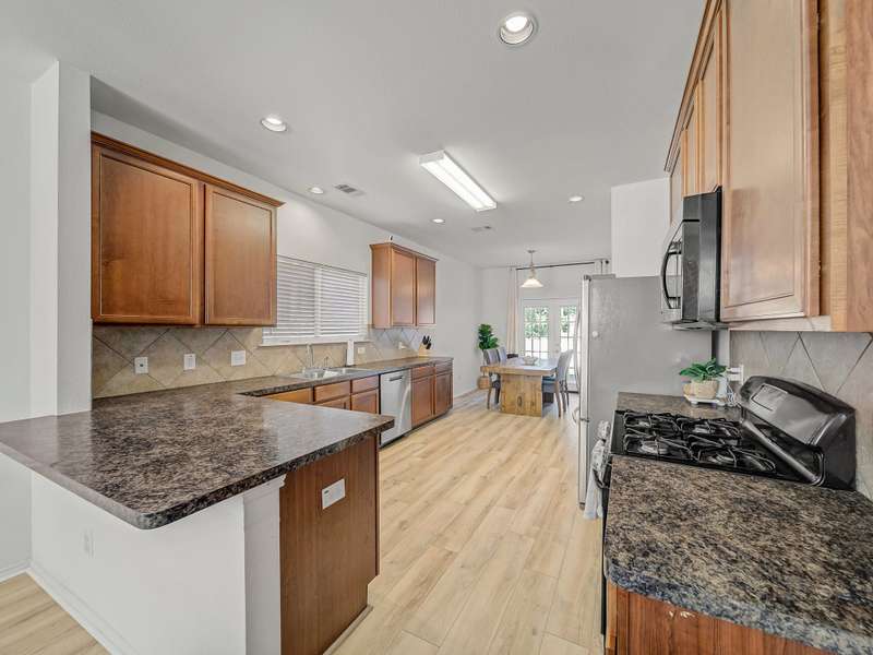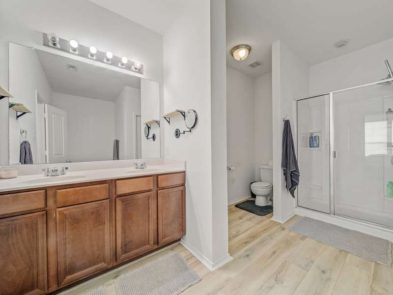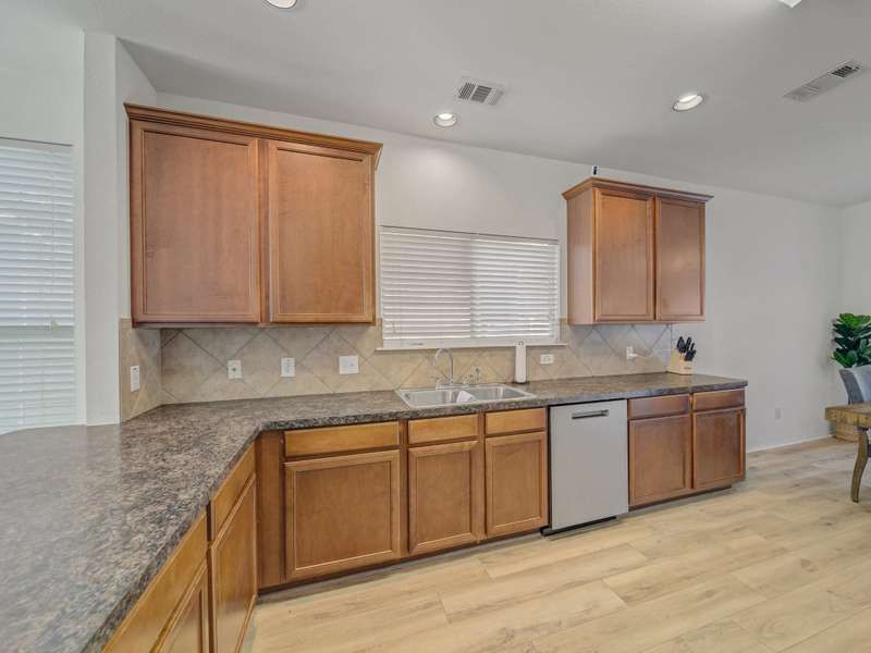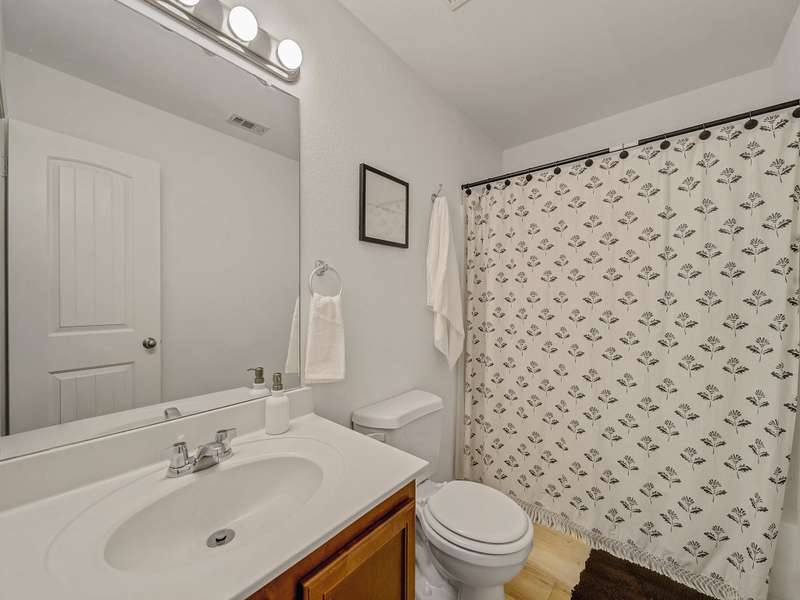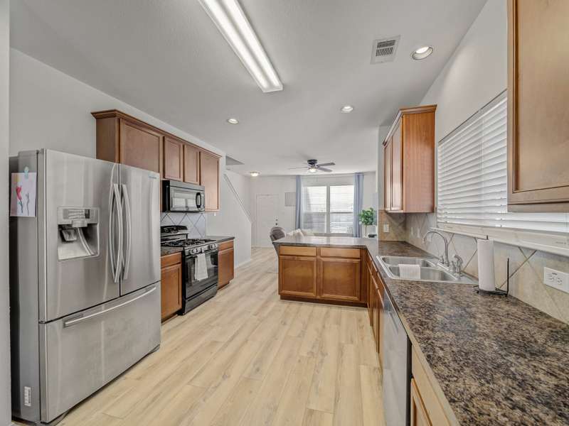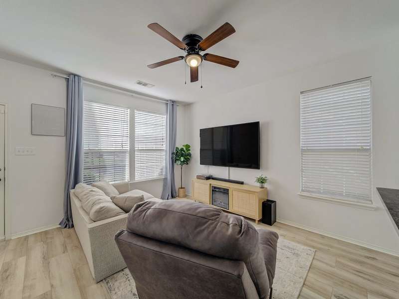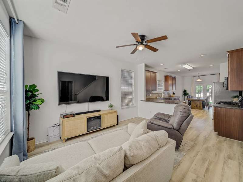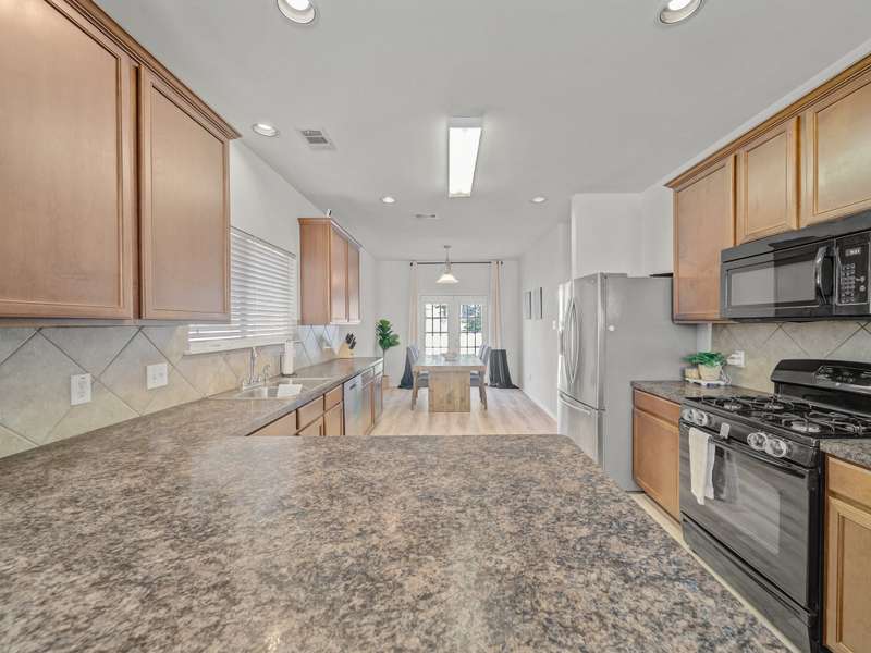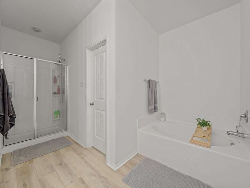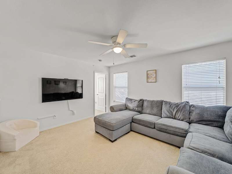 With its welcoming front porch and storybook curb appeal, this cheerful two-story home blends comfort and character in the heart of Providence Village. Inside, youll find a light-filled open layout that flows effortlessly from the cozy living room to the kitchen and dining space - perfect for everyday living or weekend entertaining. The kitchen features rich cabinetry, a gas range, and all kitchen appliances included, while the dining area opens to the backyard through classic French doors. The spacious 1st floor primary suite offers a true retreat, complete with a soaking tub, separate shower, dual vanities, and a walk-in closet that connects directly to the laundry area for added convenience! Upstairs, a versatile bonus space anchors two secondary bedrooms and a full bath. Located in a vibrant community known for its parks, pools, tennis courts, and more this home offers not just a place to live, but a lifestyle to love.