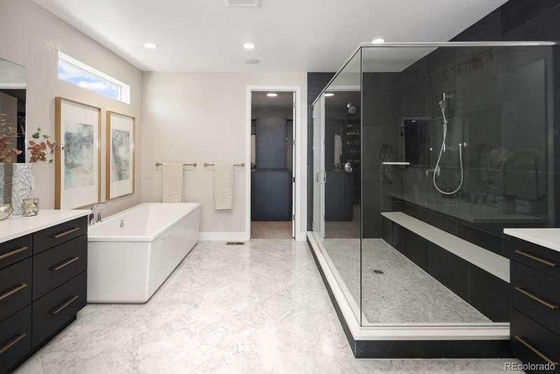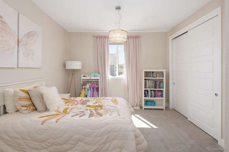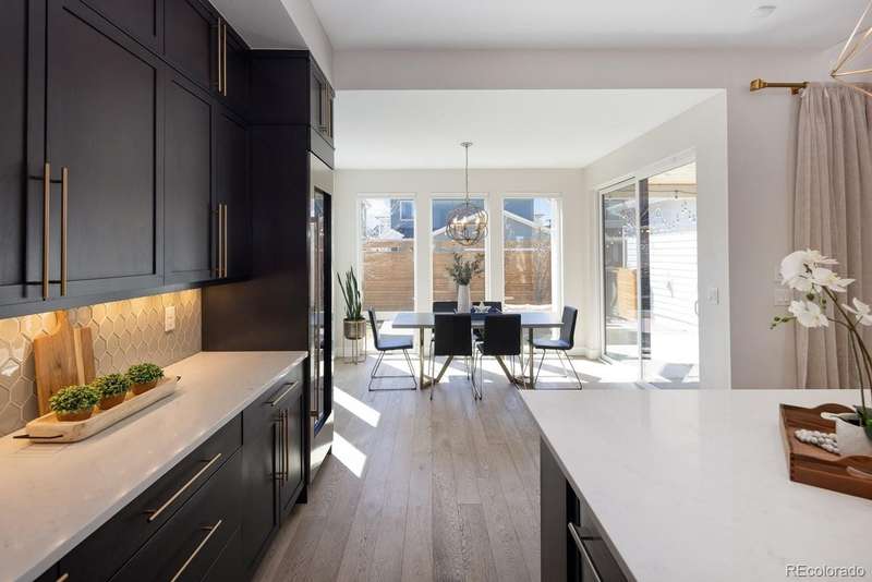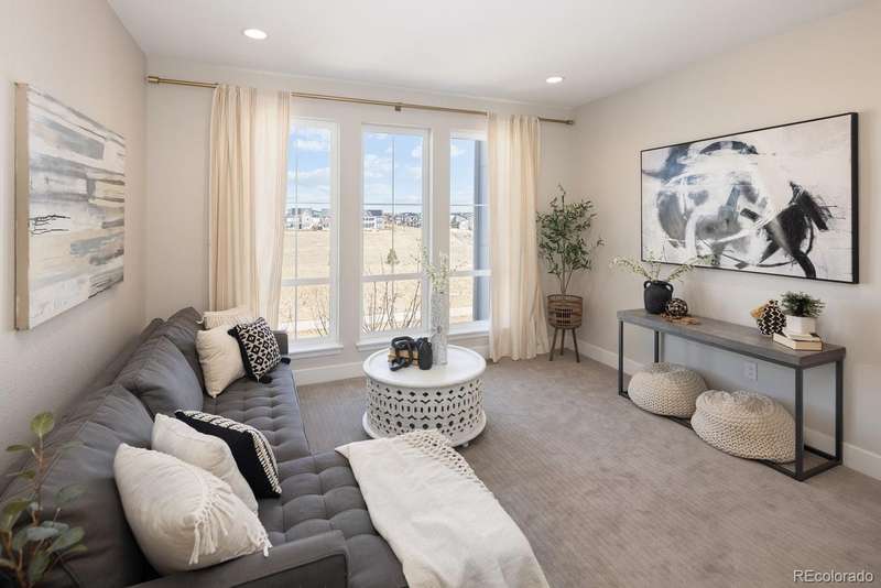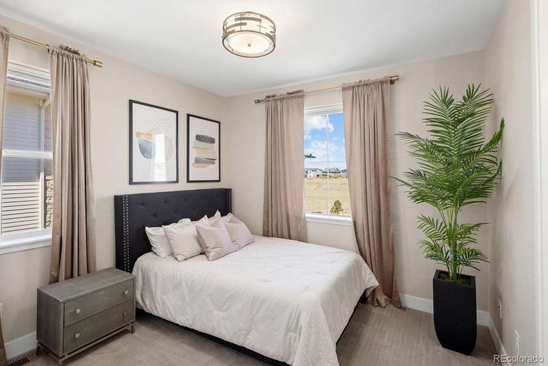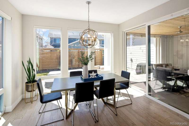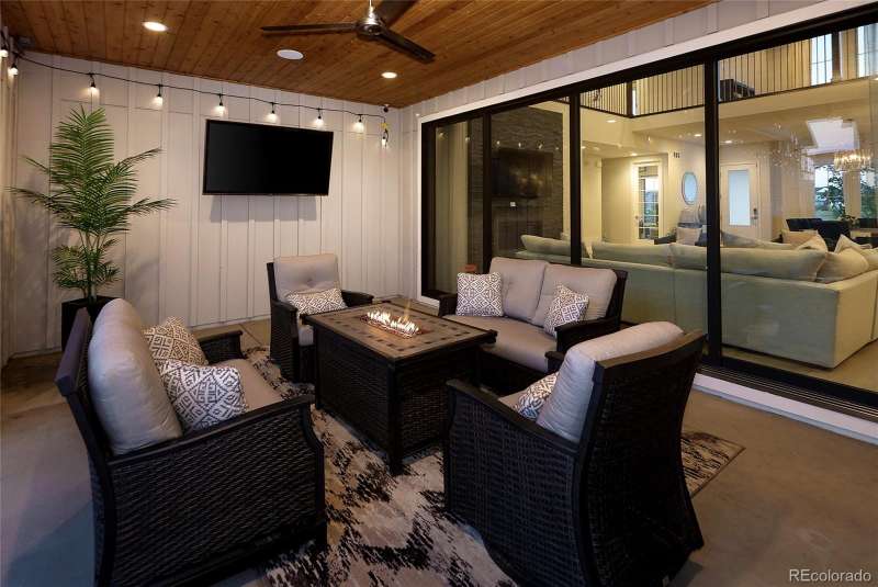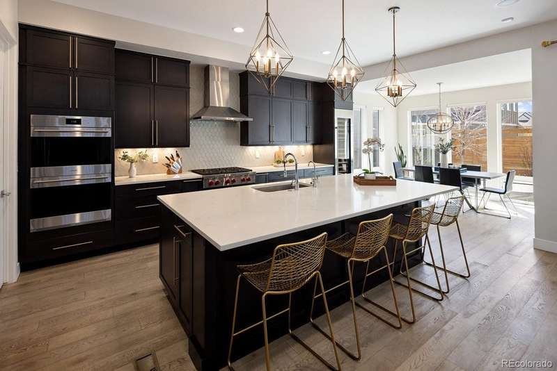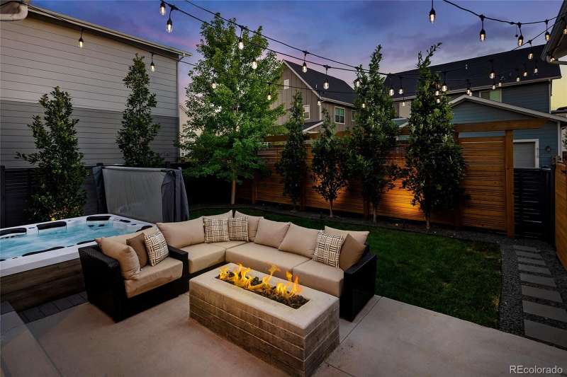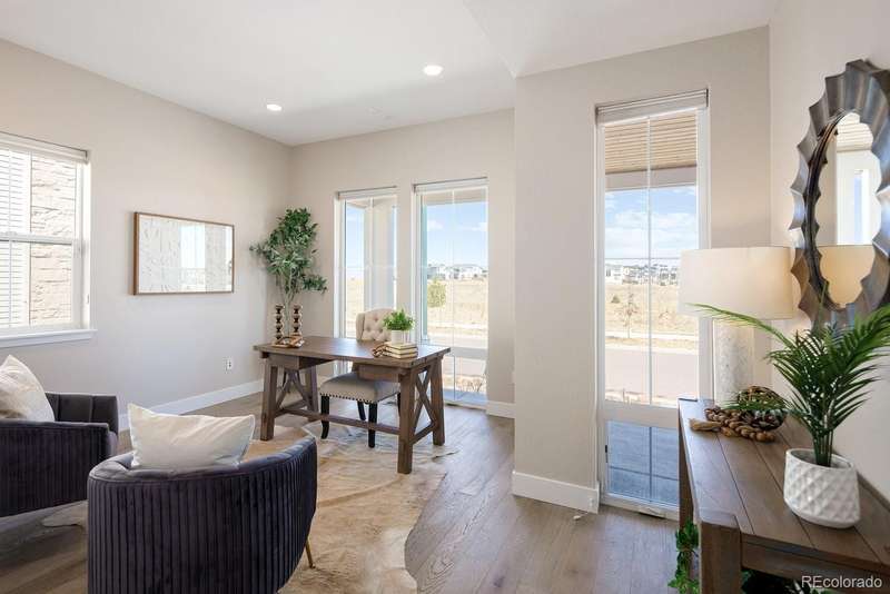 THE ONLY INFINITY LUXE EDITION ON THE MARKET RIGHT NOW! This stunning home redefines luxury living with direct access to lush parks and open space across the street. Designed for elegance and comfort, the expansive open floor plan is enhanced by soaring 25-foot ceilings, Capiz shell chandeliers, and floor-to-ceiling windows that flood the space with natural light. The main floor features exquisite grey oak hardwoods, remote-control blinds, in-wall speakers, and designer lighting. The gourmet kitchen is a masterpiece, boasting an expansive marbled quartz island, sleek black cabinetry with gold hardware, and top-tier appliances, including a built-in Sub-Zero refrigerator, a 120-bottle Sub-Zero wine column, a Wolf Range, and double ovens. A custom walk-in pantry and cozy breakfast nook complete this culinary dream. The living rooms slate ledger stone fireplace and four-panel slider seamlessly connect to the covered patio, while the elegant dining room and private office with French doors add to the homes versatility. A main-floor guest suite with an en-suite bath and a stylish powder room round out this level. Upstairs, a spacious loft offers serene park views. The luxurious primary suite features a spa-like 5-piece bath with Carrera marble, a Kohler soaking tub, a dual-head slate-tiled shower, and a custom walk-in closet with a central island. Three additional bedrooms include an en-suite and a Jack-and-Jill bath, while the upstairs laundry room enhances convenience. The finished basement is designed for entertainment, featuring a full wet bar/kitchen with high-end appliances, a great room, a dedicated gym, and a sixth bedroom with a spa-inspired steam shower. Outside, over $100K in landscaping creates a private oasis with a covered patio, firepit, and a Bullfrog AL9 hot tub, all surrounded by mature trees and accent lighting. Minutes from Anschutz Medical Campusideal for medical professionals seeking a quick commute!