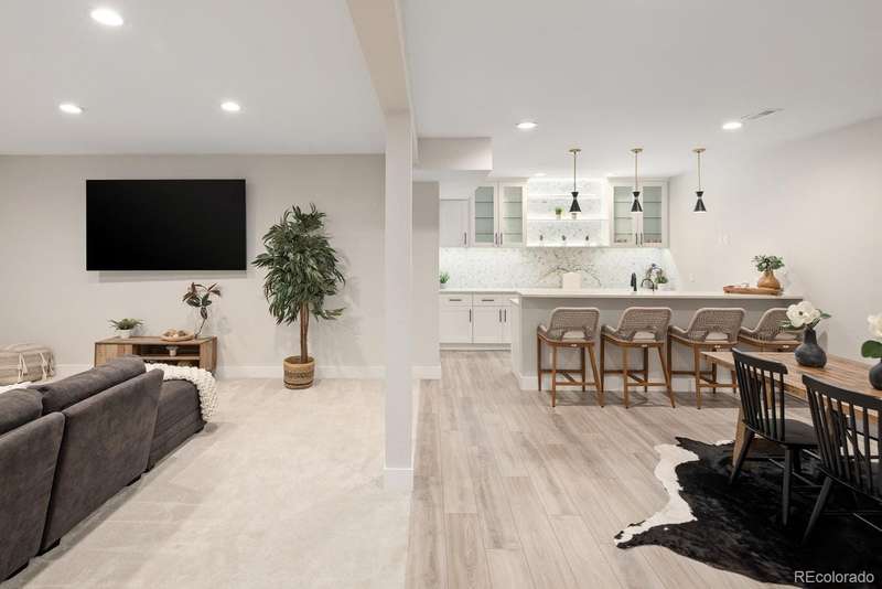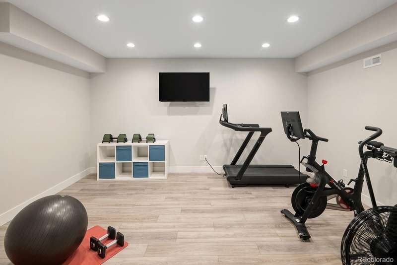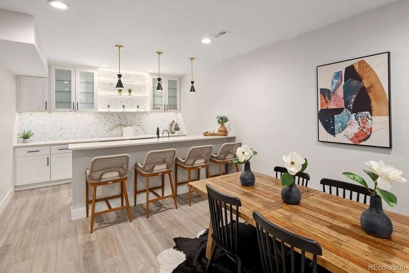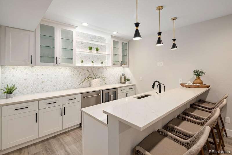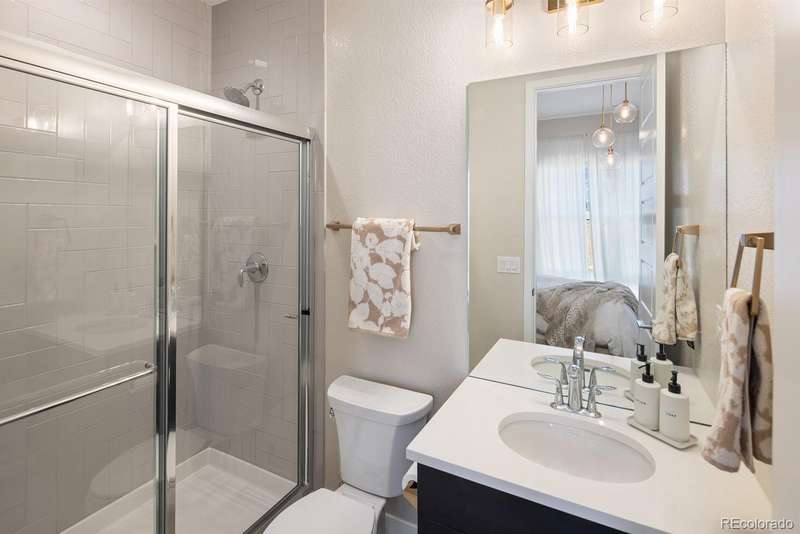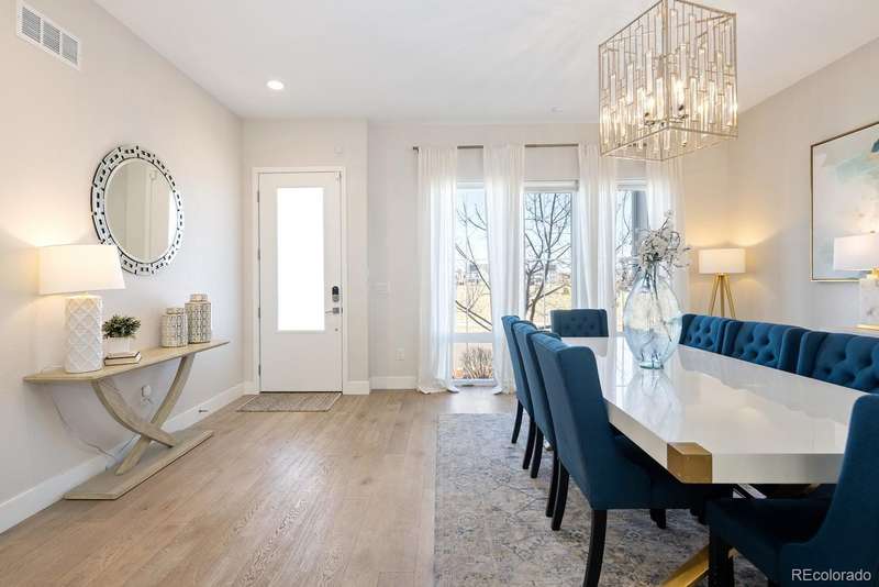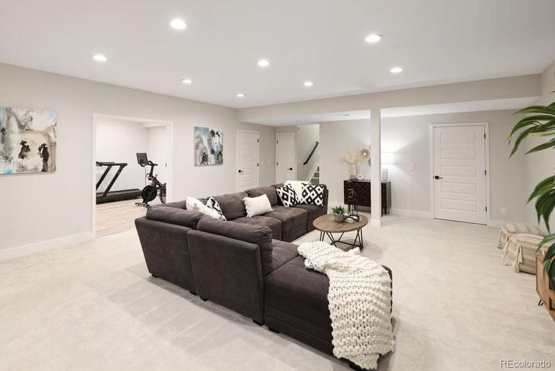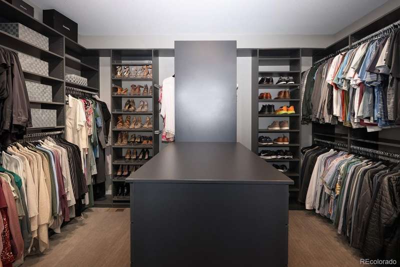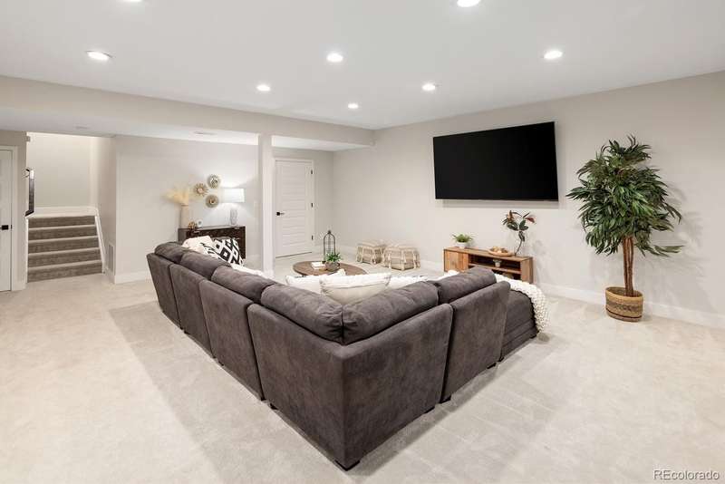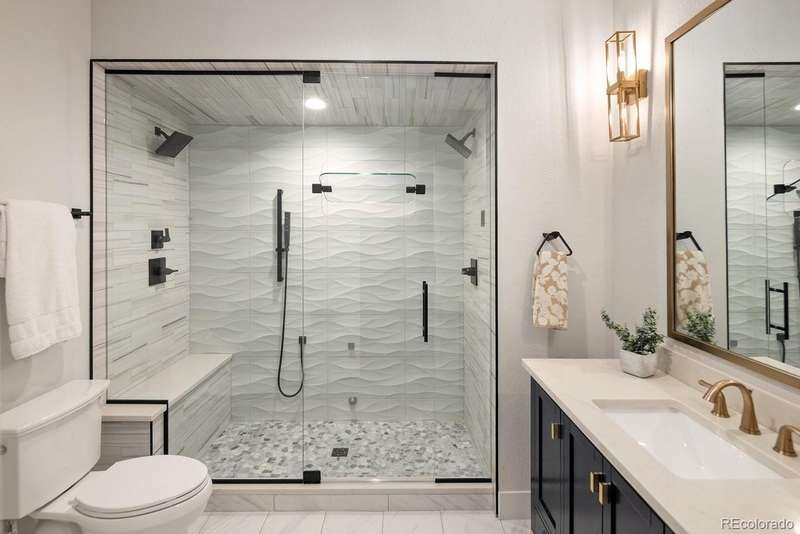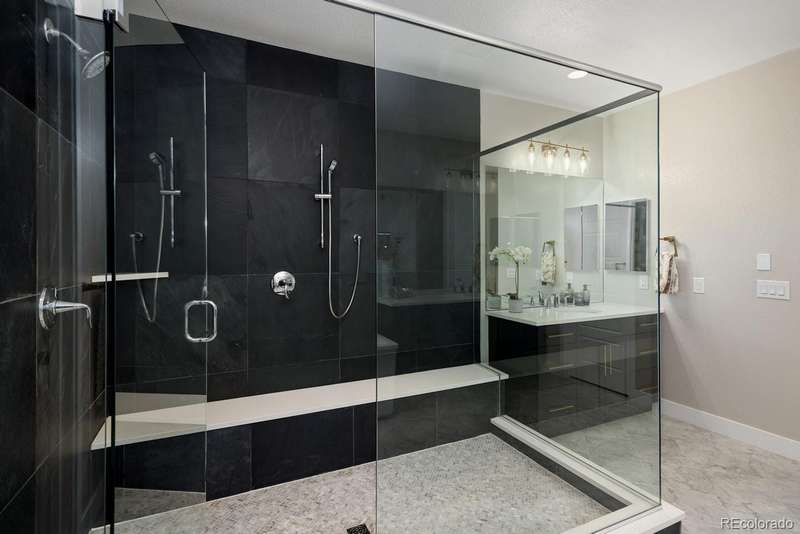 THE ONLY INFINITY LUXE EDITION ON THE MARKET RIGHT NOW! This stunning home redefines luxury living with direct access to lush parks and open space across the street. Designed for elegance and comfort, the expansive open floor plan is enhanced by soaring 25-foot ceilings, Capiz shell chandeliers, and floor-to-ceiling windows that flood the space with natural light. The main floor features exquisite grey oak hardwoods, remote-control blinds, in-wall speakers, and designer lighting. The gourmet kitchen is a masterpiece, boasting an expansive marbled quartz island, sleek black cabinetry with gold hardware, and top-tier appliances, including a built-in Sub-Zero refrigerator, a 120-bottle Sub-Zero wine column, a Wolf Range, and double ovens. A custom walk-in pantry and cozy breakfast nook complete this culinary dream. The living rooms slate ledger stone fireplace and four-panel slider seamlessly connect to the covered patio, while the elegant dining room and private office with French doors add to the homes versatility. A main-floor guest suite with an en-suite bath and a stylish powder room round out this level. Upstairs, a spacious loft offers serene park views. The luxurious primary suite features a spa-like 5-piece bath with Carrera marble, a Kohler soaking tub, a dual-head slate-tiled shower, and a custom walk-in closet with a central island. Three additional bedrooms include an en-suite and a Jack-and-Jill bath, while the upstairs laundry room enhances convenience. The finished basement is designed for entertainment, featuring a full wet bar/kitchen with high-end appliances, a great room, a dedicated gym, and a sixth bedroom with a spa-inspired steam shower. Outside, over $100K in landscaping creates a private oasis with a covered patio, firepit, and a Bullfrog AL9 hot tub, all surrounded by mature trees and accent lighting. Minutes from Anschutz Medical Campusideal for medical professionals seeking a quick commute!
