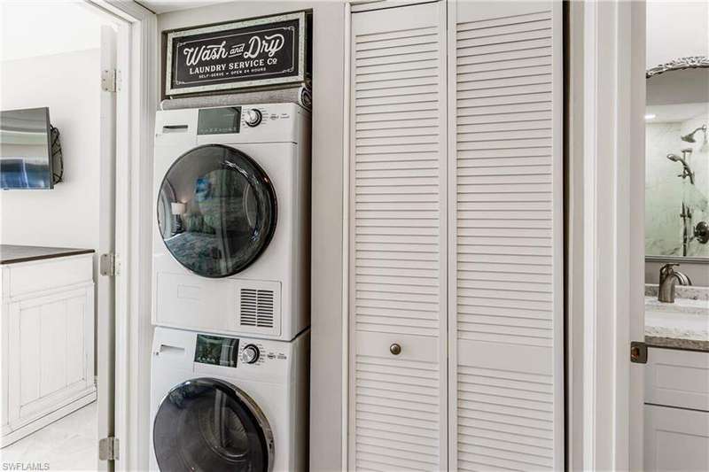 Experience the perfect blend of tranquility and luxury in this beautifully remodeled ground-floor condo on the Marco River-where playful dolphins, passing boats, and spectacular sunsets become part of your daily view. Step through brand-new impact-resistant glass doors and windows into a space designed for both comfort and style. Every detail has been thoughtfully curated with no expense spared. Enjoy modern upgrades throughout, including a fully updated kitchen with new appliances and a convenient in-unit washer/dryer. The unit's ideal orientation offers warm winter sunshine and cooling summer shade, ensuring year-round comfort. Relax on your private lanai overlooking a lush green lawn as pelicans, eagles, and egrets glide by. With no units above you, peace and privacy are yours. Cast a line from the renowned Ville De Marco pier-one of the island's top fishing spots-or launch your boat from the community's private ramp for direct Gulf access with no bridges. In minutes, explore nearby gems like Goodland, Collier Bay, and The Esplanade, or stroll to The Shoppes of Olde Marco. Enjoy waterfront dining and live music at the iconic Snook Inn. Ville De Marco is a hidden gem that blends a serene setting with unmatched convenience-just minutes from everything Marco Island, voted the Best Island Vacation Destination in the U.S., has to offer. Don't miss this rare opportunity. Pictures can't capture its magic... this one's a must-see!