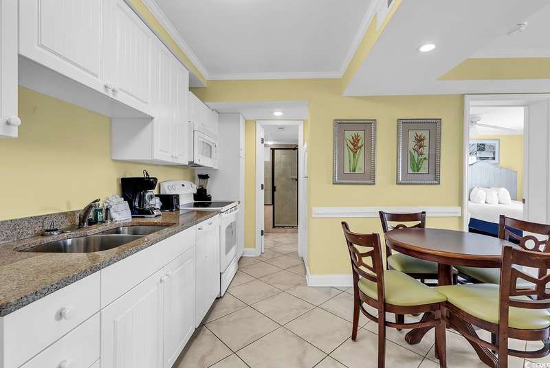 This beautiful third floor Villa with a balcony that overlooks a lovely and peaceful pond is a perfect beach get away. Only a short walk or drive to the Beach club, tennis and pickle ball courts and crabbing dock. Enjoy the fun lazy river with family and friends. Once inside, you have a full size kitchen, dining area, and living room. Separate Bedroom with two queen beds and bath for plenty of privacy. Just minutes from Restaurants, shopping makes this a great place to vacation or live!