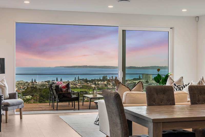 This stunning home offers breathtaking, unobstructed views of the ocean and city lights. From the main master bedroom, you can wake up to the beauty of the sunrise over the sea. Designed for comfort and luxury, this spacious home features 5 bedrooms, 4.5 bathrooms, 3 living areas, and dual kitchens, perfect for family living and entertaining. • The open-plan living and dining area is bright and airy, with easy access to a large balcony where you can enjoy the 180-degree ocean views. • The modern kitchen comes with a generous island, high-quality appliances, and a separate butler’s kitchen, ideal for cooking and entertaining. • The main master offers stunning ocean views, a spacious walk-in wardrobe, and an ensuite. • Two additional master, each with their own ensuites and wardrobes, provide privacy and comfort for family or guests. • The ground floor includes a media room, with two more spacious bedrooms and a shared luxurious bathroom. Located in a prime spot, this home offers the perfect blend of coastal living and modern convenience, just a short drive from Orewa’s amenities, schools, and beaches. Enjoy the peace and beauty of the area while being close to everything you need. Don’t miss out on this incredible opportunity to own a home that offers both elegance and comfort. CALL US today or attend our open home! Auction: 8-12 The Promenade, Takapuna on Wednesday 29 October 2025 at 9:30AM