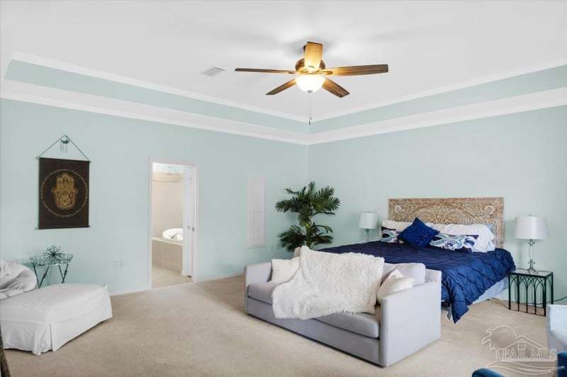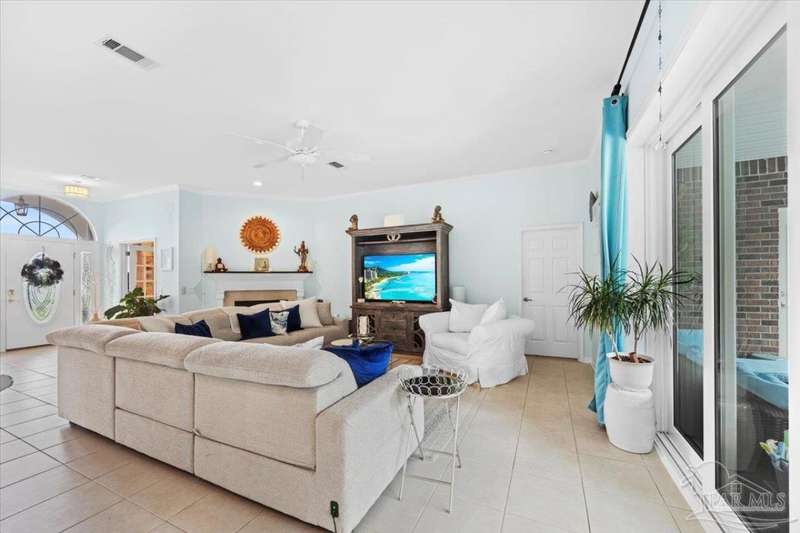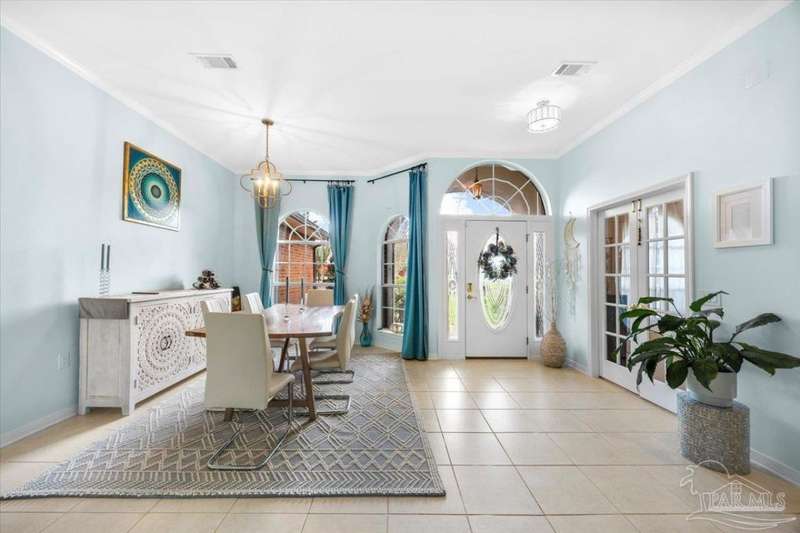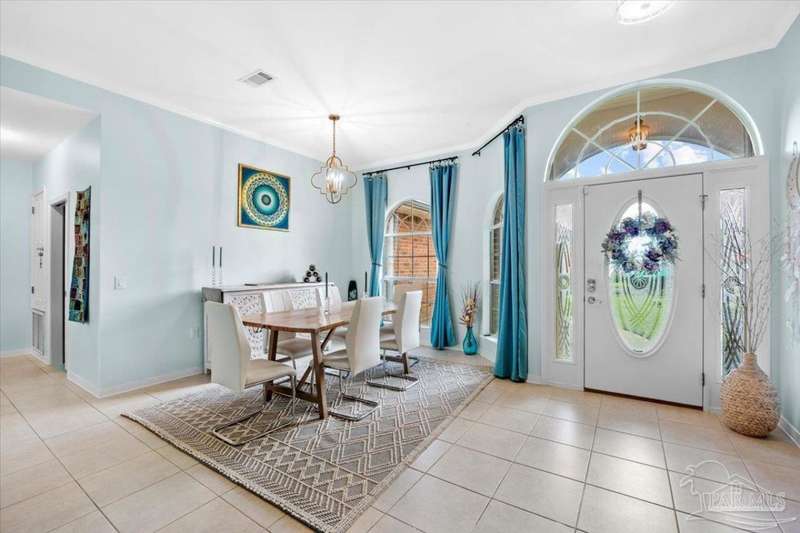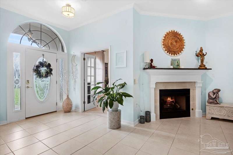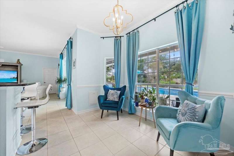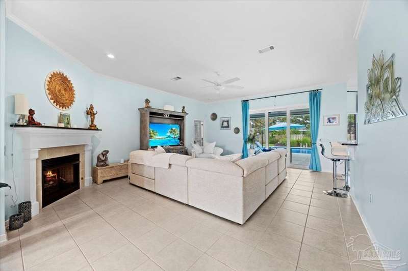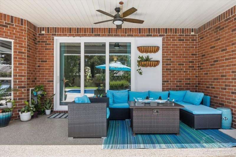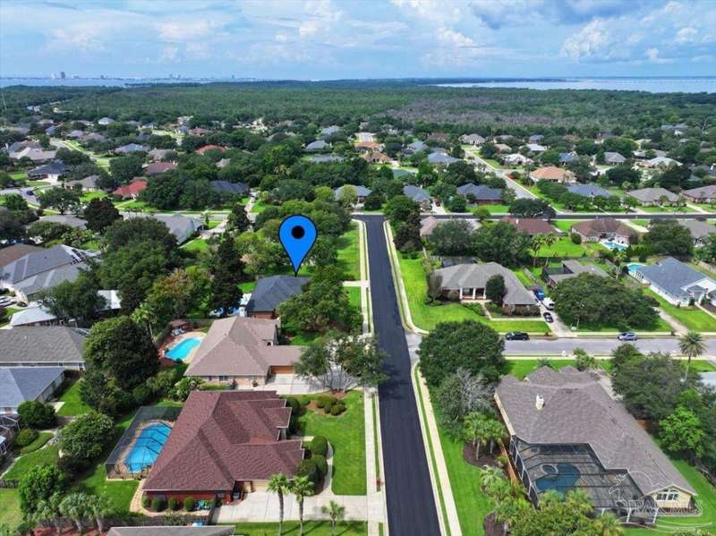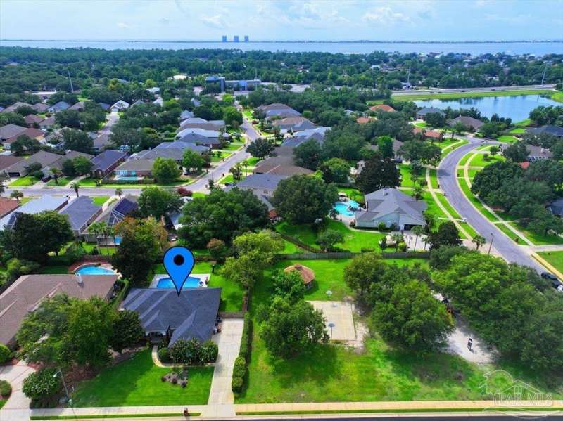 Open House Saturday and Sunday September 13th and 14th, 10AM-1 PM. Welcome to this impeccably maintained, custom brick home in desirable Grand Pointe-where indoor comfort meets outdoor paradise. Step into your private retreat featuring a fabulous backyard with a large sparkling pool, lush tropical landscaping, and a covered patio perfect for entertaining or relaxing year-round. This 3-bedroom, 2-bathroom home PLUS a DEDICATED OFFICE offers a versatile layout, including two spacious guest rooms connected by an oversized Hollywood-style bathroom-ideal for an in-law suite. The primary suite is a true sanctuary, with serene views of the pool and patio. There's ample space for a sitting area, treadmill, or exercise bike, plus a huge walk-in closet, oversized linen storage, jetted tub, separate shower, and private water closet. The open-concept living area flows seamlessly from the formal dining room into the spacious kitchen, with granite countertops and updated appliances, new dishwasher (2025). The home also features: whole-house generator, updated HVAC (2018), new roof (2020), new garage door (2025), new sliding doors to patio (2024), hurricane shutters including Storm Tex electric retractable sunscreen and hurricane screen (2023), new gutters (2024), new pool liner (2022), new irrigation pump (2024), well and sprinkler system, water heater (2016), transferrable termite protection plan. Flood insurance not required and the home has never flooded. With solid construction, thoughtful updates, and a show-stopping backyard, this home offers everything you need to move in and start living your best Florida lifestyle. Grand Pointe is a desirable neighborhood that boasts a community park, underground utilities and sidewalks. Great location only 5 miles to sugar white sands and emerald waters of Pensacola Beach. Zoned for TOP RATED SCHOOLS of Gulf Breeze Elementary, Middle and High School. Close to shopping, hospitals, restaurants, downtown Pensacola.