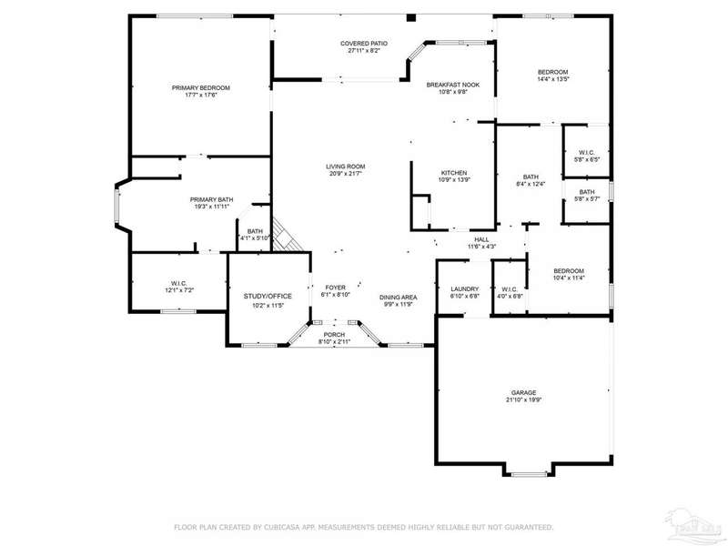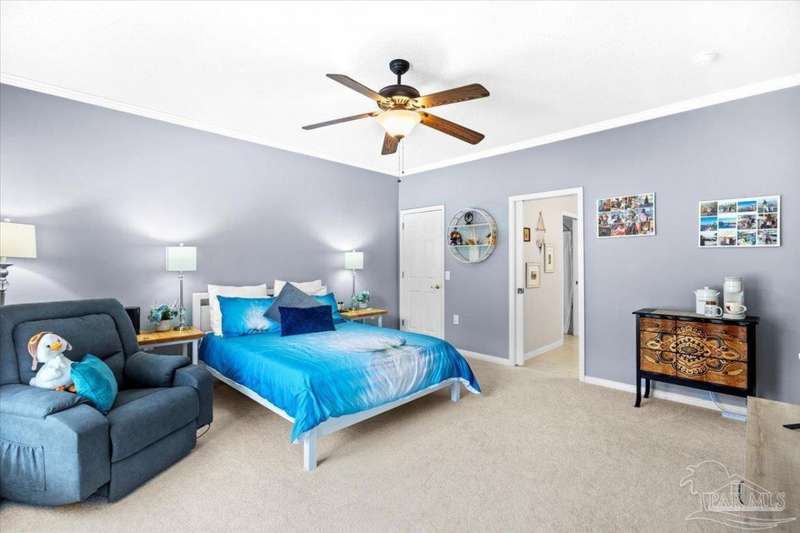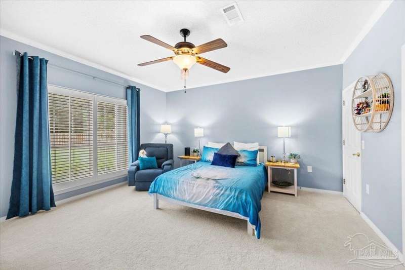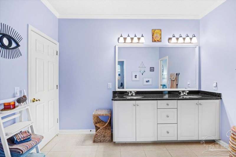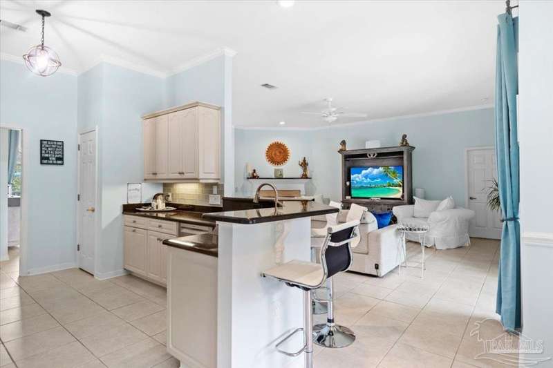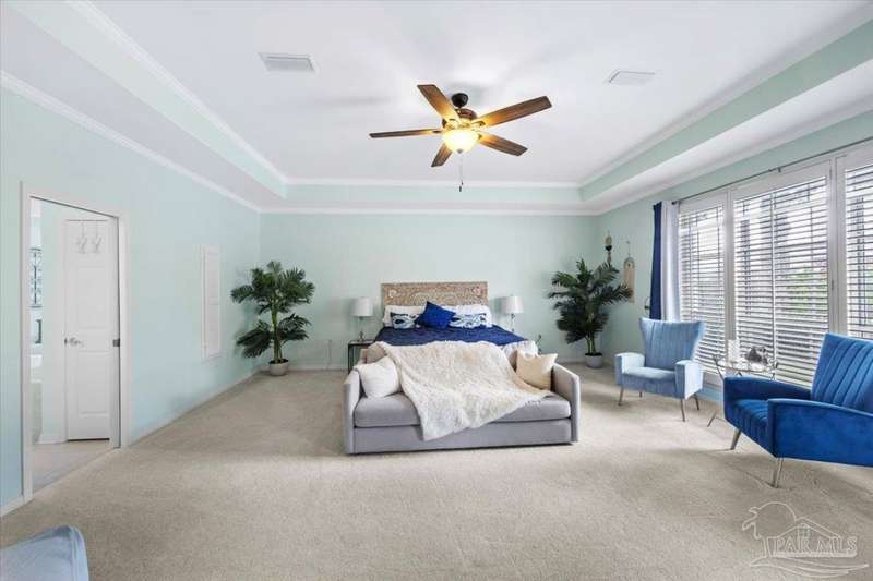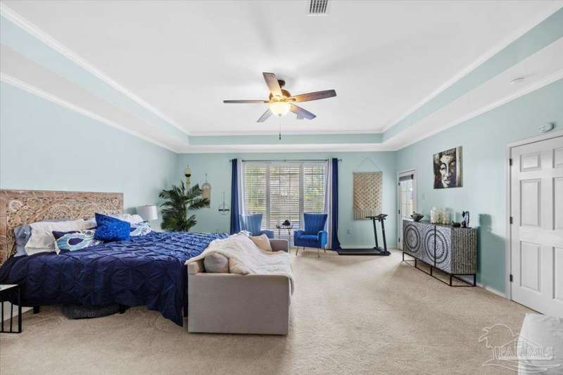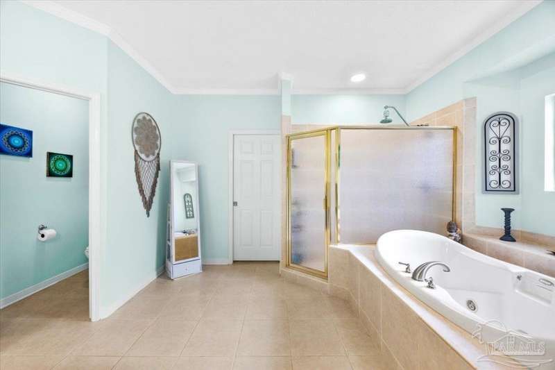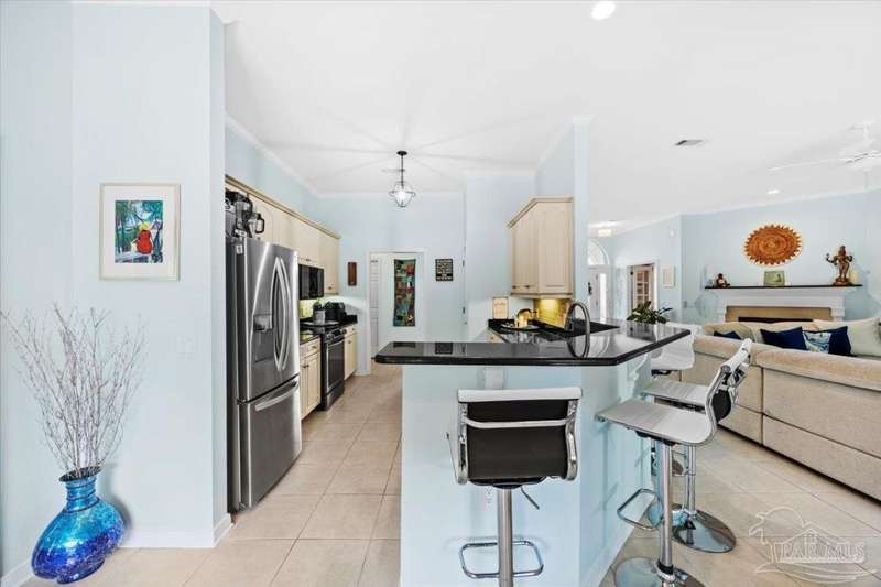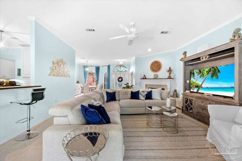 Open House Saturday and Sunday September 13th and 14th, 10AM-1 PM. Welcome to this impeccably maintained, custom brick home in desirable Grand Pointe-where indoor comfort meets outdoor paradise. Step into your private retreat featuring a fabulous backyard with a large sparkling pool, lush tropical landscaping, and a covered patio perfect for entertaining or relaxing year-round. This 3-bedroom, 2-bathroom home PLUS a DEDICATED OFFICE offers a versatile layout, including two spacious guest rooms connected by an oversized Hollywood-style bathroom-ideal for an in-law suite. The primary suite is a true sanctuary, with serene views of the pool and patio. There's ample space for a sitting area, treadmill, or exercise bike, plus a huge walk-in closet, oversized linen storage, jetted tub, separate shower, and private water closet. The open-concept living area flows seamlessly from the formal dining room into the spacious kitchen, with granite countertops and updated appliances, new dishwasher (2025). The home also features: whole-house generator, updated HVAC (2018), new roof (2020), new garage door (2025), new sliding doors to patio (2024), hurricane shutters including Storm Tex electric retractable sunscreen and hurricane screen (2023), new gutters (2024), new pool liner (2022), new irrigation pump (2024), well and sprinkler system, water heater (2016), transferrable termite protection plan. Flood insurance not required and the home has never flooded. With solid construction, thoughtful updates, and a show-stopping backyard, this home offers everything you need to move in and start living your best Florida lifestyle. Grand Pointe is a desirable neighborhood that boasts a community park, underground utilities and sidewalks. Great location only 5 miles to sugar white sands and emerald waters of Pensacola Beach. Zoned for TOP RATED SCHOOLS of Gulf Breeze Elementary, Middle and High School. Close to shopping, hospitals, restaurants, downtown Pensacola.