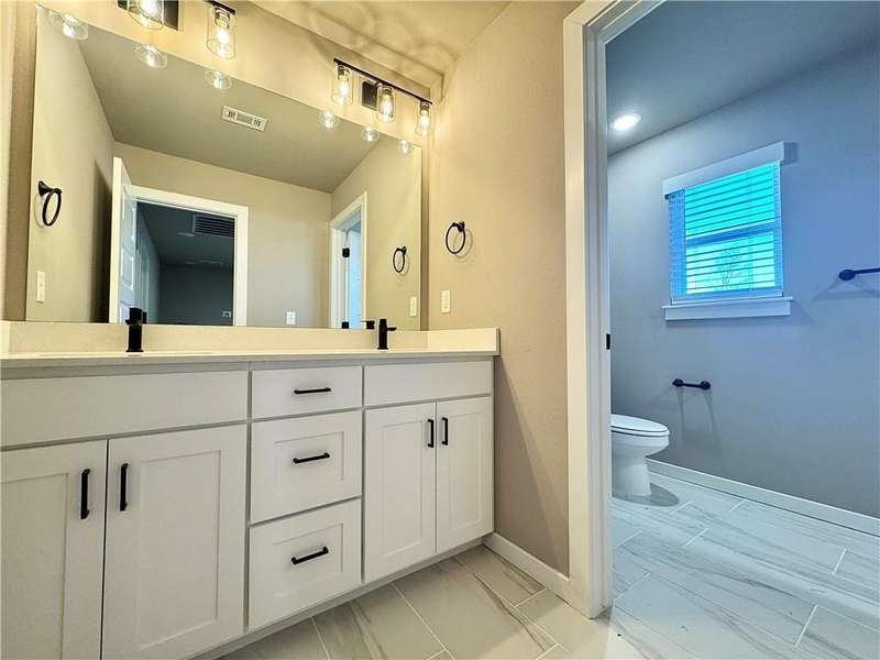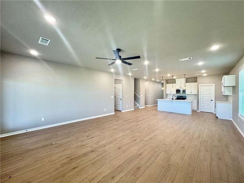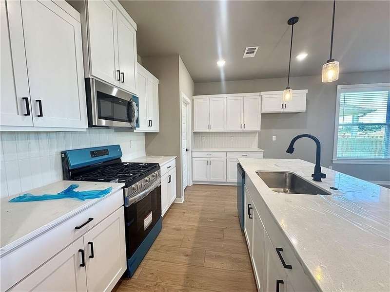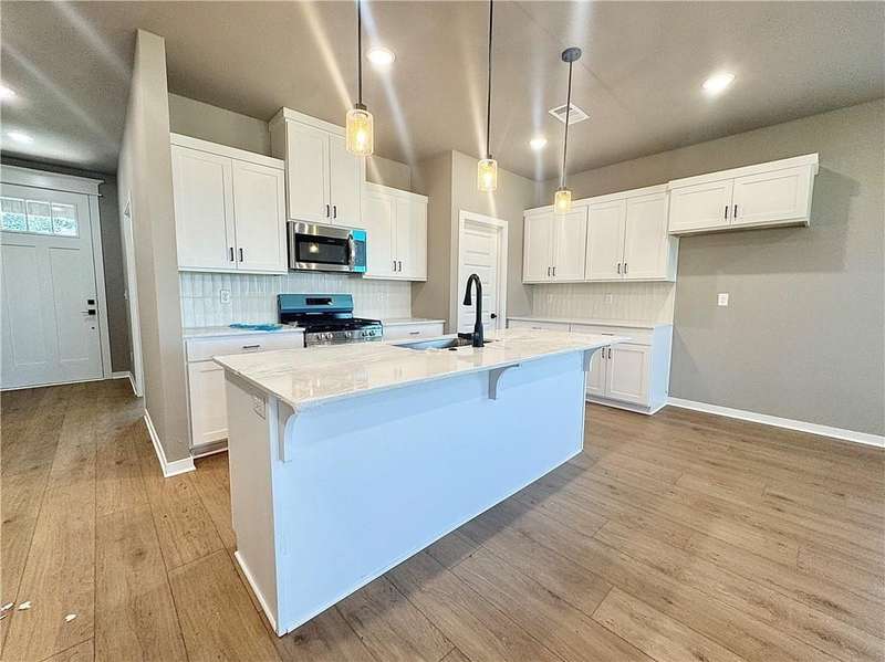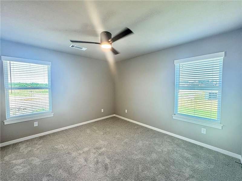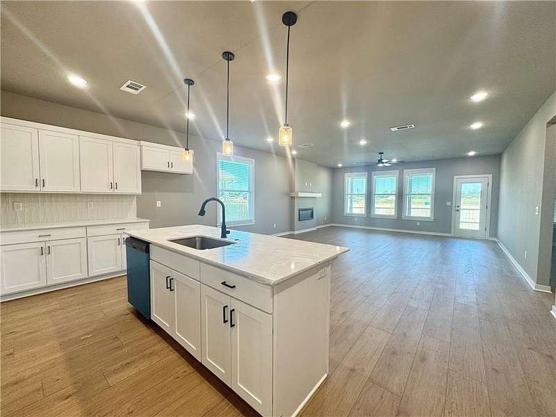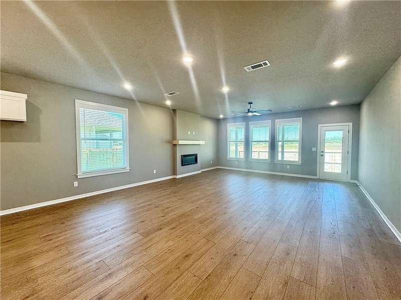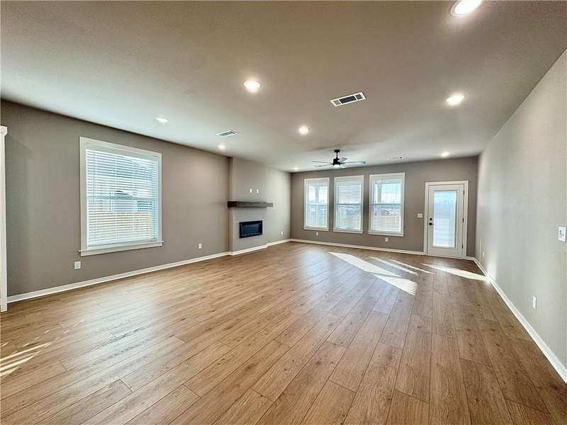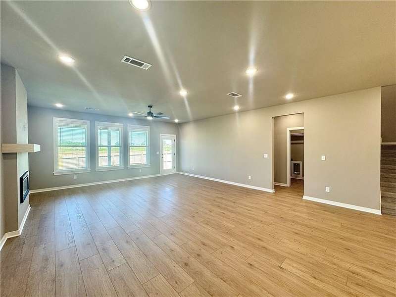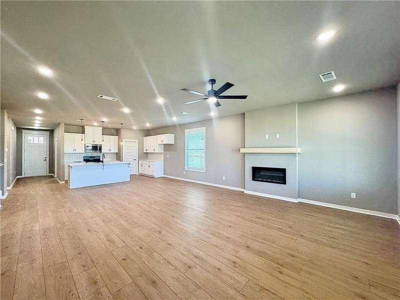 Fence, blinds and gutters included! Discover your dream home in the new neighborhood- Jacob's Crossing. Cooper plan with garage on the right & East facing! 9 ft ceilings, linear electric fireplace, LVP flooring throughout the main living areas & primary bedroom, quartz countertops & more. Chef's kitchen boasting frigidaire stainless steel appliances, gas range, pantry, quartz countertops, bar pull handles, large island and gorgeous backsplash. Luxurious primary bedroom features abundant natural light, while the spa-like primary bathroom offers a walk-in shower, tub, double sinks, and spacious walk-in closets. Additional features-secondary bedroom on the main level, 2 large secondary bedrooms upstairs and a functional laundry room. Nestled on a generous lot with covered patio that overlooks the serene sodded, fully fenced backyard, creating an exceptional living experience. Sturdy concrete siding! Model home located at 3631 Tranquility St- Lot 1.