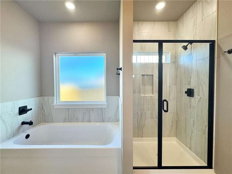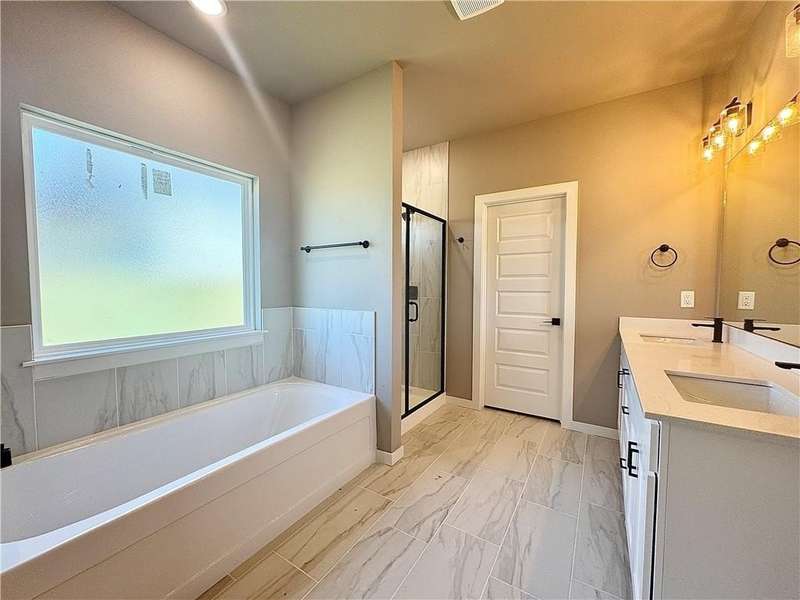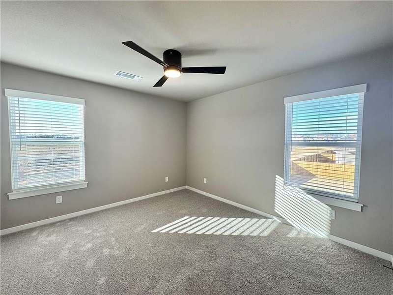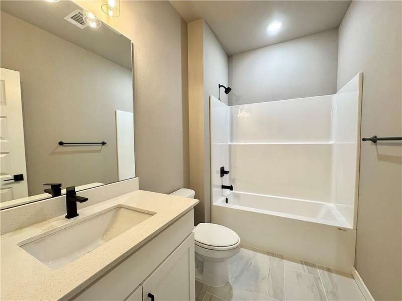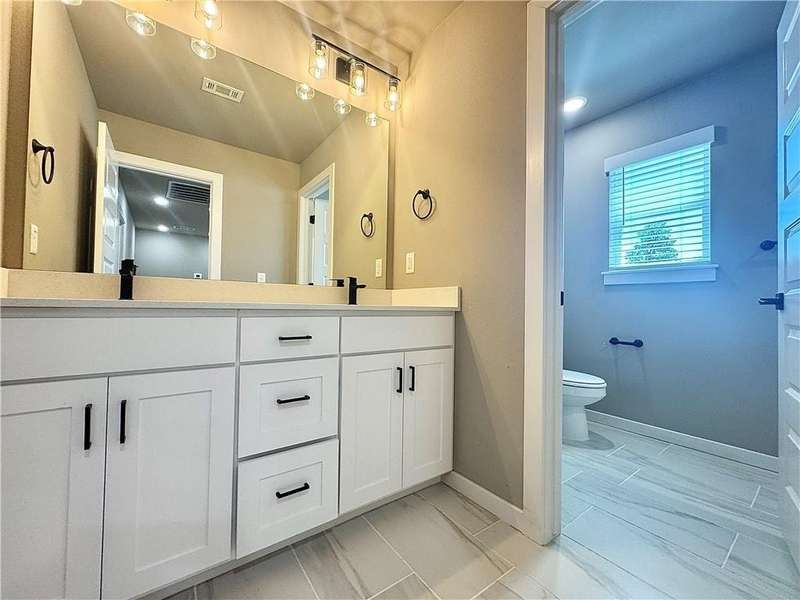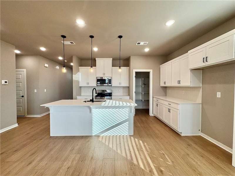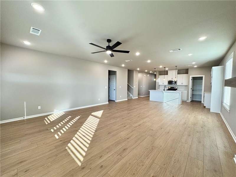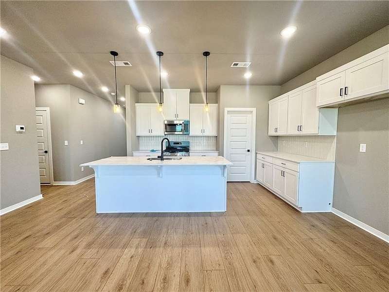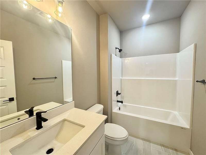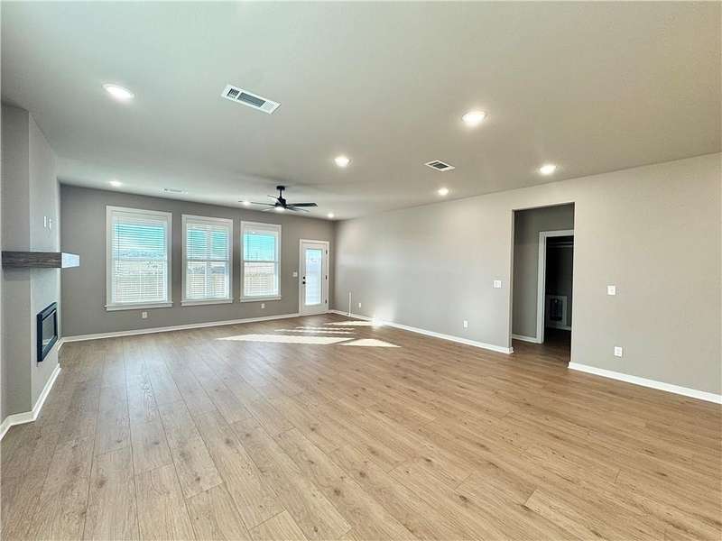 Fence, blinds and gutters included! Discover your dream home in the new neighborhood- Jacob's Crossing. Cooper plan with garage on the right & East facing! 9 ft ceilings, linear electric fireplace, LVP flooring throughout the main living areas & primary bedroom, quartz countertops & more. Chef's kitchen boasting frigidaire stainless steel appliances, gas range, pantry, quartz countertops, bar pull handles, large island and gorgeous backsplash. Luxurious primary bedroom features abundant natural light, while the spa-like primary bathroom offers a walk-in shower, tub, double sinks, and spacious walk-in closets. Additional features-secondary bedroom on the main level, 2 large secondary bedrooms upstairs and a functional laundry room. Nestled on a generous lot with covered patio that overlooks the serene sodded, fully fenced backyard, creating an exceptional living experience. Sturdy concrete siding! Model home located at 3631 Tranquility St- Lot 1.