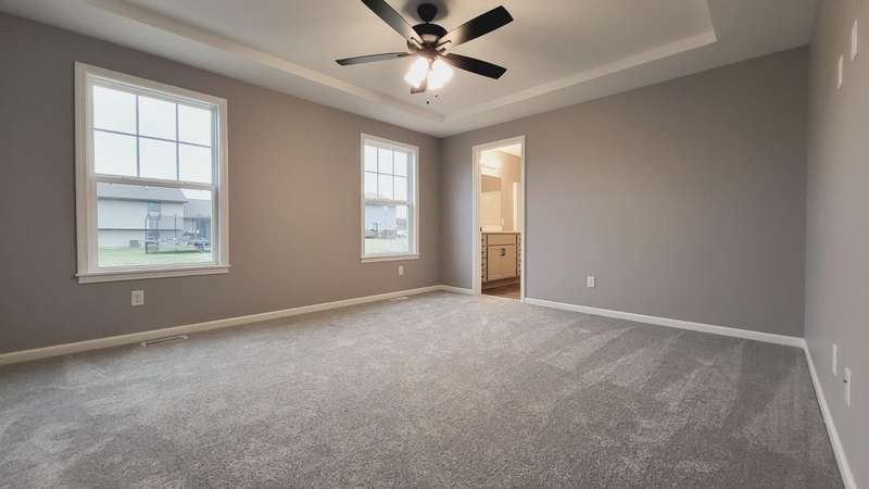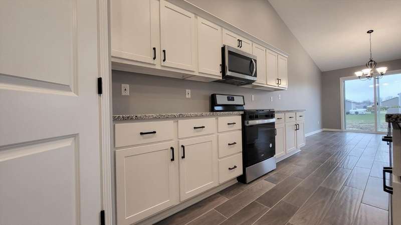 NOT YET BUILT, this is our JEFFERSON model, an open concept ranch home. Features include FOUR BEDROOMS, an open concept living area, great room with cathedral ceiling, spacious dining area, large kitchen with granite, center island, soft close cabinetry, pantry, plus stainless dishwasher and microwave, main bedroom with private bath, tray ceiling, and walk-in closet, two additional bedrooms, one flex room (4th bedroom or office), and separate laundry/mud room. Exterior features include a tasteful board and batten vinyl siding finish, covered porch, concrete drive, sidewalk and walks, and attached garage with opener installed. This home includes a full LANDSCAPING package and BUILDER WARRANTY! Many options for customization of our 18 floor plans are possible to include structural changes such as a 3 car garage, 5' garage extension, slab, or basement options, as well as for other finishes such as for a fireplace, custom tile shower, exterior masonry, etc. Photos are of a previously built home.