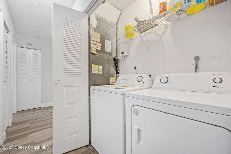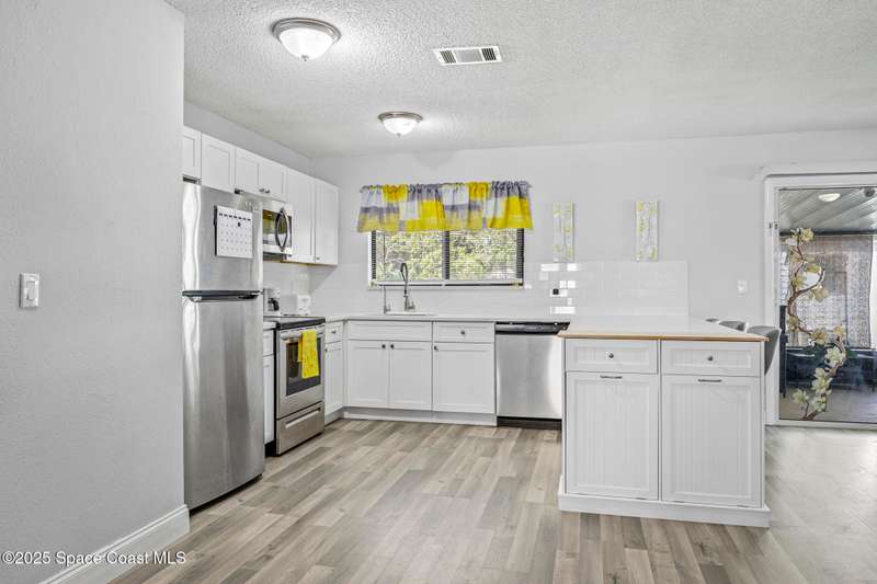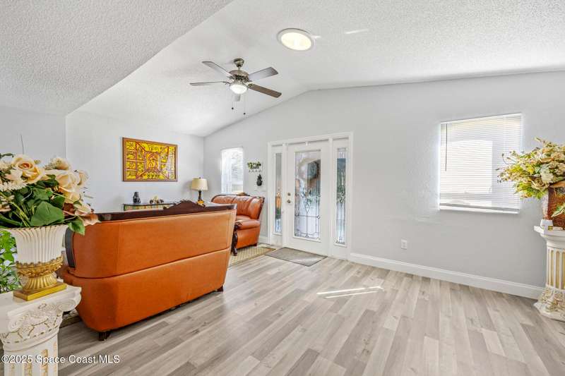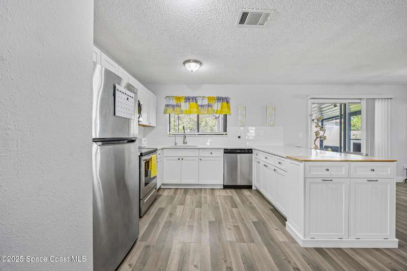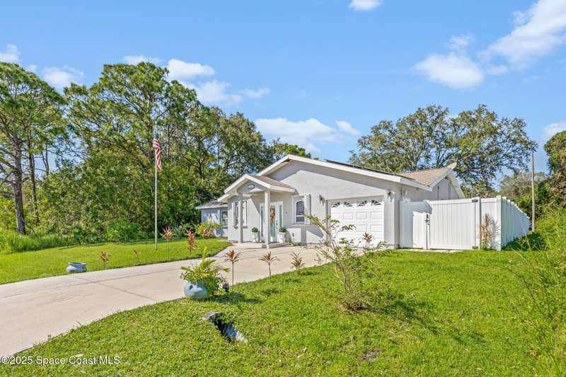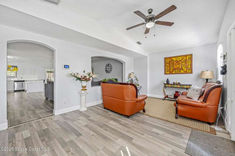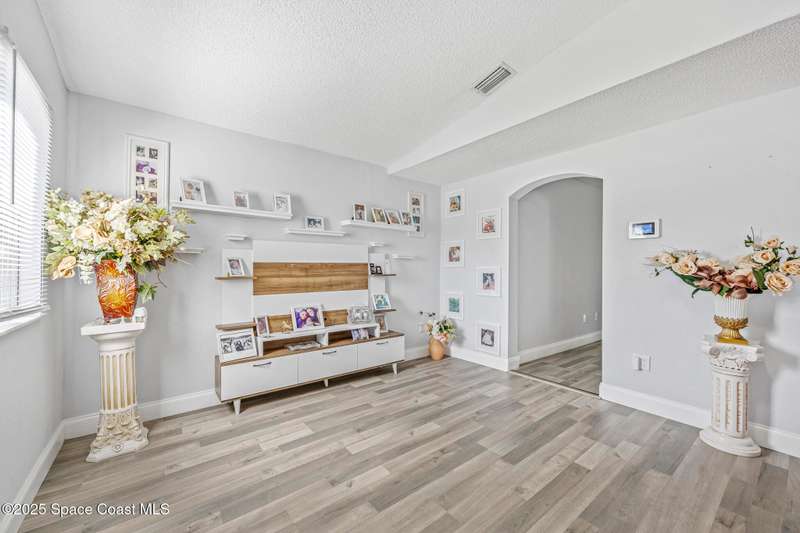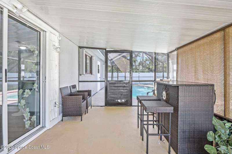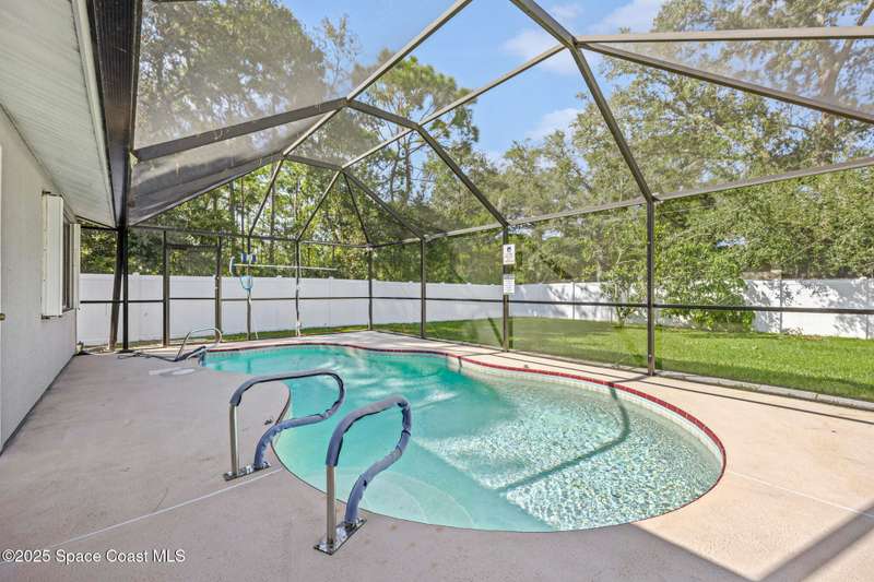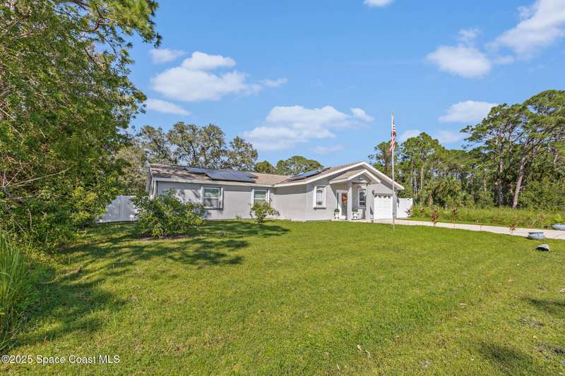 Beautiful home packed w/ upgrades and a newly replaced roof (10/2024)! Inside, enjoy vinyl flooring, modern fixtures, and a versatile bonus room. The kitchen features quartz countertops, soft-close shaker cabinets, subway tile backsplash, and stainless steel Frigidaire appliances (2022). Both bathrooms have updated vanities and fixtures. Additional features include a washer/dryer, water treatment system (2022), security system, and solar panels (2022). Outside, relax by the screened pool and covered lanai surrounded by manicured landscaping and a white vinyl fence (2022). Hurricane shutters, a storage shed, and a replaced pool pump (2023) add even more value. Located on a quiet street with no HOA, close to schools, shopping, and beachesthis home offers the perfect blend of comfort, efficiency, and Florida lifestyle.