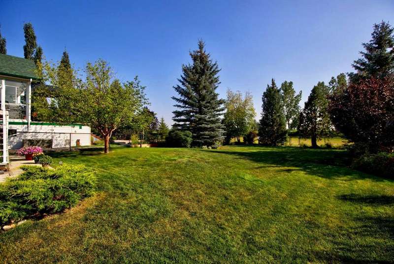 Discover refined living in this exceptional custom-built home, perfectly positioned on a sprawling lot with panoramic views of the Strathmore Golf Course. Thoughtfully designed with over 2,500 sq ft above grade and a fully developed walk-out basement, this home seamlessly blends sophistication, comfort, and practicality—ideal for both everyday living and elegant entertaining. Step inside to a breathtaking main floor where full-height vaulted ceilings and expansive windows draw in natural light and showcase the serene outdoor views. The open-concept living space is anchored by a striking rock-faced gas fireplace, while rich maple hardwood flooring and 9-foot ceilings add a touch of timeless elegance. The chef-inspired kitchen is both functional and beautiful, featuring custom maple cabinetry, a large center island with a prep sink, premium gas stove, a brand new Bosch dishwasher, and a spacious walk-in pantry. Adjacent to the kitchen, a bright breakfast nook leads to a large deck complete with a charming gazebo—an inviting space to unwind or entertain, all while overlooking the lush backyard and fairway beyond. Smart design continues throughout with main floor laundry, including a convenient laundry chute from the second floor, and abundant storage to keep your home organized with ease. Upstairs, retreat to a private primary suite boasting vaulted ceilings, a cozy sitting area with golf course views, a luxurious 5-piece ensuite, and a generous walk-in closet. Two additional bedrooms provide ample space for family or guests. The fully finished walk-out basement adds versatility with a spacious fourth bedroom, large recreation and media areas, and even more storage. Outside, the landscaped yard offers underground sprinklers, mature plantings, and plenty of space for kids, pets, or a garden oasis. To top it all off, this home is located within walking distance to the local public junior and senior high school—an unbeatable location for growing families. With brand new roof shingles and every detail meticulously maintained, this home is the total package: custom craftsmanship, an enviable setting, and thoughtful features throughout. Come experience it for yourself. Call your AWESOME REALTOR today!