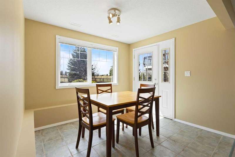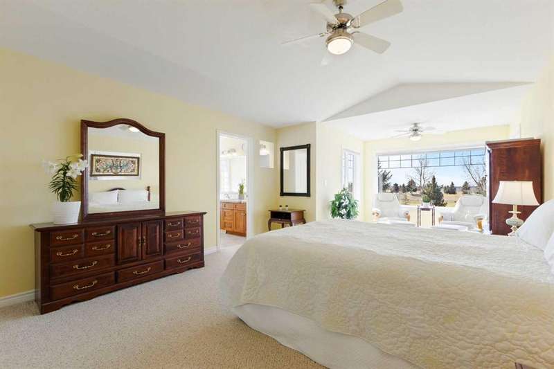 Discover refined living in this exceptional custom-built home, perfectly positioned on a sprawling lot with panoramic views of the Strathmore Golf Course. Thoughtfully designed with over 2,500 sq ft above grade and a fully developed walk-out basement, this home seamlessly blends sophistication, comfort, and practicality—ideal for both everyday living and elegant entertaining. Step inside to a breathtaking main floor where full-height vaulted ceilings and expansive windows draw in natural light and showcase the serene outdoor views. The open-concept living space is anchored by a striking rock-faced gas fireplace, while rich maple hardwood flooring and 9-foot ceilings add a touch of timeless elegance. The chef-inspired kitchen is both functional and beautiful, featuring custom maple cabinetry, a large center island with a prep sink, premium gas stove, a brand new Bosch dishwasher, and a spacious walk-in pantry. Adjacent to the kitchen, a bright breakfast nook leads to a large deck complete with a charming gazebo—an inviting space to unwind or entertain, all while overlooking the lush backyard and fairway beyond. Smart design continues throughout with main floor laundry, including a convenient laundry chute from the second floor, and abundant storage to keep your home organized with ease. Upstairs, retreat to a private primary suite boasting vaulted ceilings, a cozy sitting area with golf course views, a luxurious 5-piece ensuite, and a generous walk-in closet. Two additional bedrooms provide ample space for family or guests. The fully finished walk-out basement adds versatility with a spacious fourth bedroom, large recreation and media areas, and even more storage. Outside, the landscaped yard offers underground sprinklers, mature plantings, and plenty of space for kids, pets, or a garden oasis. To top it all off, this home is located within walking distance to the local public junior and senior high school—an unbeatable location for growing families. With brand new roof shingles and every detail meticulously maintained, this home is the total package: custom craftsmanship, an enviable setting, and thoughtful features throughout. Come experience it for yourself. Call your AWESOME REALTOR today!