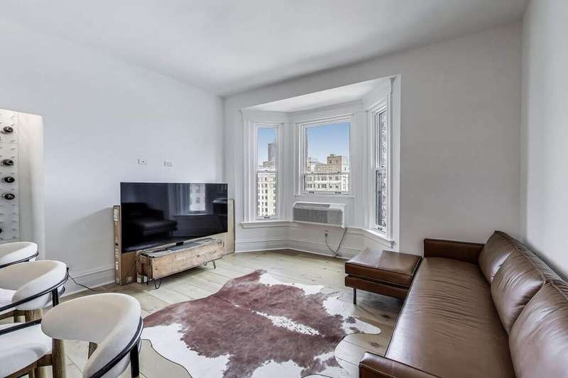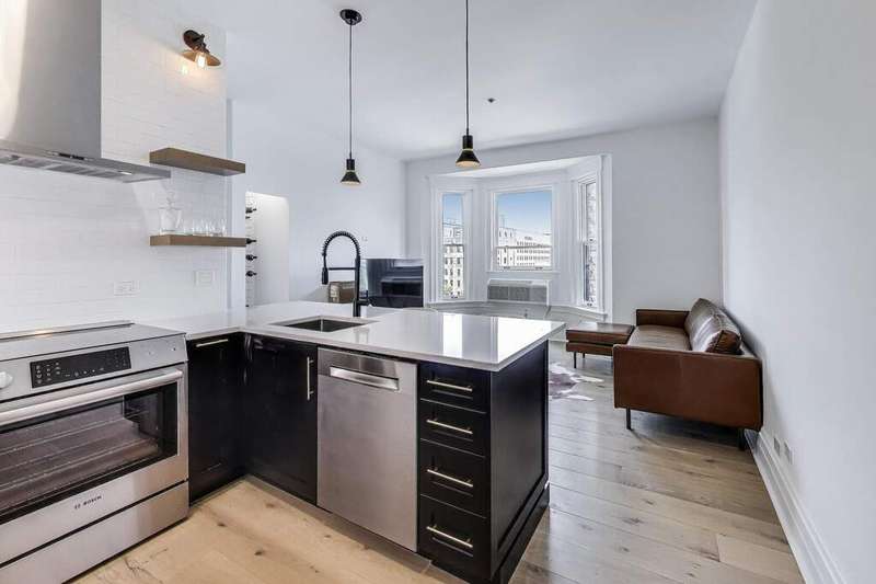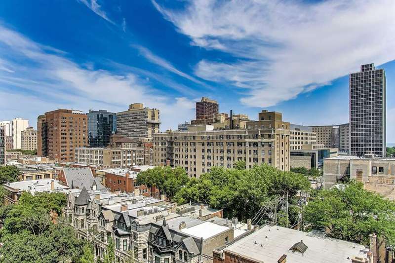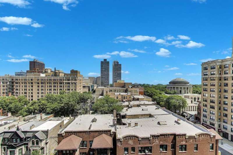 Iconic Landmark Living in Lake View East - Perched on the top floor of the historic Brewster Building, this completely remodeled 2-bedroom, 1-bath condo blends timeless charm with sophisticated modern updates. Soaring 10-foot ceilings and sunny eastern exposure fill the space with natural light, offering glimpses of Lake Michigan and surrounding architectural treasures. The stunning open-concept kitchen is a showstopper-featuring a full Bosch appliance suite, Quartz Calacatta Montage countertops, Studio41 Omega custom cabinetry, undermount lighting, and a vented hood/range. The spa-like bath has been reimagined with a floating frameless glass shower panel, floor-to-ceiling subway tile, striking ebony hexagonal floor tile, Kohler fixtures, and a new modern vanity and toilet. Other notable upgrades include: All-new plumbing and electrical, Wide-plank light oak flooring with soundproof underlayment, New Pella windows, Tankless hot water heater. This unique residence is housed within one of Chicago's most architecturally significant buildings, featuring a stately rusticated stone and terra cotta facade, stunning internal iron staircases, a European-style cage elevator, glass-block catwalks, common laundry facilities, bike room, storage, and on-site management with door staff. Located in vibrant Lake View East, you're just steps from shopping, dining, entertainment, public transit, and the lakefront. Don't miss your chance to own a piece of Chicago history with all the comforts of modern living.