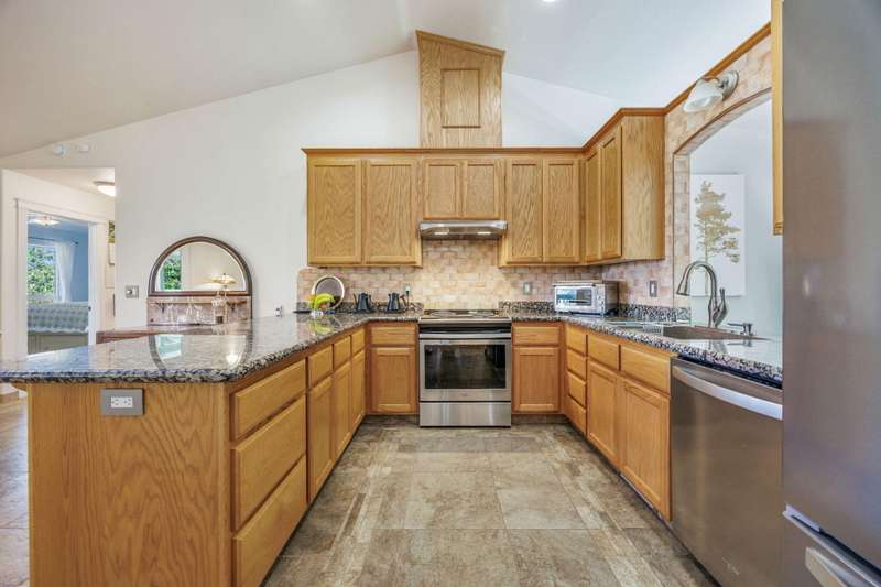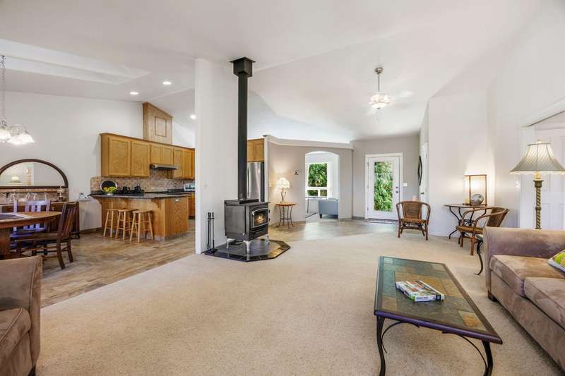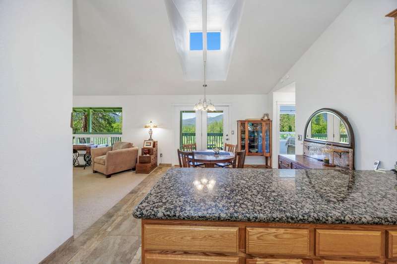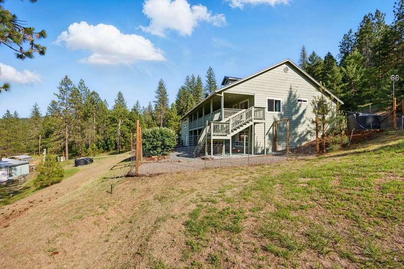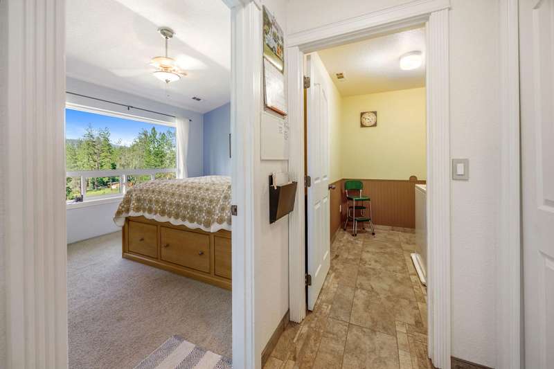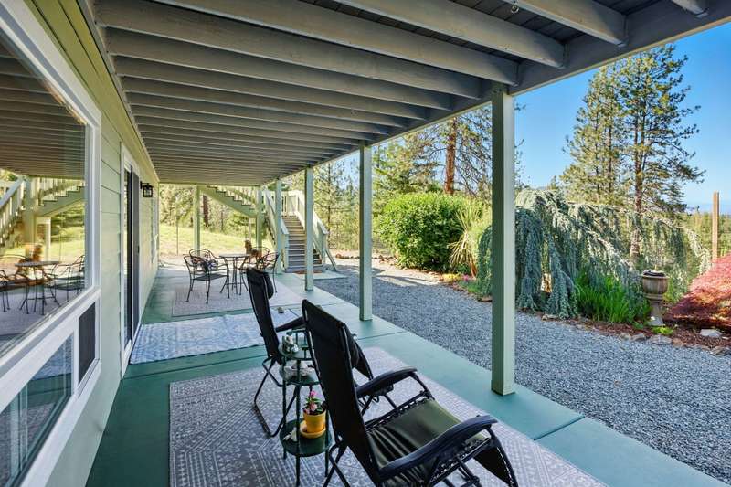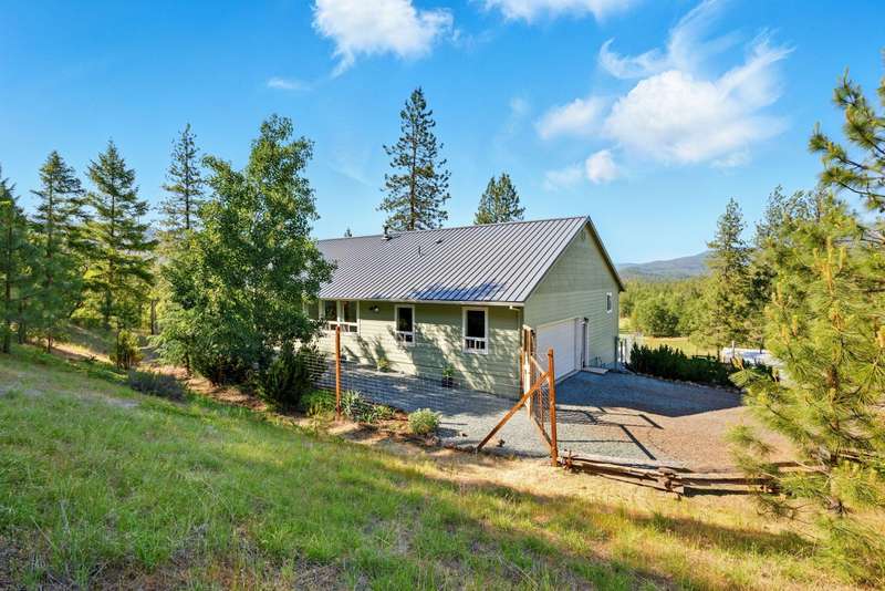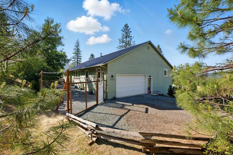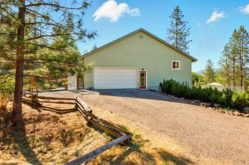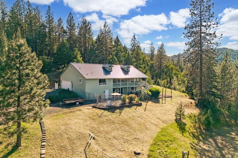 Welcome to your peaceful oasis, just minutes from town on a private 40-acre property. This serene retreat offers stunning 180-degree views, a two-family setup, a garden, a rainwater capture system, and marketable timber—just to name a few highlights. The spacious, updated home features breathtaking views from every room, thanks to large picture windows. On the main level, you'll find everything you need: bedrooms, living spaces, kitchen, laundry, and a full-length covered deck. The daylight basement includes a large family room, office (easily converted to a fourth bedroom), a full bathroom, and exterior access to another covered patio. New water heater, new gravity flow septic, French drain, and fire brake around home. Central Point School District.