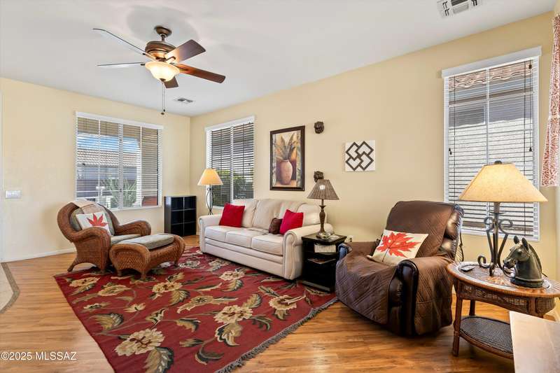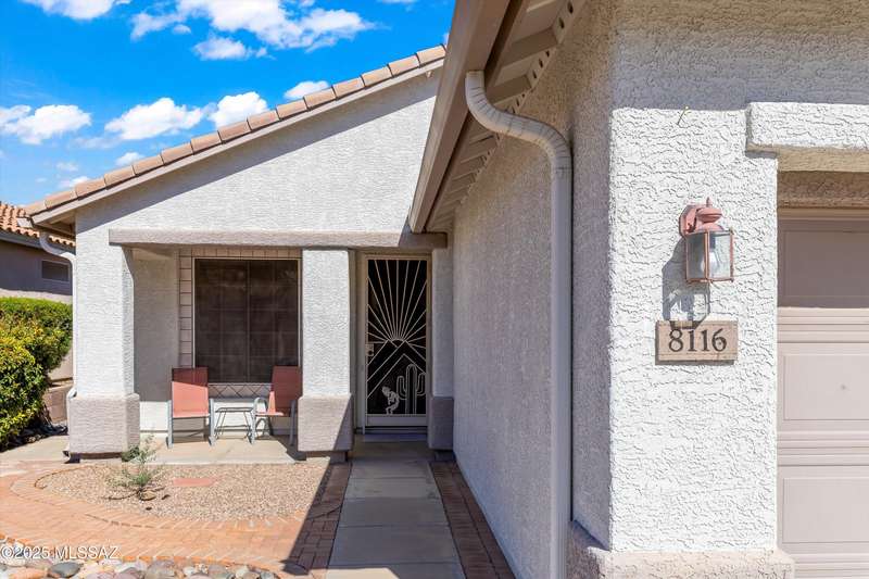 Welcome to this warm and inviting Sunrise floor plan home, offering 1114 sq ft with two bedrooms and two baths. A private entry patio greets you and leads intern into an open living area that flows seamlessly to a breakfast nook and efficient kitchen which overlooks the peaceful back patio..The primary suite is nestled at the rear of the home and features a walk-in closet and a step in shower in its private en-suite. The guest bedroom, currently used as an office is located near a guest bath and just off the two car garage. Outside, the covered rear patio and garden area create a perfect for relaxing or enjoying a quiet moment. Home was re-roofed in 2024 and HVAC 2019. Come by today and discover the charm for yourself.
