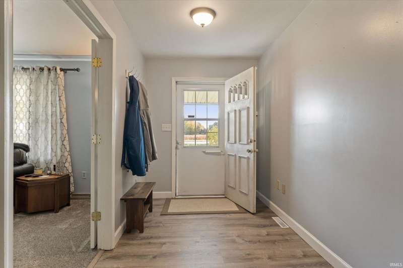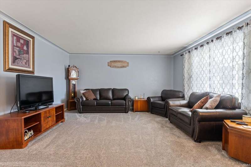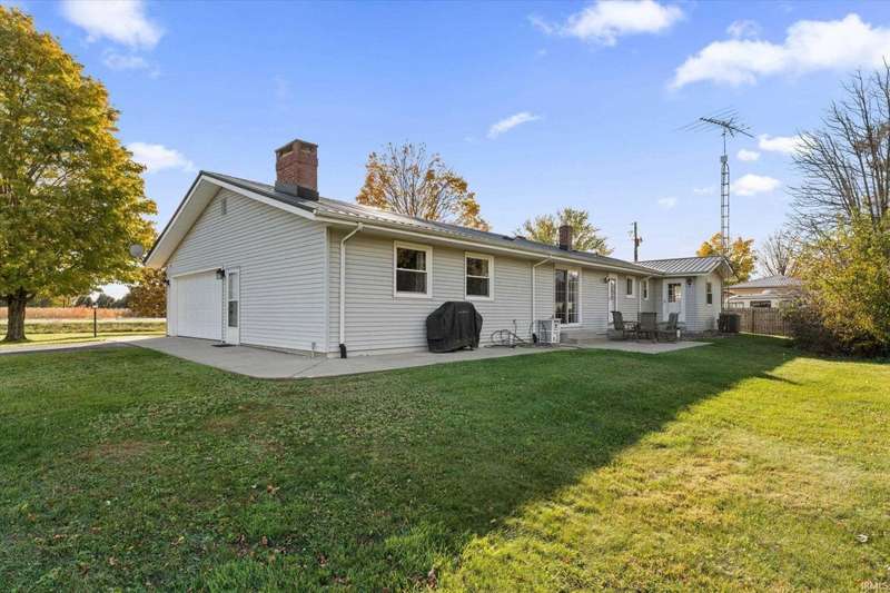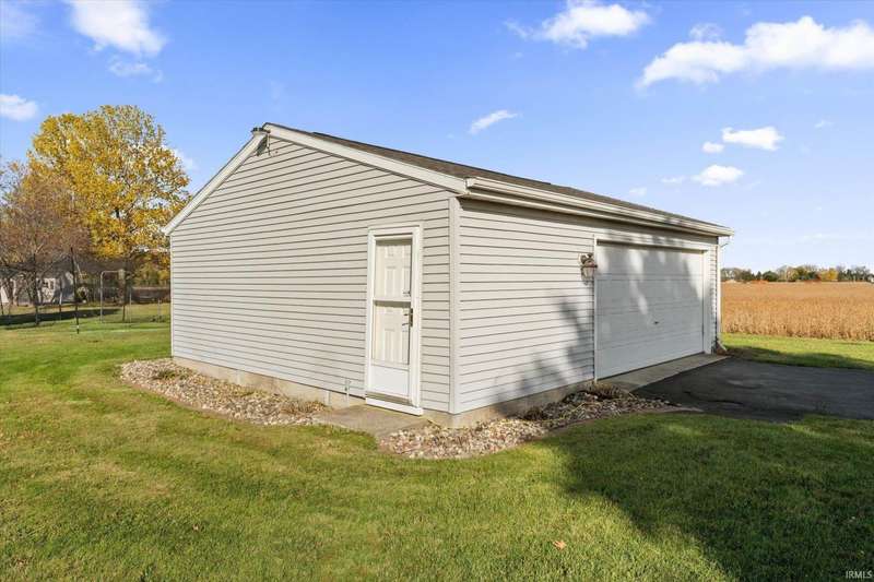 Wonderful opportunity for a little slice of your own heaven in popular New Prairie Schools, this sprawling ranch features large bedrooms and loads of closets, spacious laundry room, updated flooring (carpet and LVP) and paint, new metal roof with the heavier metal (2022), furnace (2023), AC (2016), water heater (2021). Back room could be used as a workout room (as owners use it), office or 4th bedroom, you decide. Attached garage has a half bath in it to make it easier for when you are outside playing in the yard. Detached garage is perfect for man cave, extra storage or whatever your heart desires. 2 other sheds on property are currently being used for chickens (which can stay or be re-homed depending on what buyer wants.) Kitchen and laundry appliances remain for benefit of buyer along with the garage fridge. Seller reserves garage chest freezers. This is a No Shoe and Non-pet house and is super clean and well maintained.