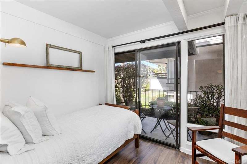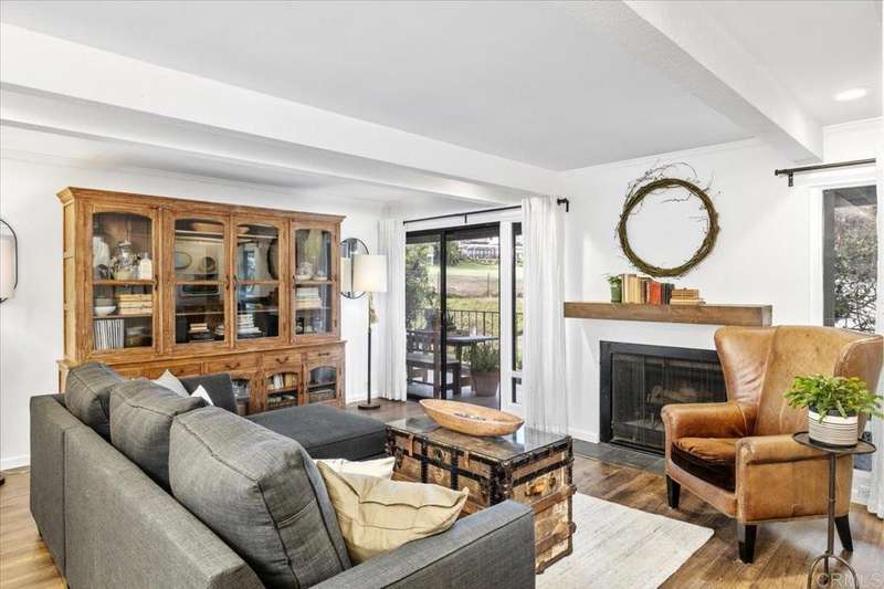 Showing as a 2-bedroom, this rare single-level, turn-key end unit could be yours. Perfectly located in the heart of La Costa-just minutes from the beach-this home overlooks the 3rd hole of the Omni La Costa Golf Course with gorgeous, uninterrupted views. Every inch of this open-concept retreat has been thoughtfully upgraded and is truly move-in ready: luxury vinyl plank flooring, Carrera marble countertops in the kitchen, Carrera marble floors in both bathrooms, and added storage throughout set the tone for elevated living. The living room is anchored by a wood-burning fireplace. With western exposure, the home is filled with immense natural light, while three sets of sliding doors open to an expansive, private patio, creating the perfect backdrop for quiet mornings or sunset toasts. The stunning kitchen with stainless steel appliances and a farmhouse sink is designed for both barefoot baking and intimate dinner parties. The primary bedroom features two custom built-in closets, while the en-suite includes an oversized dressing area, traditional closet, a secondary closet, and in-unit laundry. In addition to the office nook a 2nd room added as a bedroom could be your next big idea - library, studio, meditation space you decide. Upgraded doors, trim, hardware, lighting fixtures, ceiling fan, custom mantle and HVAC to boot. Two designated spaces, community pool, jacuzzi, and sauna - boutique shops, and restaurants around the corner. Translation: beach walks, great schools, swims, spritzes, and sourdough starters are all within your orbit. If you're already picturing yourself here...yeah, so is everyone else.