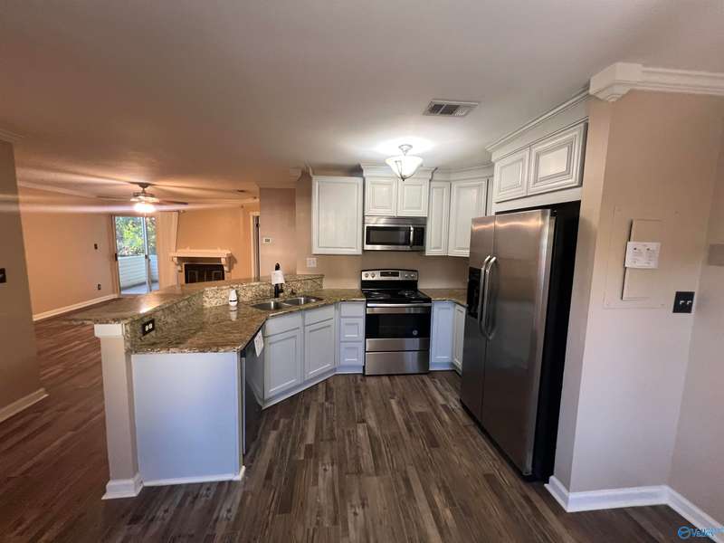 Spacious downstairs end unit in Stepping Stone Condo Community featuring an open floor plan, a spacious dining area, and a cozy great room with a fireplace. This two-bedroom, two-bathroom unit includes a breakfast bar and a covered back patio. Enjoy easy access to Mid-City and Orion Amphitheater, as well as the convenience of being close to downtown Huntsville and Madison City. With a seamless commute to Redstone Arsenal and Research Park, this location offers both comfort and practicality for a relaxed lifestyle. Call today to view this charming Condo before you miss this opportunity.