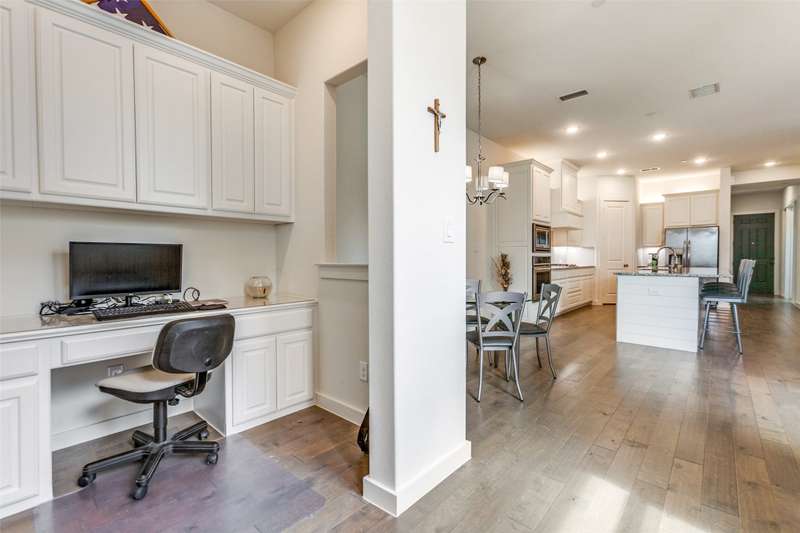 Looking for a low-maintenance lifestyle? This is a Rare CornerTownhome in the Heart of Allen. Walking distance to Watters Creek Village offering shopping, eating, and walking trails to enjoy! This townhome is unique with 3 full beds, 2 flex spaces, and a dedicated office desk. The HOA takes care of front yard watering and maintenance, the roof, and exterior structure, leaving you free to simply enjoy your beautiful home. Inside, the stunning kitchen features stainless steel appliances, an oversized island, and a spacious walk-in pantry. The open living concept is perfect for entertaining, while large windows fill the home with natural light. The primary suite offers a serene retreat with a sitting area and a walk-in shower. Step outside to the back porch, an ideal spot to relax and unwind in peace and quiet. Don't forget how close it is to the Villages at Allen with Top Golf and much more!