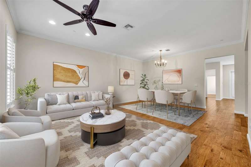 Under contract-accepting backup offers. Just listed in the highly sought-after Baldwin Park community — this stunning townhouse features the largest floor plan in the neighborhood with a rare first-floor primary suite. Ideally located just a short walk from the village center, you'll have convenient access to dining, shopping, and entertainment. The neighborhood offers resort-style amenities including three pools, two fitness centers, resident clubrooms, and year-round events like the popular Fourth of July fireworks over Lake Baldwin. Inside, the home features soaring ceilings, an open-concept layout, a private courtyard perfect for entertaining, and a spacious loft upstairs for additional living space. The two-car garage includes a 220-volt outlet for electric vehicle charging, and the home offers two large attics with extended flooring—one of which includes a portion under A/C for climate-controlled storage. This move-in-ready home is a rare find and one of the most desirable layouts in Baldwin Park. Don’t miss your chance to make it yours