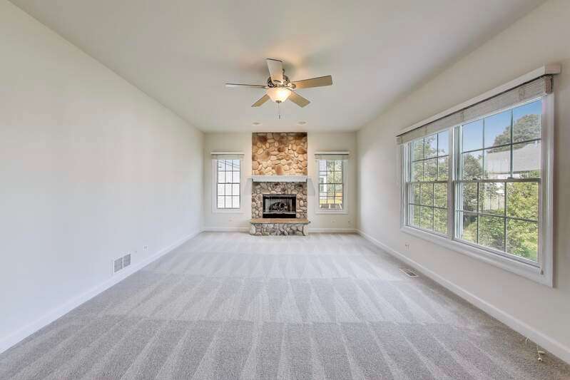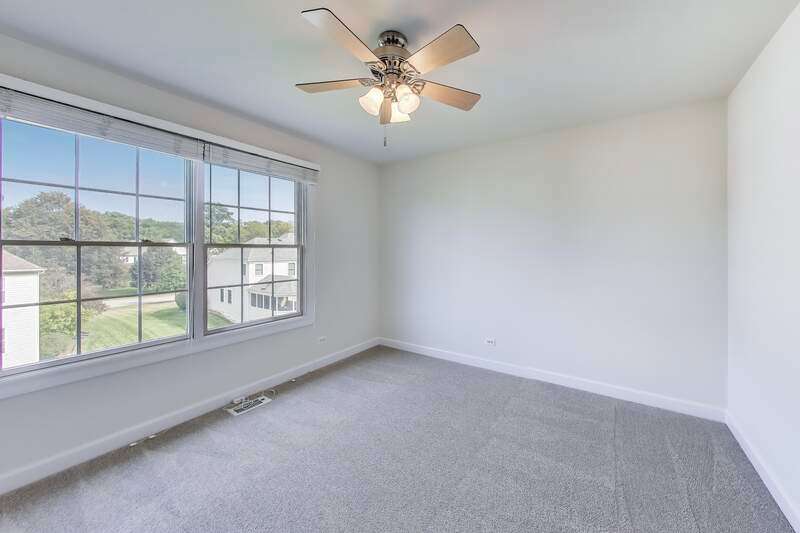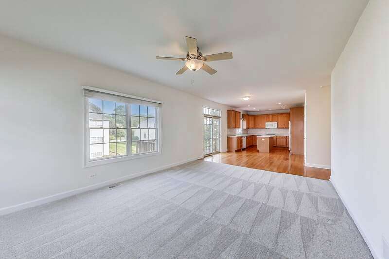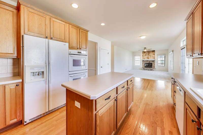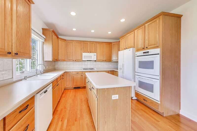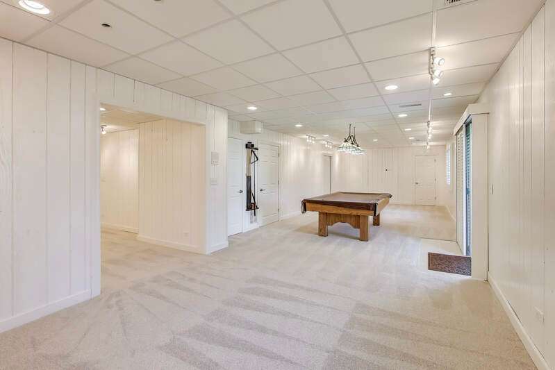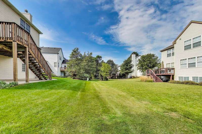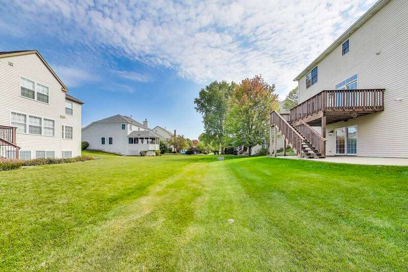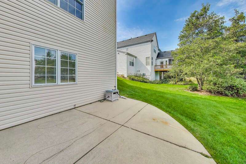 Beautifully maintained 2-story home featuring 4 spacious bedrooms, 2 full bathrooms, and 2 half bathrooms. This inviting home offers an open floor plan ideal for both everyday living and entertaining. The gourmet kitchen boasts a large island, newer Bosch dishwasher and microwave, recessed lighting, custom backsplash, and hardwood floors. A sliding glass door leads to a huge deck-perfect for outdoor gatherings. The adjacent family room showcases a stunning floor-to-ceiling stone gas fireplace, while the vaulted living room is enhanced by plantation shutters. A separate formal dining room with crown molding and hardwood floors adds an elegant touch. Additional main level highlights include a first-floor office or den and a convenient first-floor laundry room. Upstairs, the spacious primary suite features a luxury bath and a walk-in closet with custom built-ins. Bedrooms 2, 3, and 4 offer generous space and share a beautifully updated hall bath with a dual vanity, new tub/shower, and ceramic tile flooring. The finished walkout basement provides even more living space with a large rec room (pool table included), an additional office or den, a half bath, and built-in storage. The utility area offers extra space for a workbench and additional storage possibilities. A second sliding glass door opens to an oversized patio and great backyard-perfect for relaxing and entertaining. The 3-car finished garage includes a pegboard wall for organization and attic access. The stand-up attic space offers abundant storage possibilities, making it a practical and versatile bonus. This home is loaded with updates, including brand new carpet throughout, fresh neutral paint, and major mechanicals all replaced in 2022-furnace, central air, and hot water heater. Located in a desirable area with award-winning schools and close to shopping, dining, and parks, this home truly has it all!