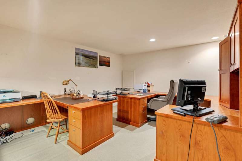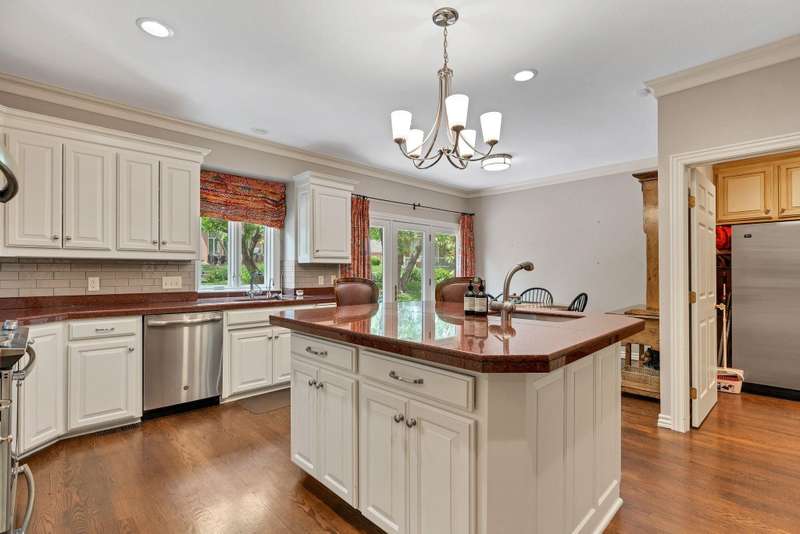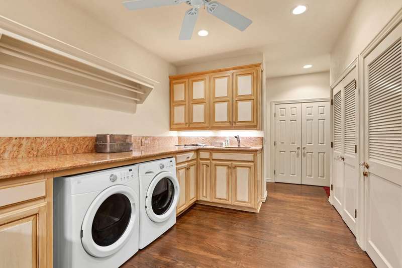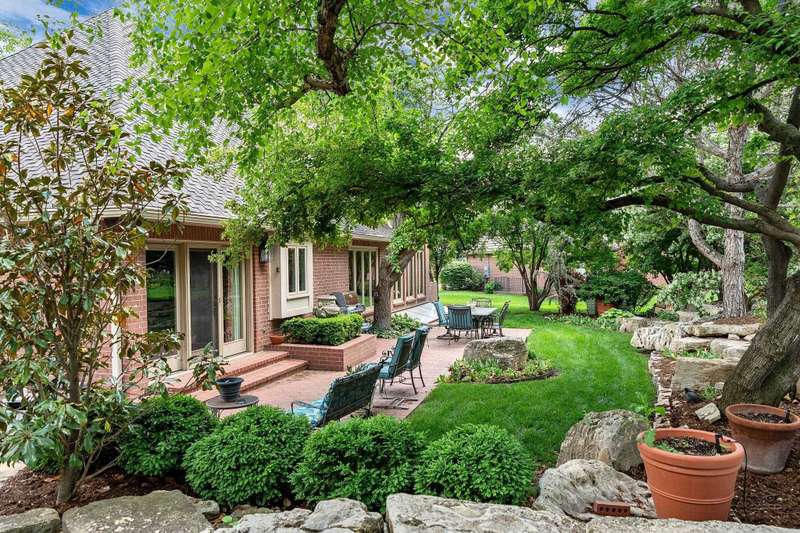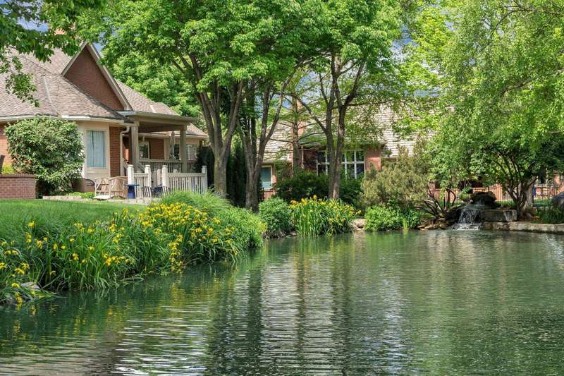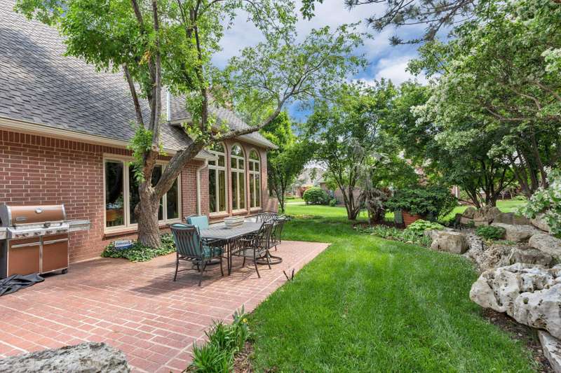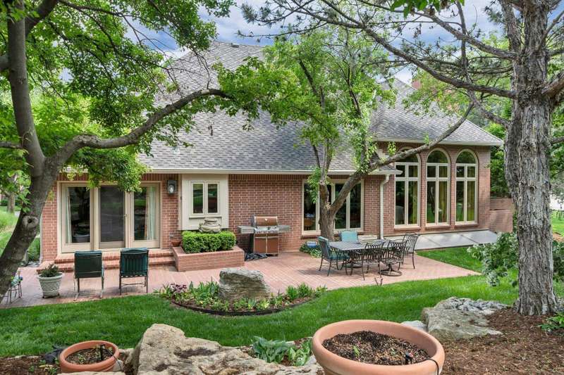 Welcome to 9215 E. Killarneya stunning patio home perfectly situated on a beautiful corner lot with a brand new composite roof, private courtyard and serene water views. From the moment you step inside, youll be greeted by elegancesoaring arched windows with custom privacy shades, a warm fireplace with granite surround, and built-ins that make the living room both inviting and sophisticated. Designed for entertaining, the home offers both formal and informal dining spaces, plus a chef-inspired granite kitchen boasting an abundance of cabinetry with pull-out shelving, under-cabinet lighting, center island with breakfast bar, tile backsplash, hardwood floors, pantry with pull-outs, and a butlers pantry with ice maker, granite counters, and extensive storage. The main floor laundry room is a dream in itselfoversized at 14x10 with hardwood flooring, granite counters, built-in sink, cabinets with pull-out shelving, ironing board, and multiple closets for organization. Retreat to the luxurious master suite, where hardwood floors, plantation shutters, crown molding, recessed lighting, and a private patio entrance create a peaceful escape. The spa-like bath features dual vanities, granite countertops, oversized tile shower with dual shower heads, soaker tub, and a large walk-in closet with built-ins and a charming window seat. The finished basement expands your living options with a spacious rec room, built-ins, wet bar, daylight windows, cedar closet, bonus office or hobby room, two additional bedrooms, exercise room, and plenty of storage with shelving. Step outside to enjoy your private patio overlooking the commons area and pondperfect for morning coffee or evening relaxation. This move-in ready masterpiece truly combines style, comfort, and convenience in one exceptional package!