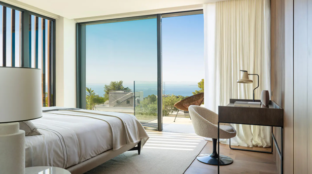 Experience elevated Mediterranean living in this newly constructed luxury villa, boasting panoramic sea views stretching from Palma to Palmanova. Located in the prestigious residential enclave of Portals Nous, this property seamlessly blends sophisticated design with exceptional comfort, ideal for year-round living or as a refined second home.Upon entry, the villa welcomes you with an expansive open-plan layout, featuring a designer kitchen with a large island, elegant dining area, and spacious living room. Floor-to-ceiling windows invite natural light and provide direct access to covered and open terraces, perfect for entertaining or relaxing beside the saltwater pool. A striking double-sided fireplace creates a warm ambiance for both the interior living space and the outdoor dining terrace.Upstairs, four generous bedroom suites include a luxurious master with its own fireplace. Three bedrooms enjoy sweeping sea views and open onto private terraces. The lower level offers secure g