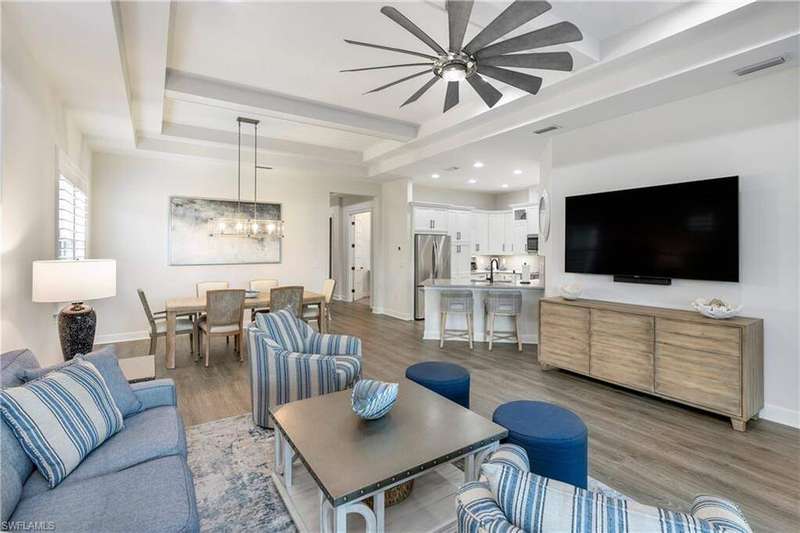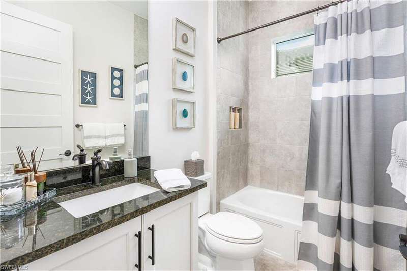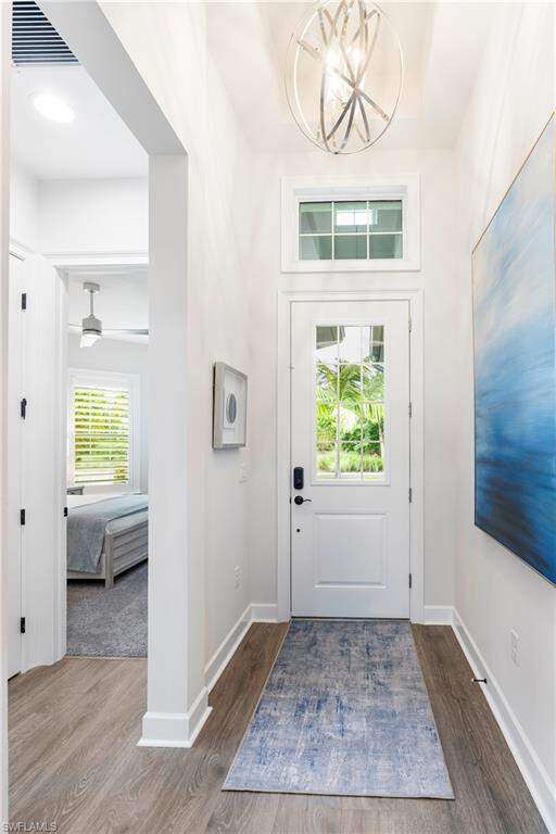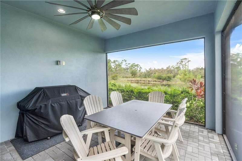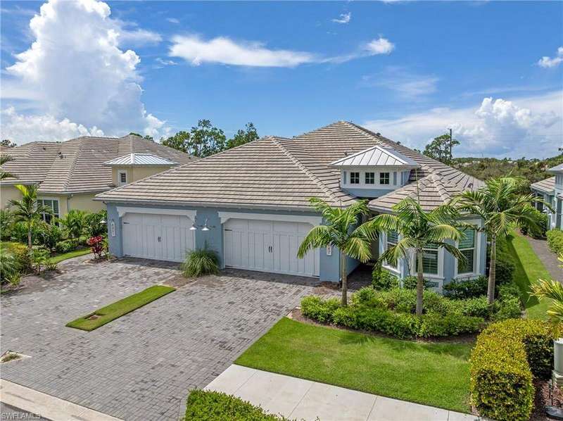 This beautiful turnkey 3-bedroom plus den villa offers a perfect blend of comfort, style, and convenience, all set within an amenity-rich community. Thoughtfully designed with a light-filled open layout, the home features a picture-framed screened lanai that overlooks serene water views, creating an ideal backdrop for both everyday living and relaxed entertaining. Inside, every detail has been thoughtfully crafted to create both elegance and comfort. The gourmet kitchen inspires gathering, with quartz countertops, upgraded cabinetry, a tiled backsplash, and custom features such as pots and pans drawers, a lazy Susan, and a wine refrigerator-perfect for entertaining friends or enjoying quiet nights in. The open living space, accented by a custom beam ceiling, Mohawk laminate flooring, recessed lighting, and plantation shutters, feels warm and welcoming while maintaining a refined sophistication. The owner's suite offers a private retreat with upgraded cabinetry, beautiful tile, and a spacious shower with a ledge for added comfort. French doors open to a versatile den which boasts a sofa with pull out ideal for a home office or cozy reading nook. Thoughtful upgrades continue throughout the home, including impact glass and doors, a fully outfitted laundry room with cabinetry, sink, and countertop, and an epoxy-finished garage that feels as polished as the living spaces inside. Life here is as much about the lifestyle as it is the home itself. Within the community, every day feels like a getaway with access to a resort-style pool, pickleball, tennis and basketball courts, a modern fitness center, a kayak launch for adventures on the water, and even an on-site restaurant where neighbors gather and friendships are made. And when you're ready to explore beyond your front door, downtown Naples and the white, sugar-sand beaches of the Gulf are just minutes away. This villa is more than a home-it's a place where everyday moments feel like a vacation.