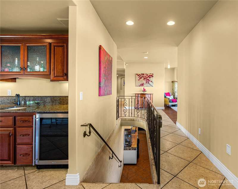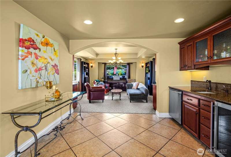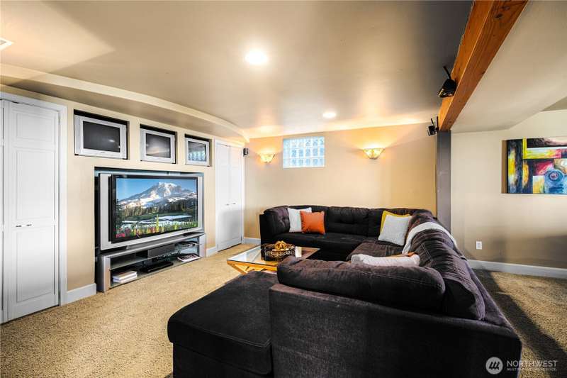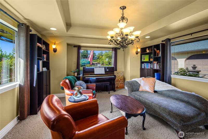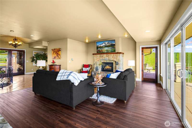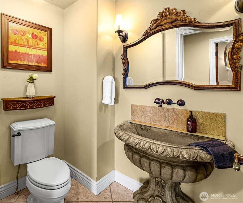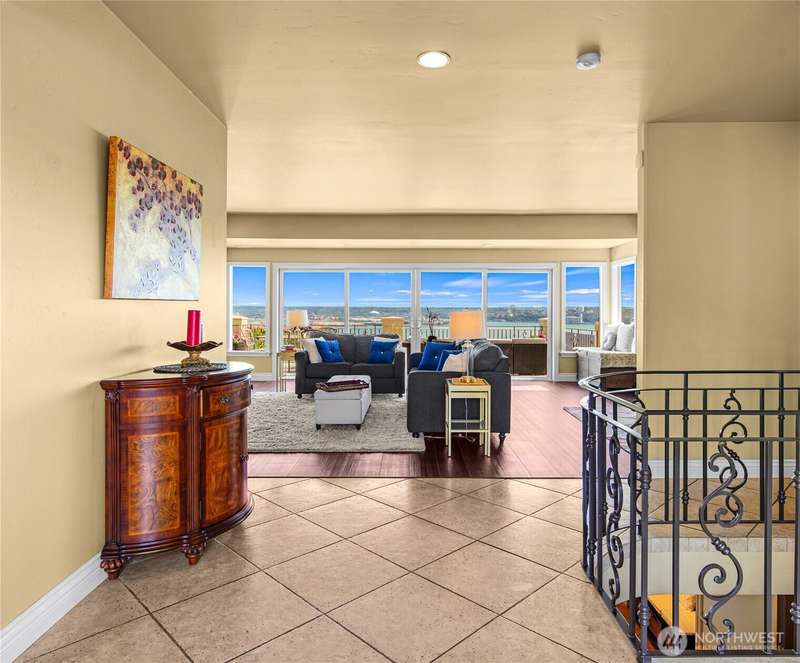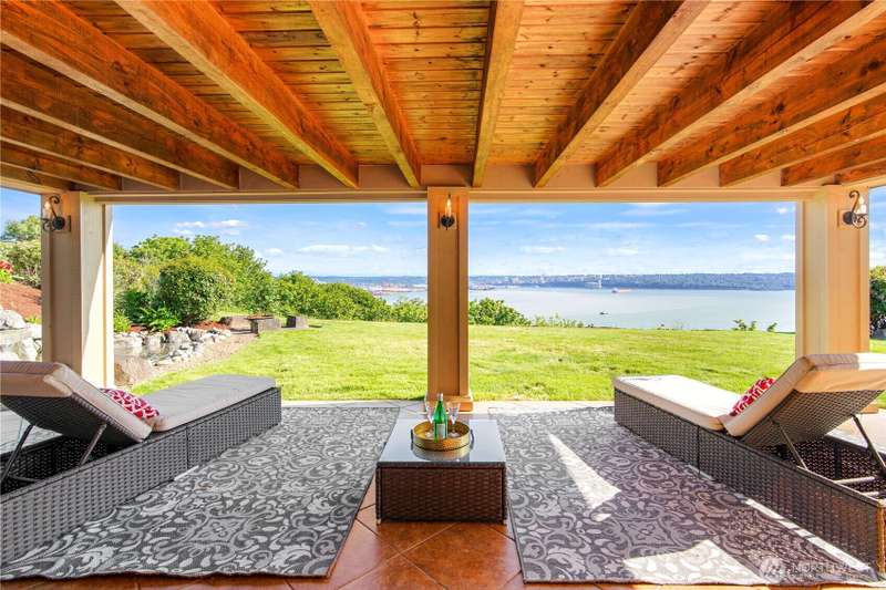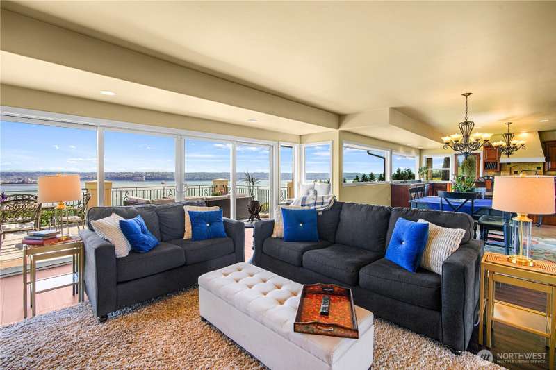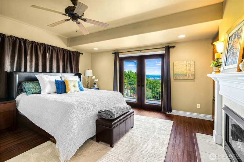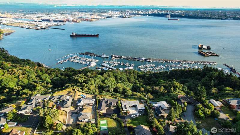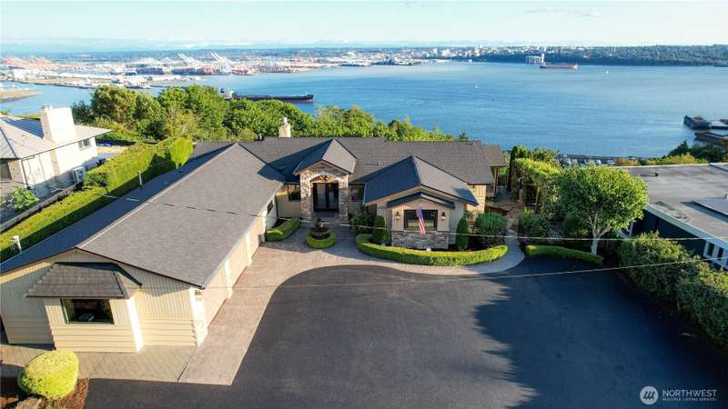 Perched above the Sound on a private .72-acre lot, this exceptional 4-bdrm, 2.25-bath view home offers breathtaking, unobstructed views of Puget Sound, Mt. Rainier, The Port & City of Tacoma from nearly every window. Soaked in natural light, the open & airy layout spans 4,078 sq ft, designed for both upscale entertaining & relaxed everyday living. The chef-inspired kitchen boasts rich cherry cabinets, granite countertops, & SS appliances, seamlessly blending elegance w/ function. Cozy up by one of the home's four gas fireplaces or escape to the expansive media/ game room complete w/ pool table-perfect for movie nights & gatherings. Outdoor living shines w/ a sport court, private pond wired for hot tub, garden area & freshly paved driveway.
