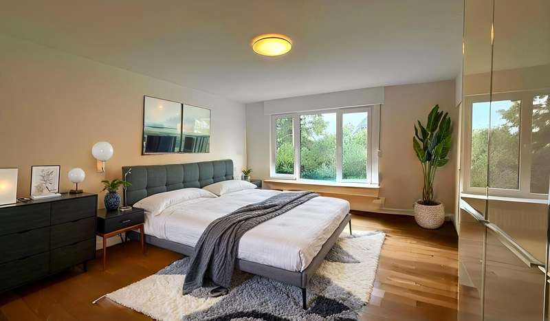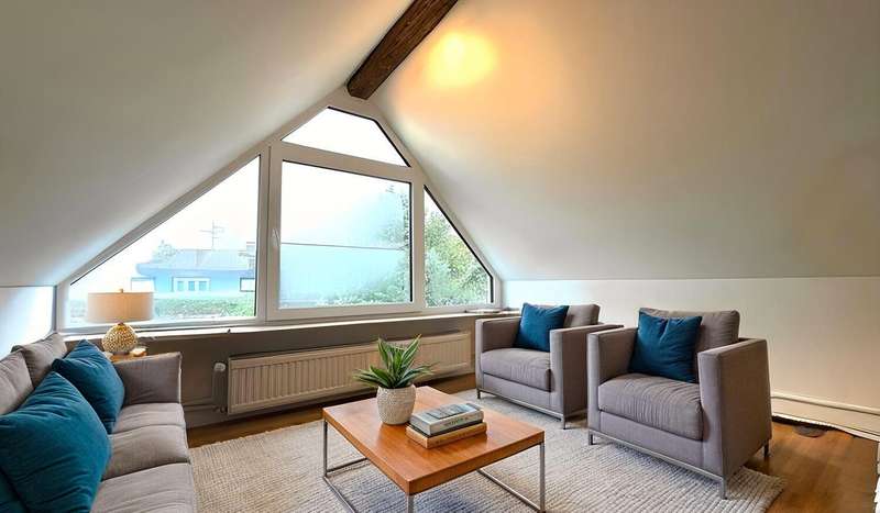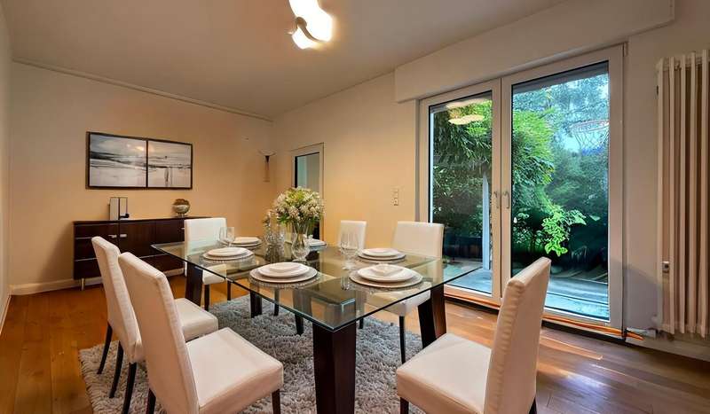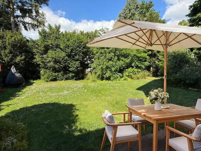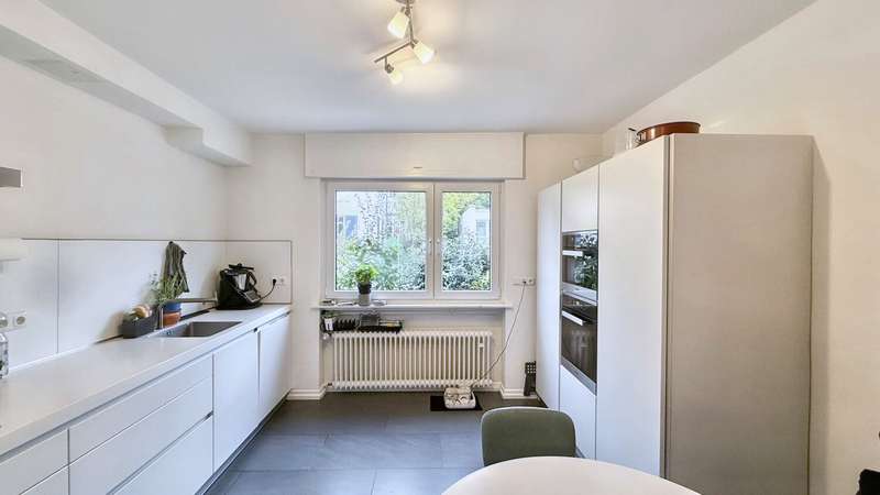 This lovingly maintained detached house in the sought-after district of Praunheim impresses with its beautiful, ingrown garden and is in an attractive location: the European School and the Nordwestzentrum with numerous shopping facilities are in the immediate vicinity. The central staircase leads to the first floor. A spacious, open-plan living/dining area with direct access to the terrace opens up here. This is covered by a charming, planted pergola and leads into the idyllic garden. Also on this floor is another room, which is currently used as a study, a guest WC and a spacious eat-in kitchen. Upstairs there are three bedrooms, a further study and a bright daylight bathroom. The converted attic offers two large, versatile rooms and an additional bathroom with shower. This property is ideal for a large family. The house is currently rented out.