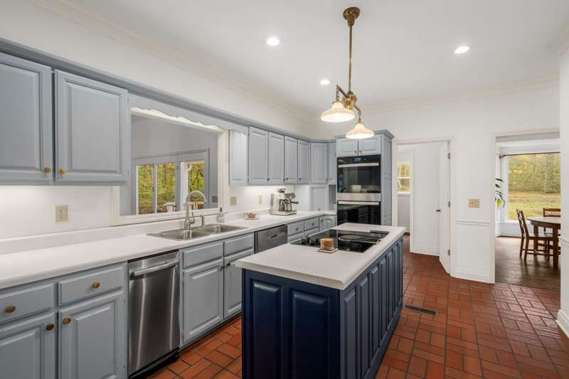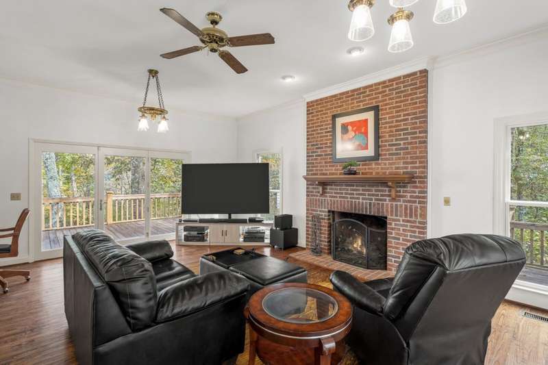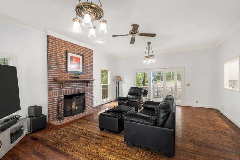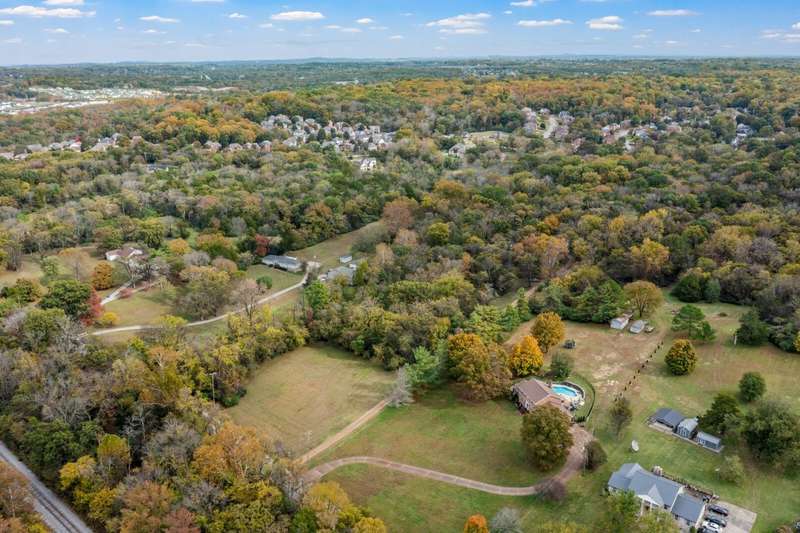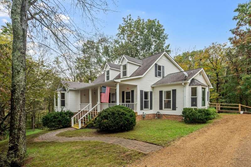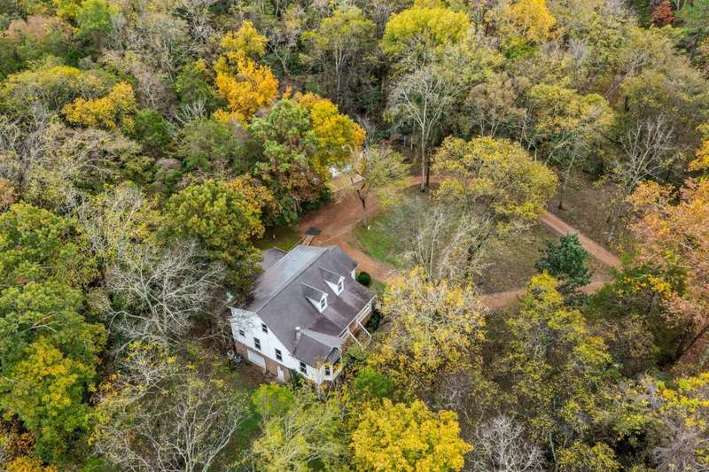 A Farm House in the city! Do you crave privacy, nature + urban amenities? This is a rare find only 15 miles from downtown Nashville! Nearby parks, lakes, hospitals, shopping, & more! With a main floor primary suite, three cozy fireplaces, a large central kitchen, a rocking chair front porch, a spacious back deck, abundant storage, high ceilings, large windows & tons of natural light, this property feels like home immediately. Kitchen includes new appliances - double convection ovens, refrigerator, trash compactor, dishwasher, & range with downdraft. Spacious main floor primary suite includes floor-to-ceiling windows.This home also features a large living room with a gas fireplace & oversized windows that offer stunning panoramic views of the surrounding forest.The living room includes French doors onto the large back deck, perfect for entertaining. Also on the main floor is a designated office with built-in bookcases & gas fireplace - could be used as a 5th bedroom. The lower level of this home includes a tucked-away den with a gas fireplace, perfect for a private office space, a home theater, guest quarters or an ideal space to gather with friends to watch the big game. Lower level also includes a third, attached garage & tons of storage! On the second floor are three more spacious bedrooms and two full bathrooms. This no HOA home also includes an oversized two-car garage with 300+ sq feet above for an artist studio, work from home space, storage, or home-based business headquarters. With over 5 acres, bring your horses! Partially wooded and partially cleared. Home is set back way off the road for additional privacy, no neighbors in sight! More info to come! Please do not drive onto property without an appointment.New Septic system in 2021 including tank & field lines, Roof a mix of new & 10 years old. Gutter guards installed on home & garage.Two news HVAC 2023. Gas Lines under home replaced in 2018. See Video!
