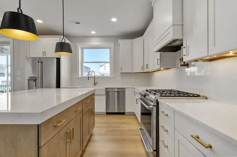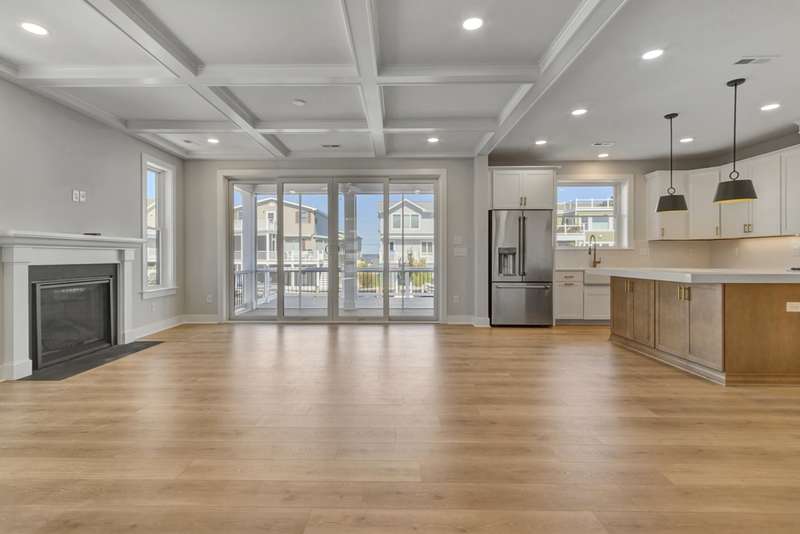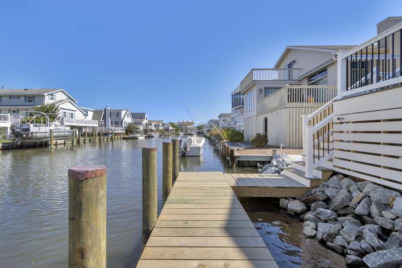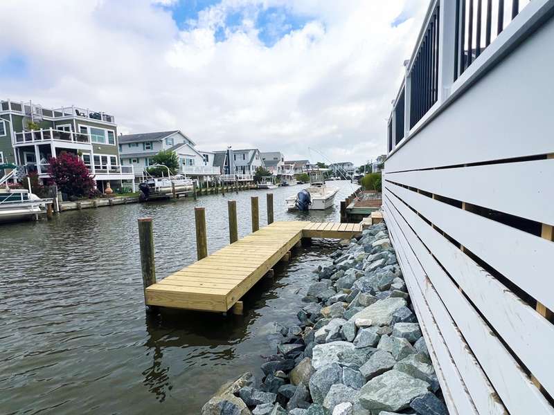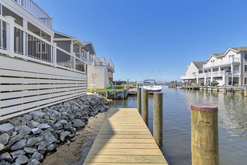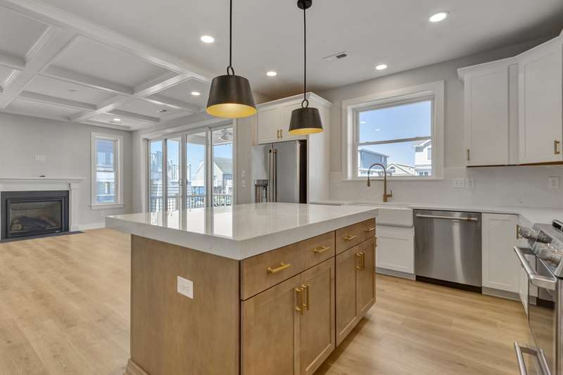 A stunning new construction luxury canal front home in the heart of Fenwick Island — IMMEDIATE DELIVERY!! Designed for upscale coastal living, The Bluefin offers modern elegance, refined details, and direct water access with an included private dock. The Bluefin is thoughtfully crafted to make the most of its prime canal-front location. A private dock sits along a canal that opens directly to the bay — perfect for boating, kayaking, or simply enjoying the breeze. Inside, expansive 4-panel sliding doors fill the great room with natural light and lead to a serene screened porch that keeps the bugs out and comfort in. The porch is framed by an open-air deck ideal for sunbathing, grilling (with a dedicated gas hookup), and taking in water views. Stairs lead to the backyard for easy outdoor access. On the second level, a spacious loft opens to another deck — giving you elevated views of the water and sky for sunset cocktails or peaceful morning coffee. Luxury touches are evident in every corner of The Bluefin. Inside, a coffered ceiling adds depth and character to the main living space, while black exterior windows give the home a modern coastal edge. Comfort is elevated with whole-home sound-reducing insulation and heated floors in the owner's suite bathroom. Custom design elements include shiplap accents throughout, heightened wainscoting, and a vaulted cathedral ceiling in the loft. A cozy fireplace anchors the great room, perfect for year-round ambiance. The owner's suite features a shiplap ceiling for added coastal charm, while a stylish wet bar in the loft makes entertaining effortless. Barn doors complete the upscale yet relaxed design. The heart of The Bluefin is its spectacular kitchen — designed for those who love to cook and entertain. This space features three ovens, including two sleek wall-mounted models for ease and style. Quartz backsplash adds a luxurious, seamless feel, paired with a wood range hood and convenient wall-mounted pot filler. The apron-front farmhouse sink sits beneath undercabinet lighting that adds soft, ambient glow. Outfitted with upgraded GE Café appliances, this kitchen is as functional as it is beautiful — perfect for casual mornings or hosting unforgettable dinners. Contact us today to experience the epitome of luxury living in Delaware. Your forever home awaits. Waterfront and it includes a pier into the canal. IMMEDIATE DELIVERY!
